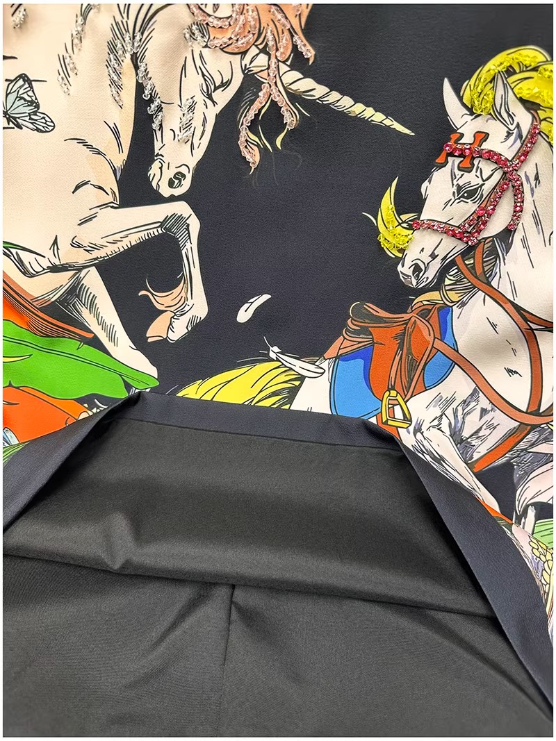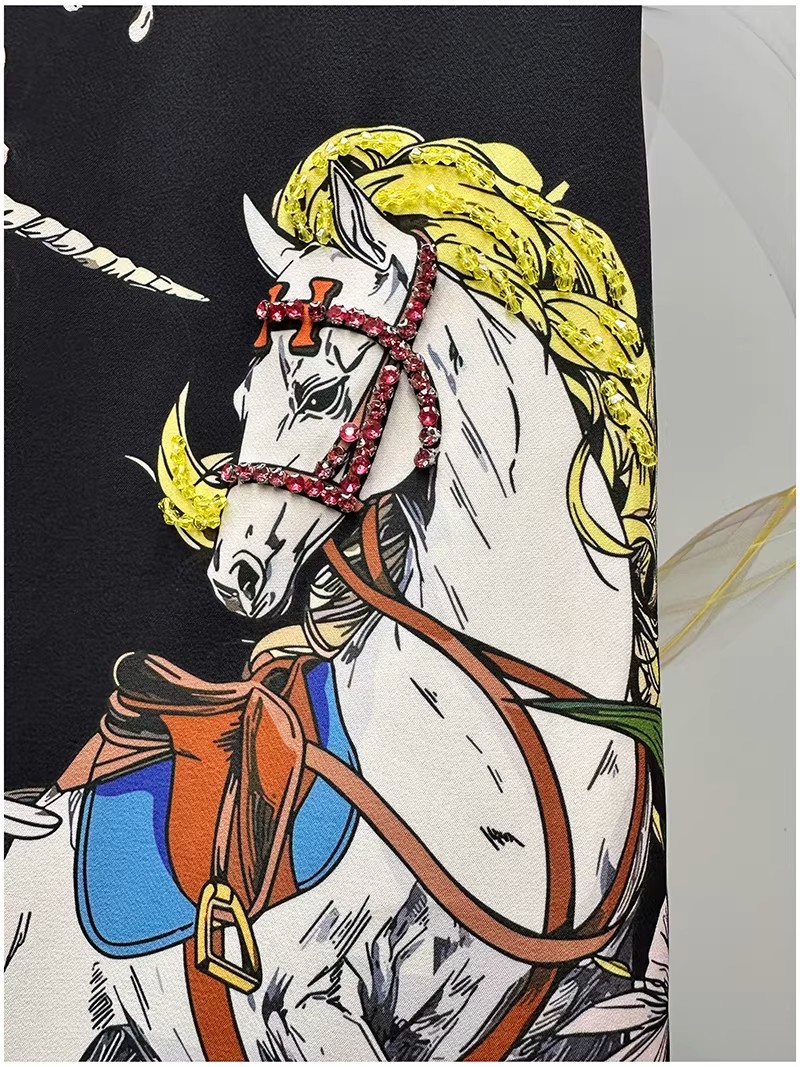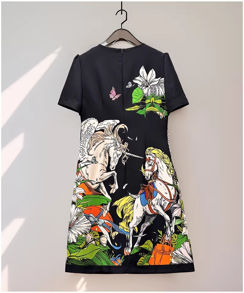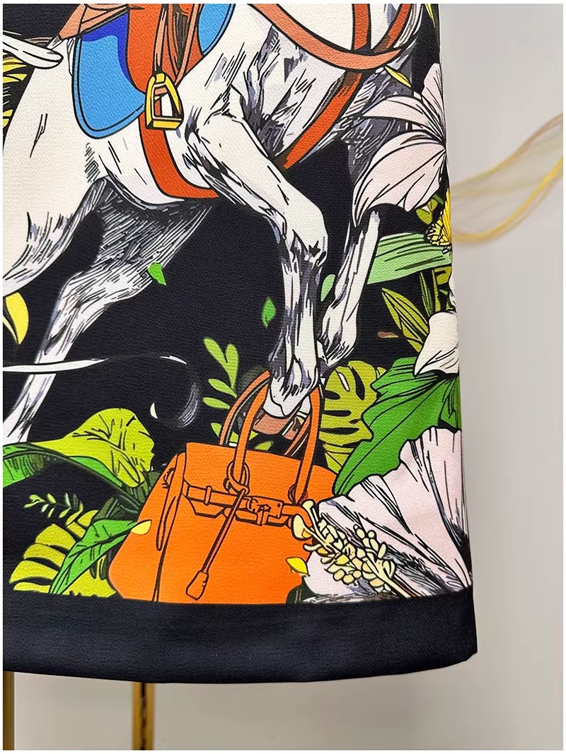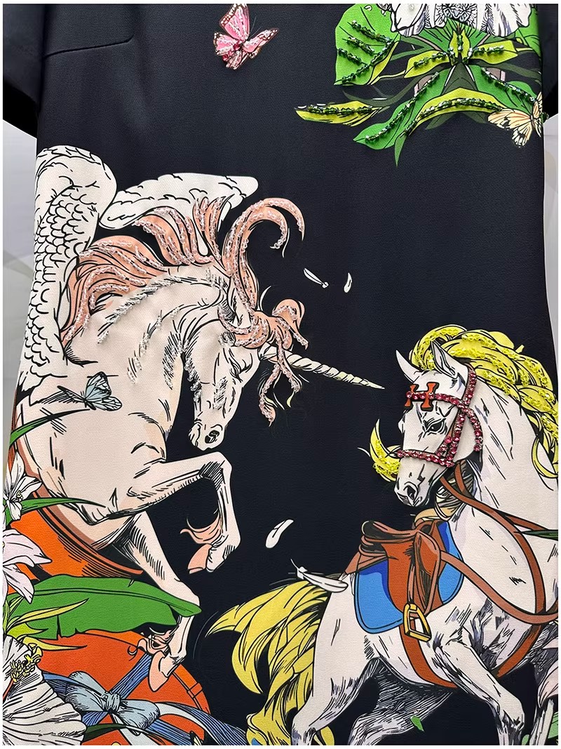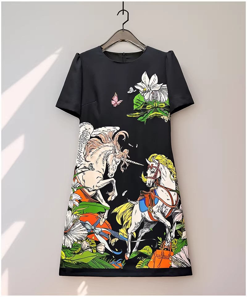 RY646# 马到功成~2026夏季新款女装3D立体印花双马重工订珠休闲连衣裙子