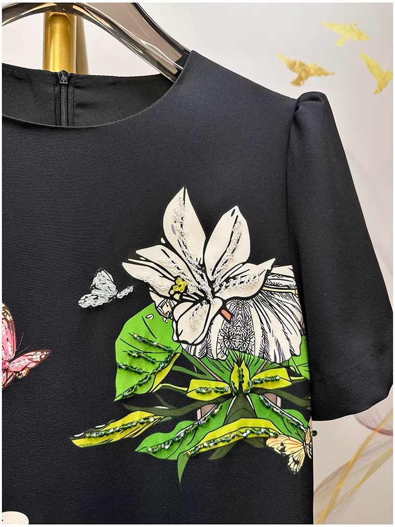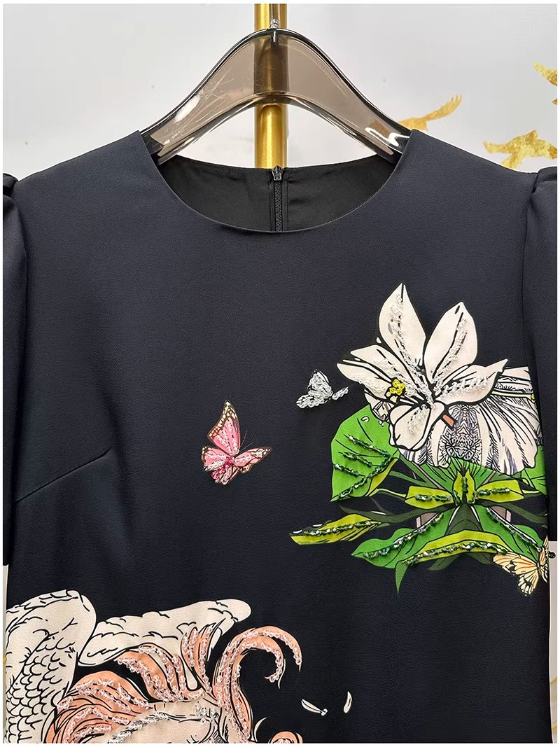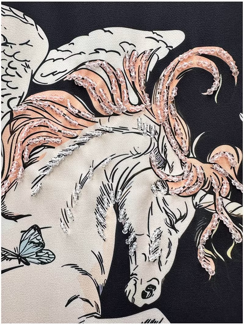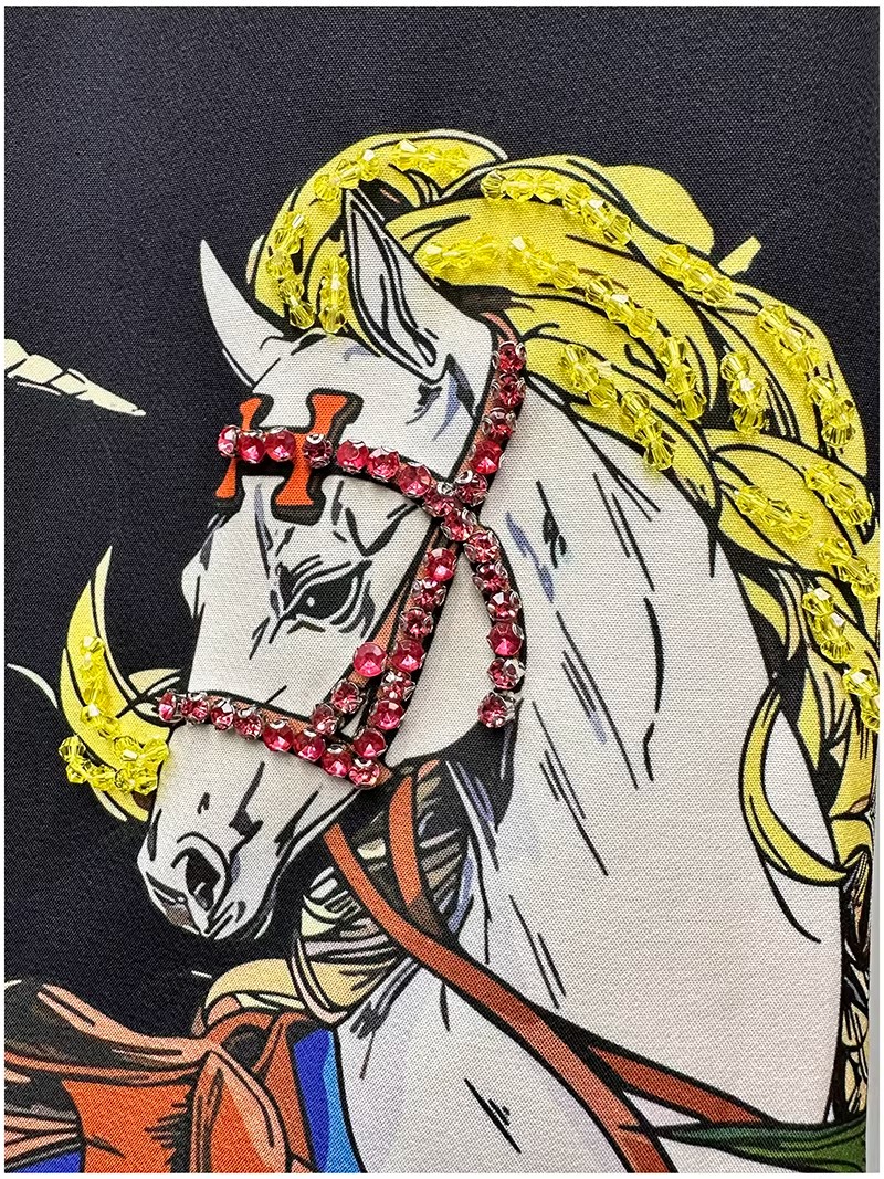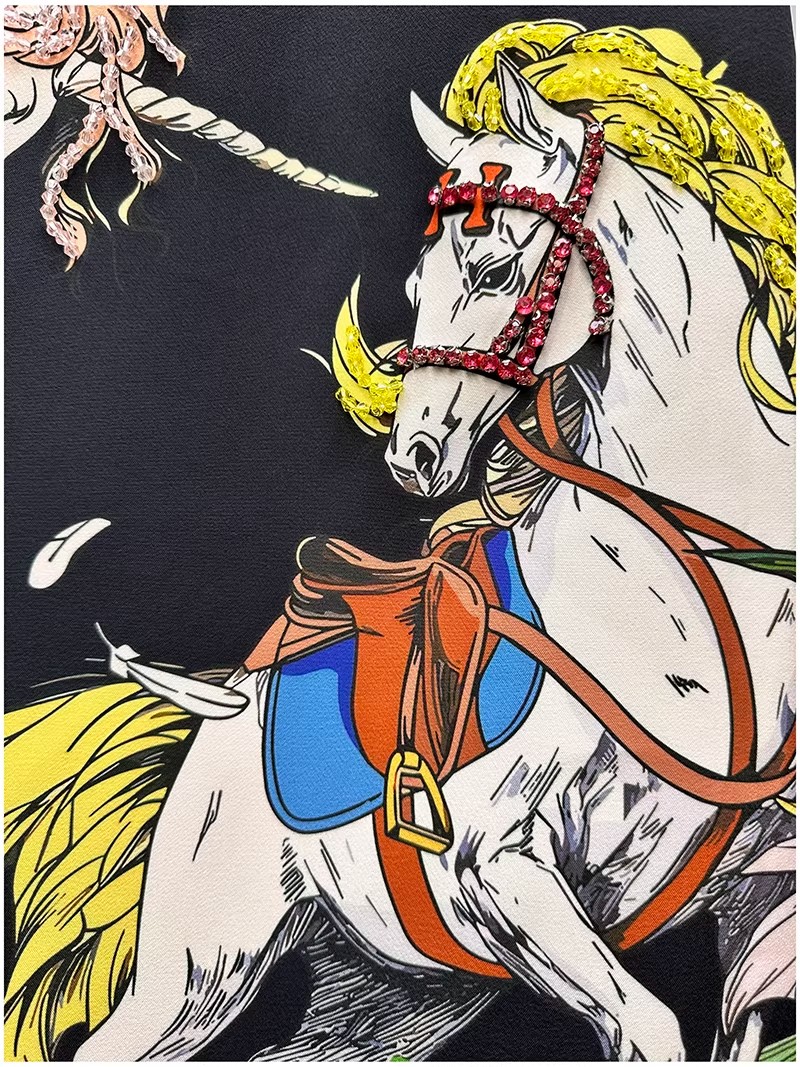 RY646# 马到功成~2026夏季新款女装3D立体印花双马重工订珠休闲连衣裙子