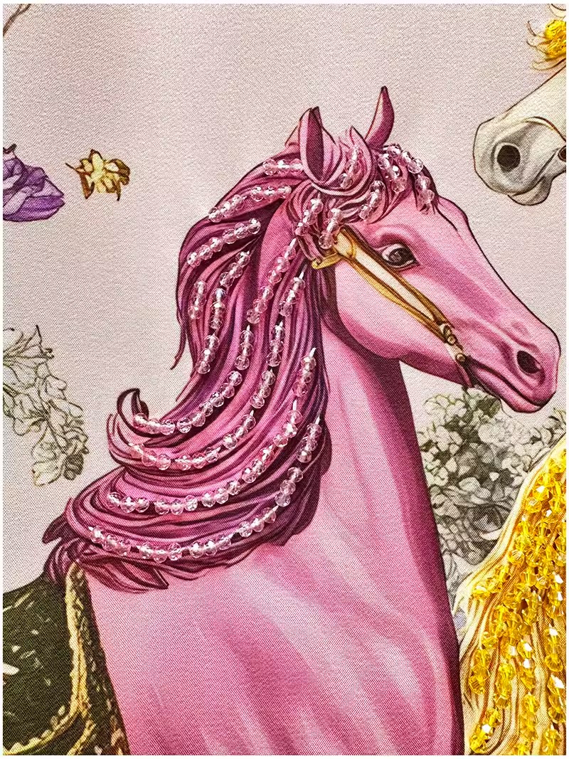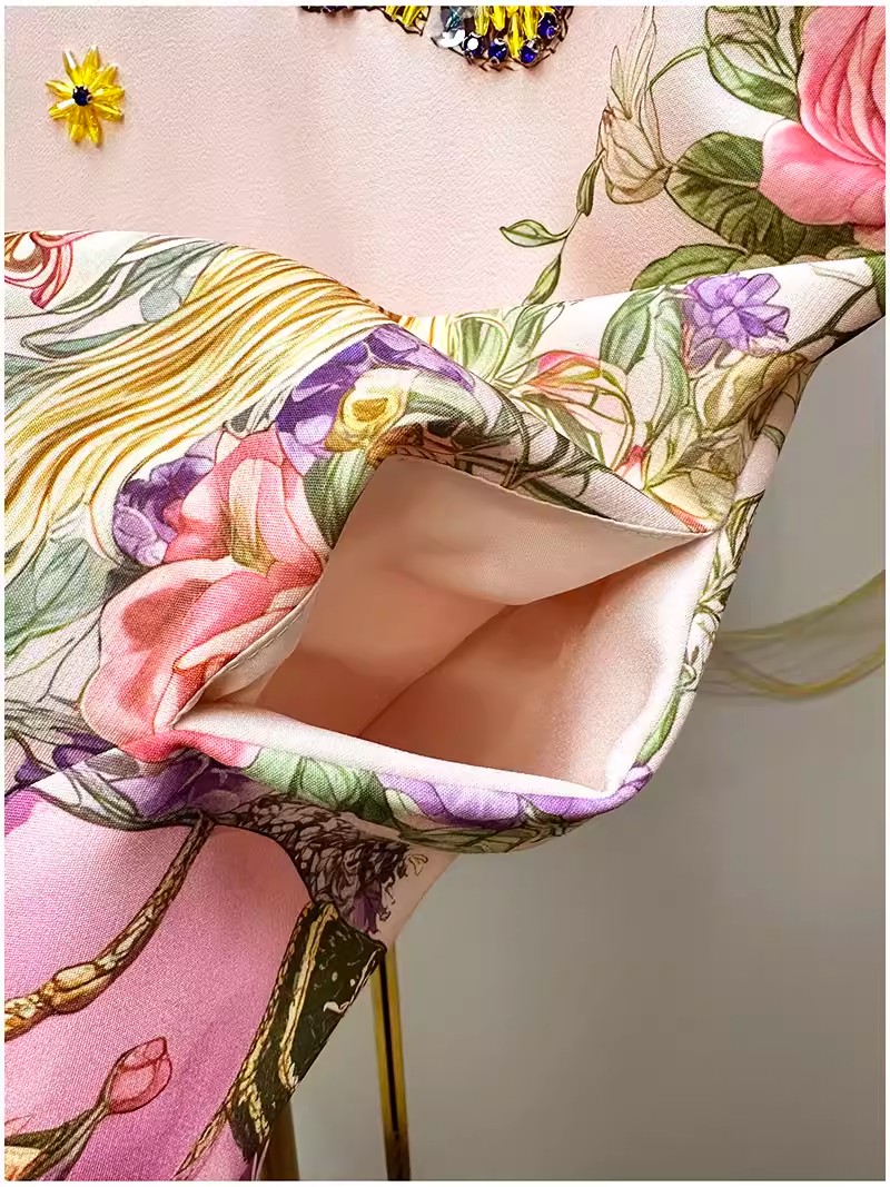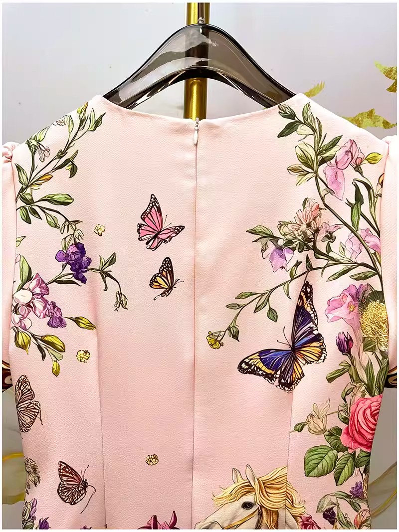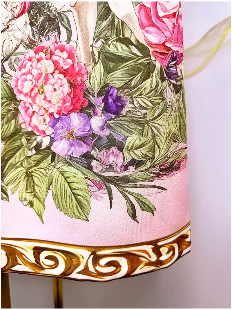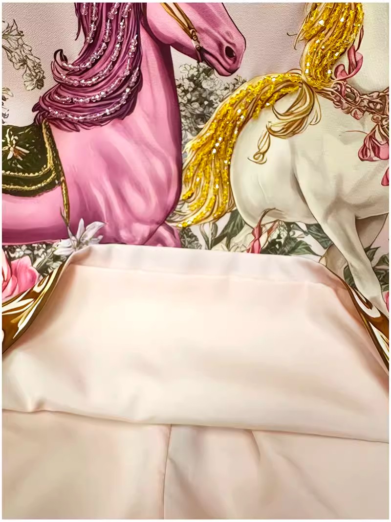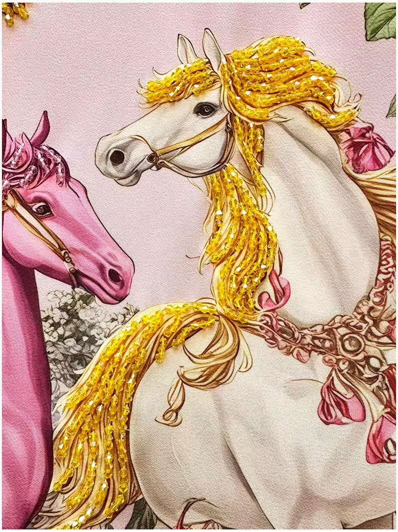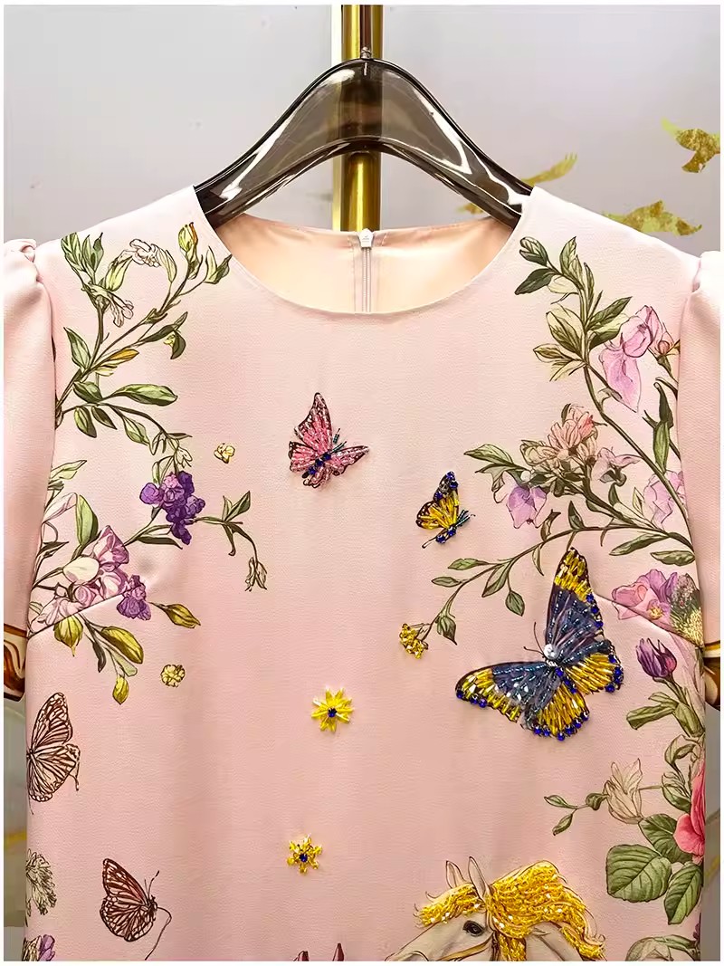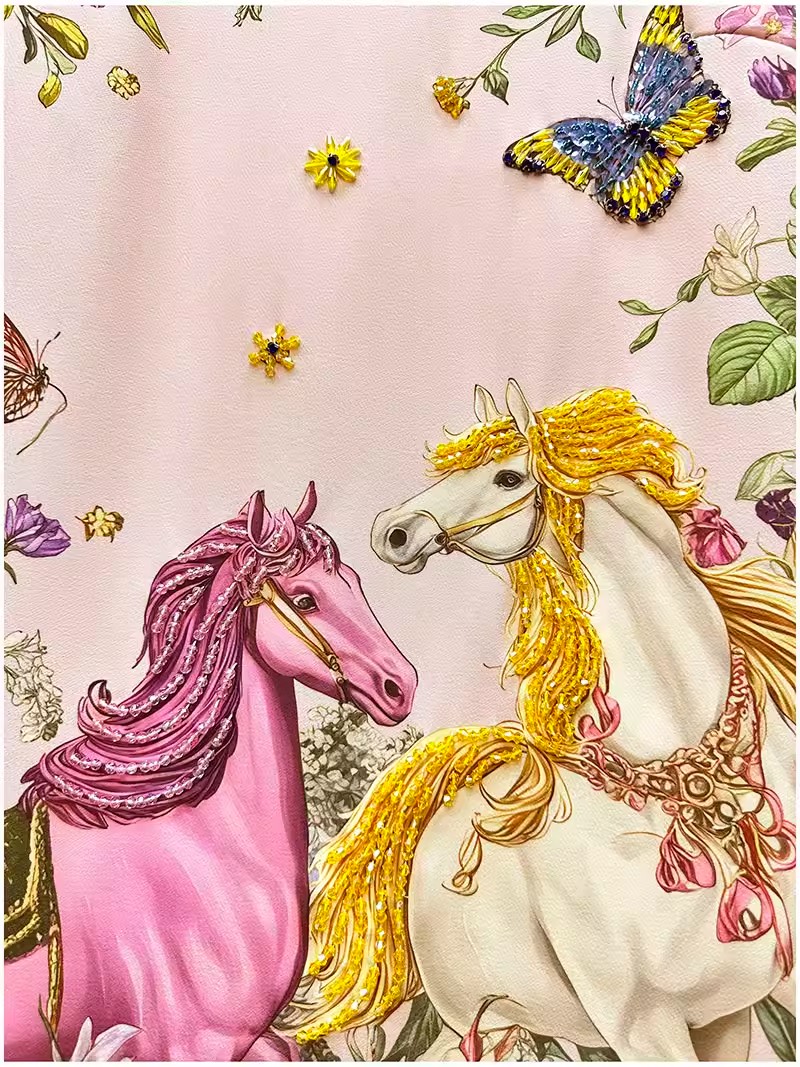 RY649# 马到成功~2026夏季新款女装时尚印花重工订珠双马轻奢名媛连衣裙