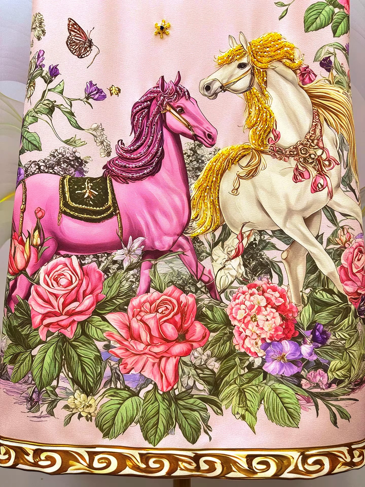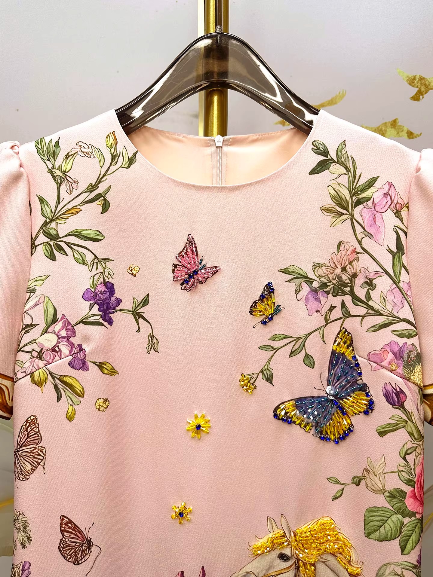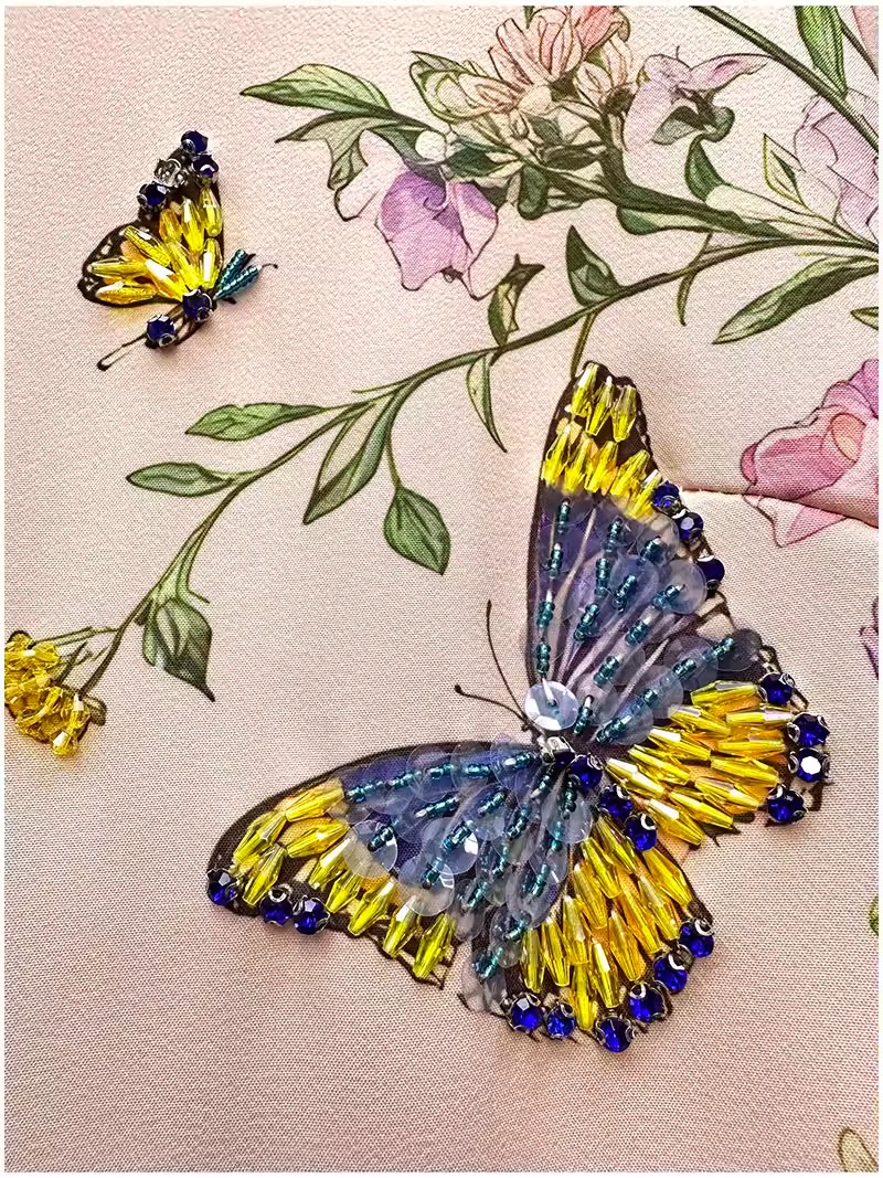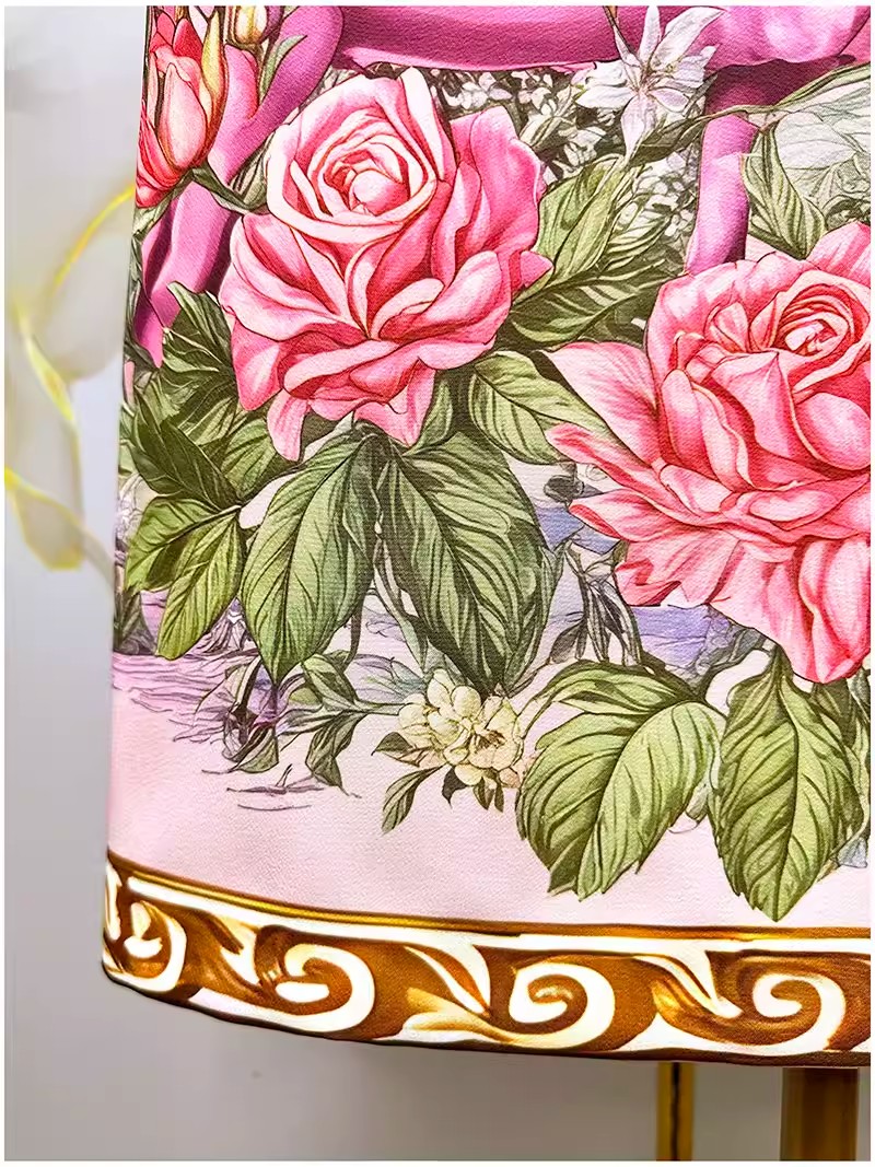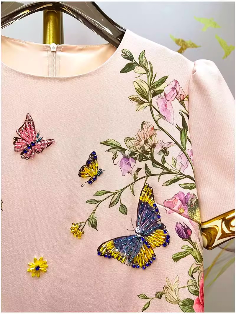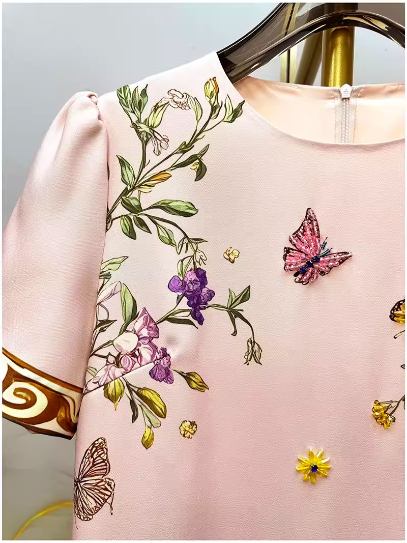 RY649# 马到成功~2026夏季新款女装时尚印花重工订珠双马轻奢名媛连衣裙