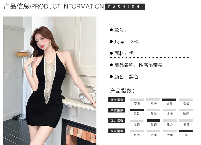 RY660# 性感挂脖绑带水钻流苏设计感露背连衣裙2025新款名媛包臀裙生日裙