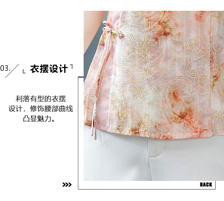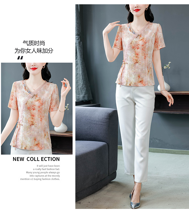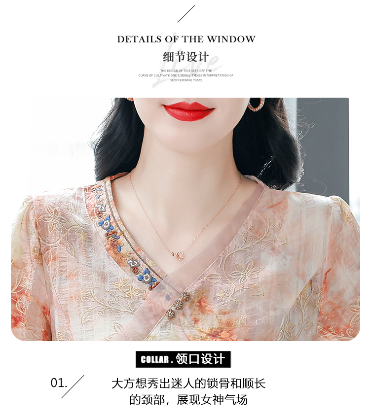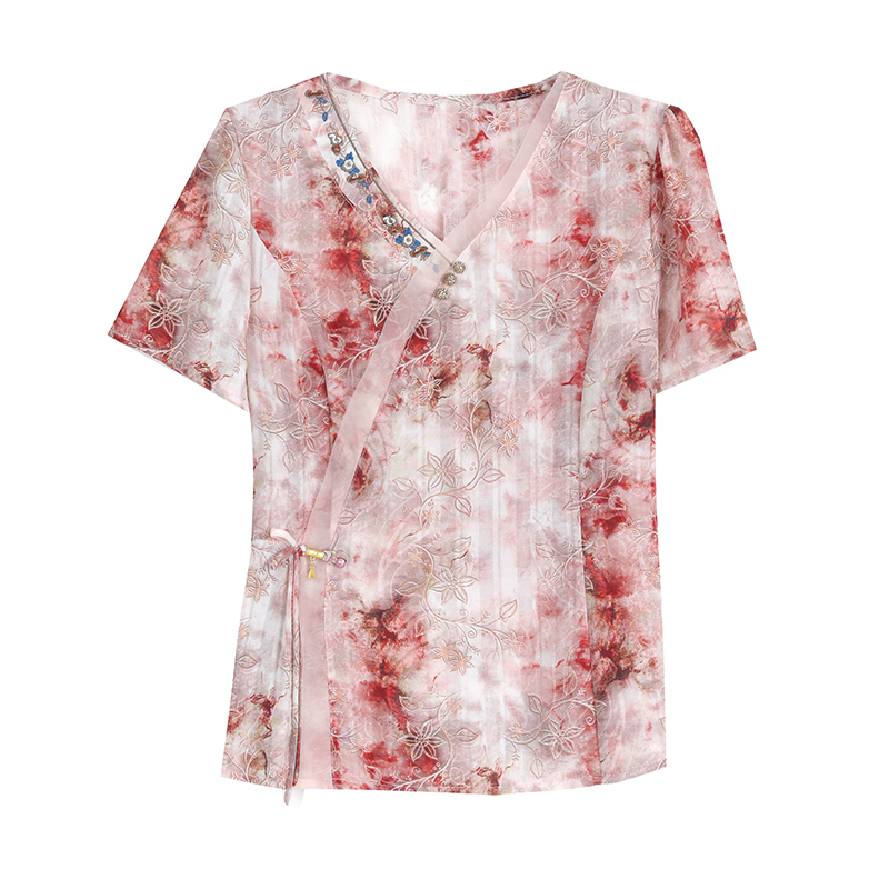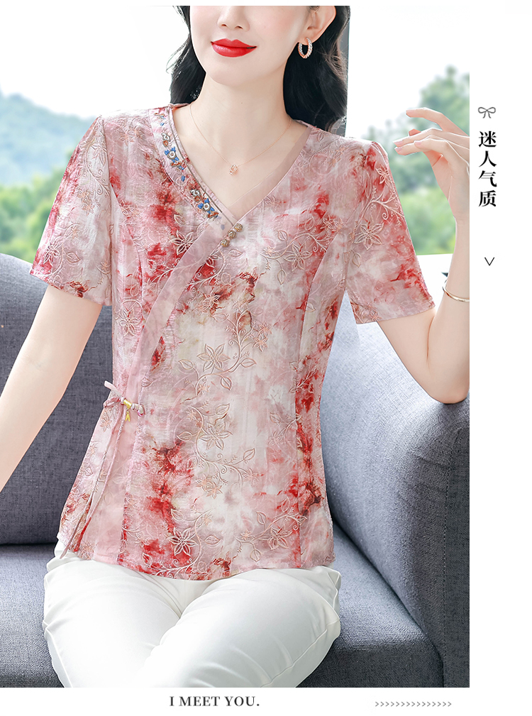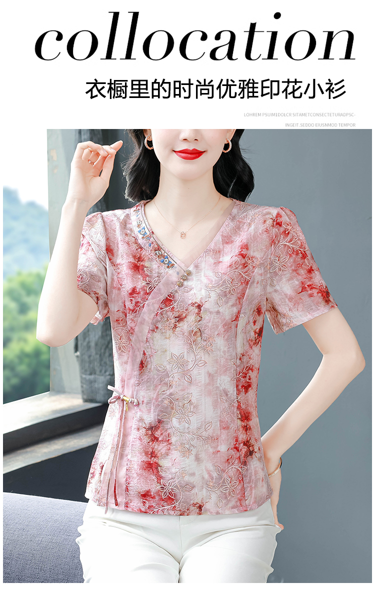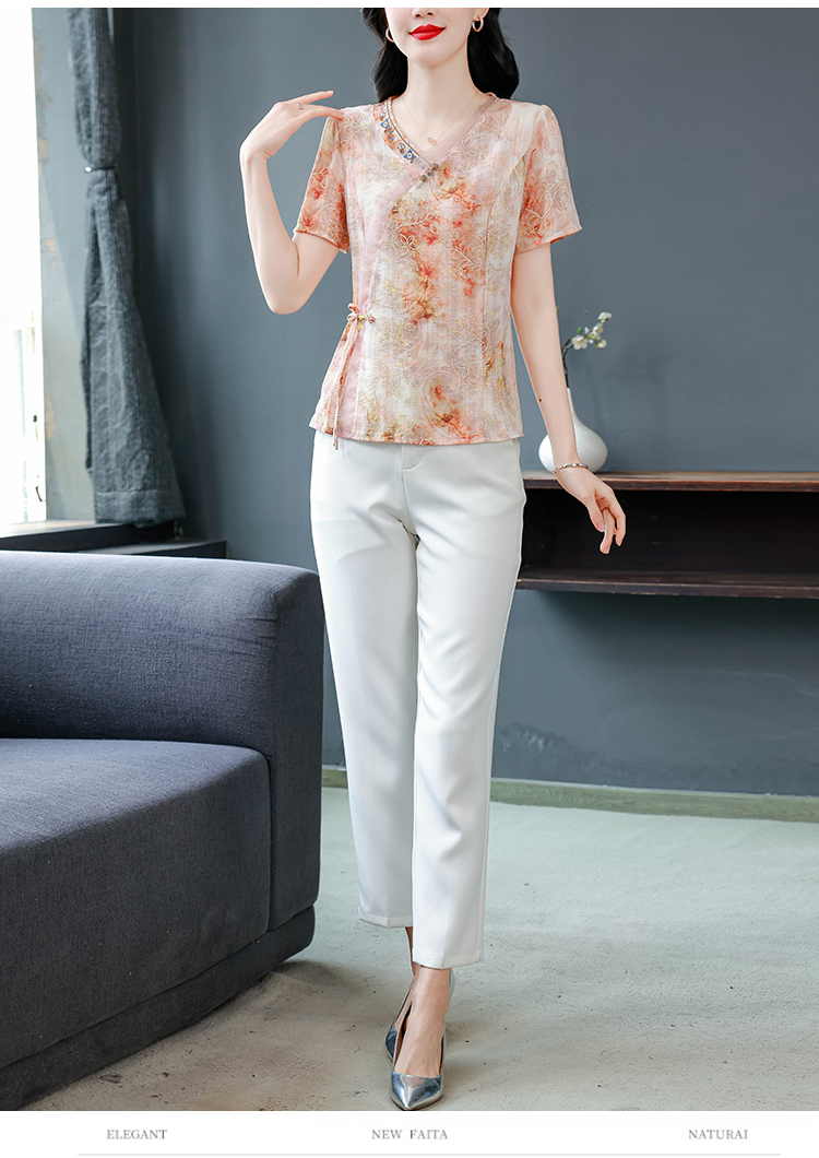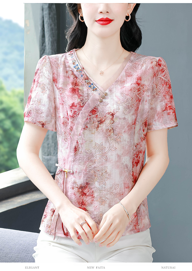 RY669# 国风复古短袖雪纺衫新中式刺绣V领显瘦上衣夏装新款女士百搭小衫