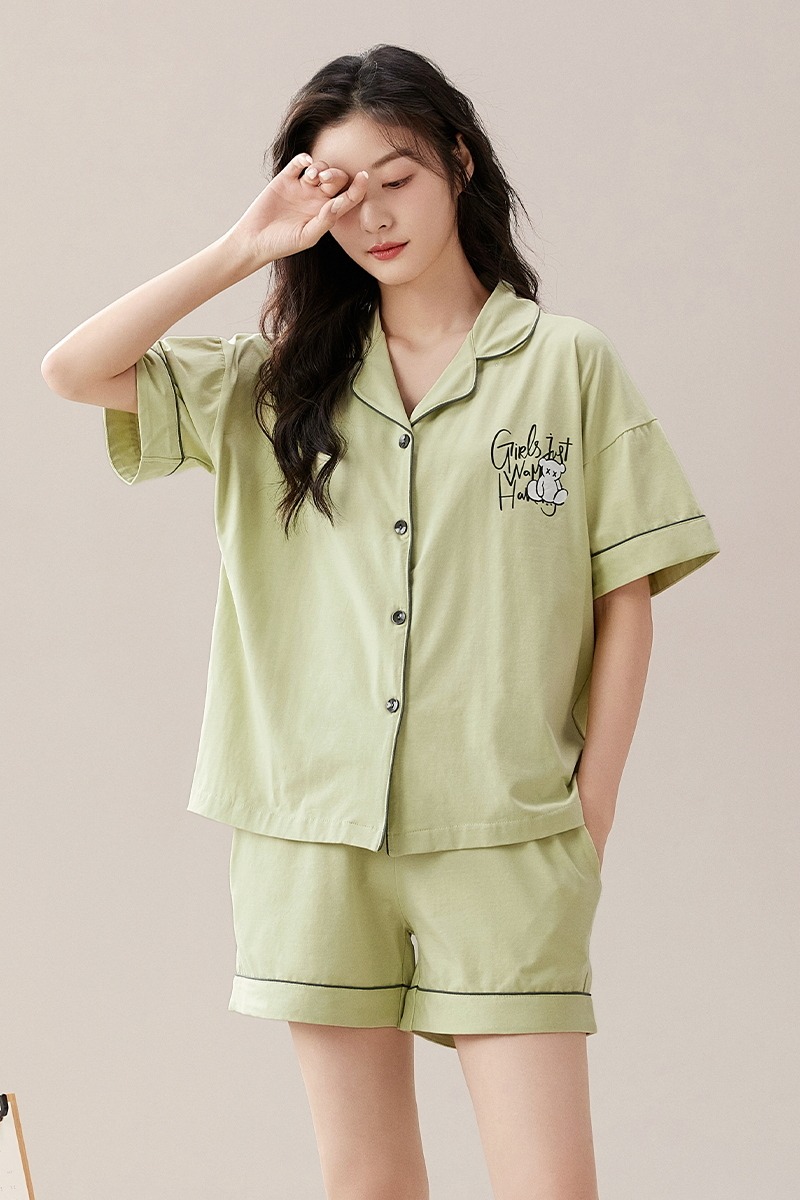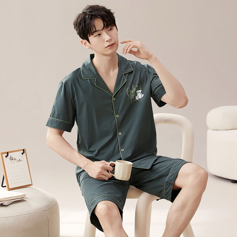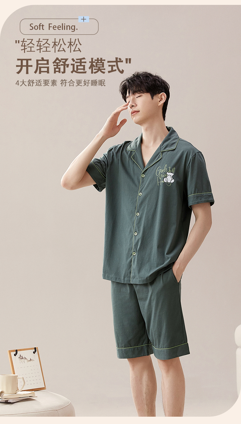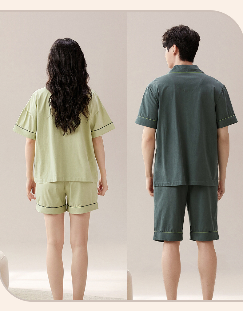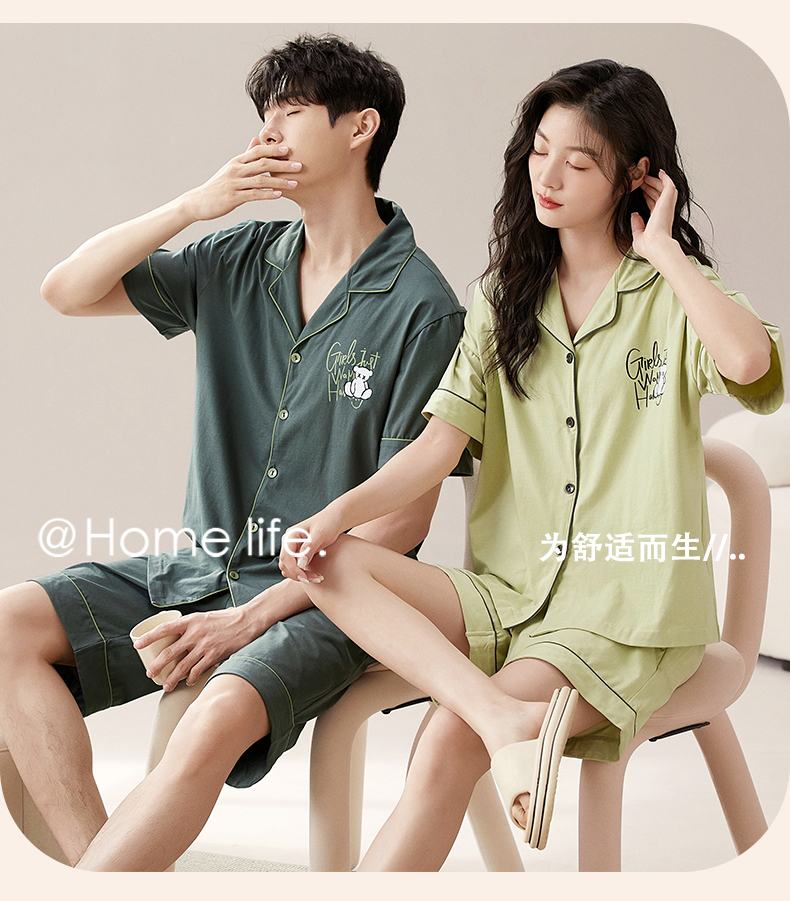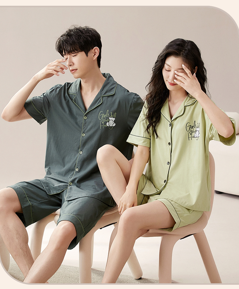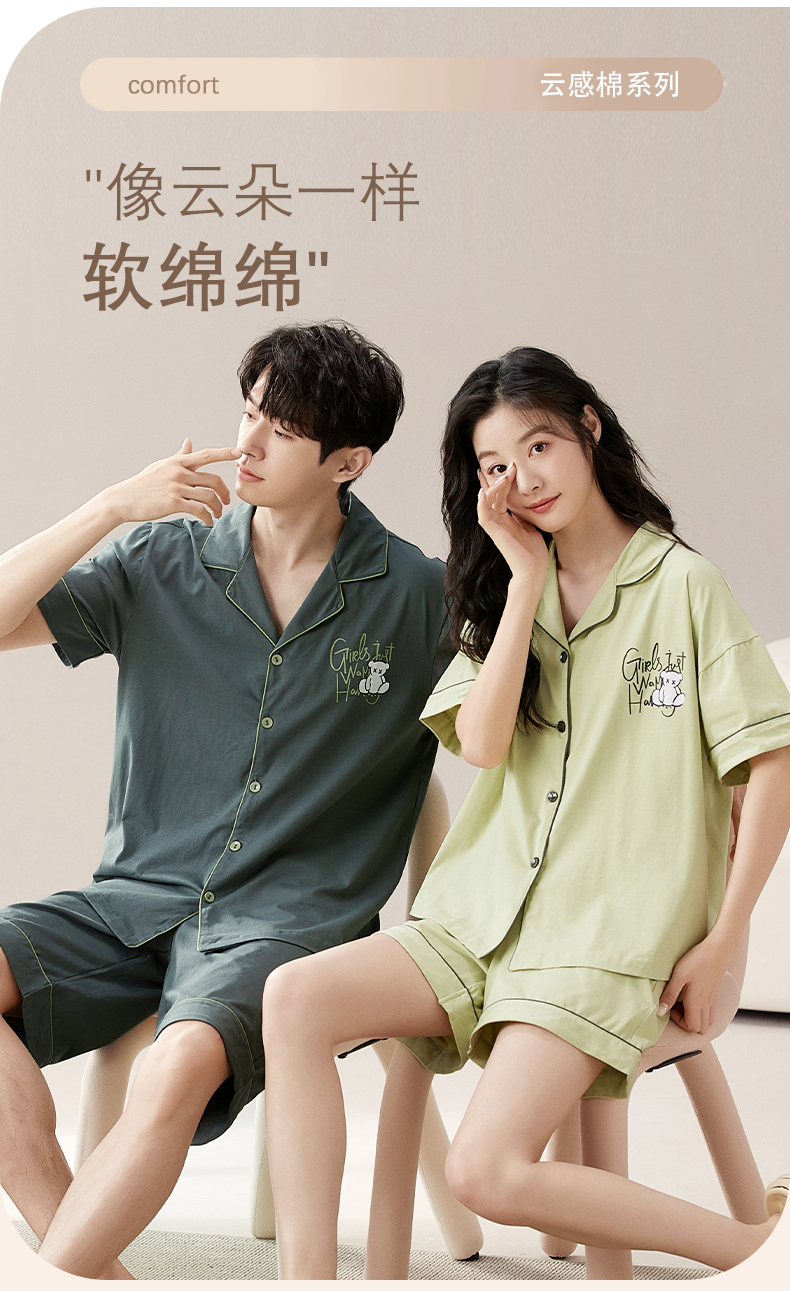 RY860# 两件套装情侣睡衣女春夏季云朵棉卡通新款短袖短裤男士大码家居服