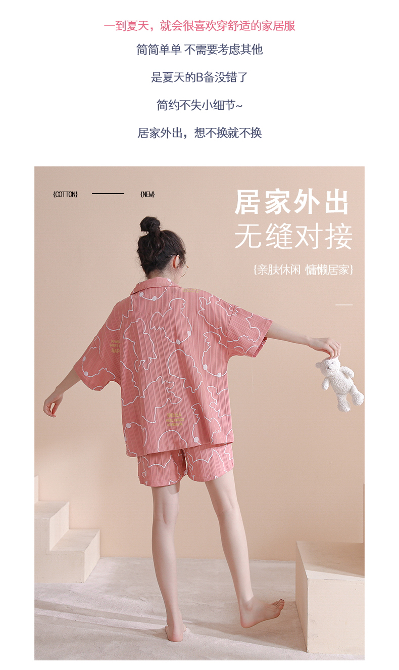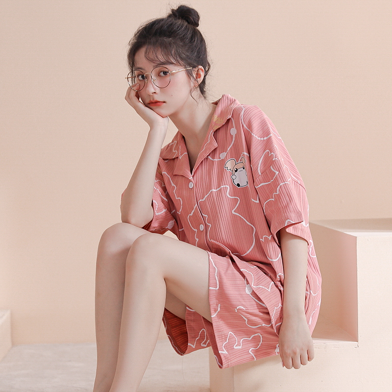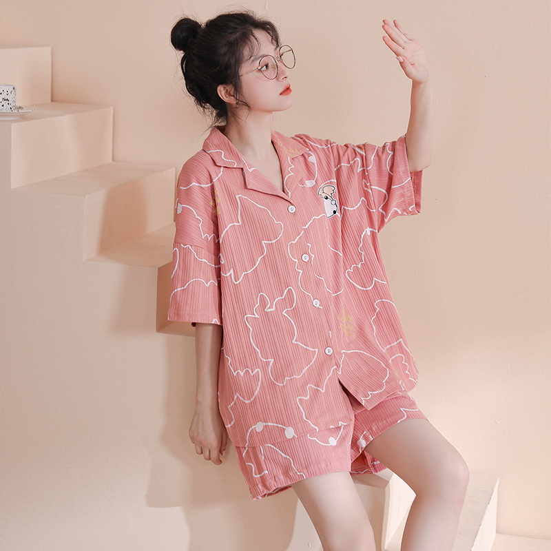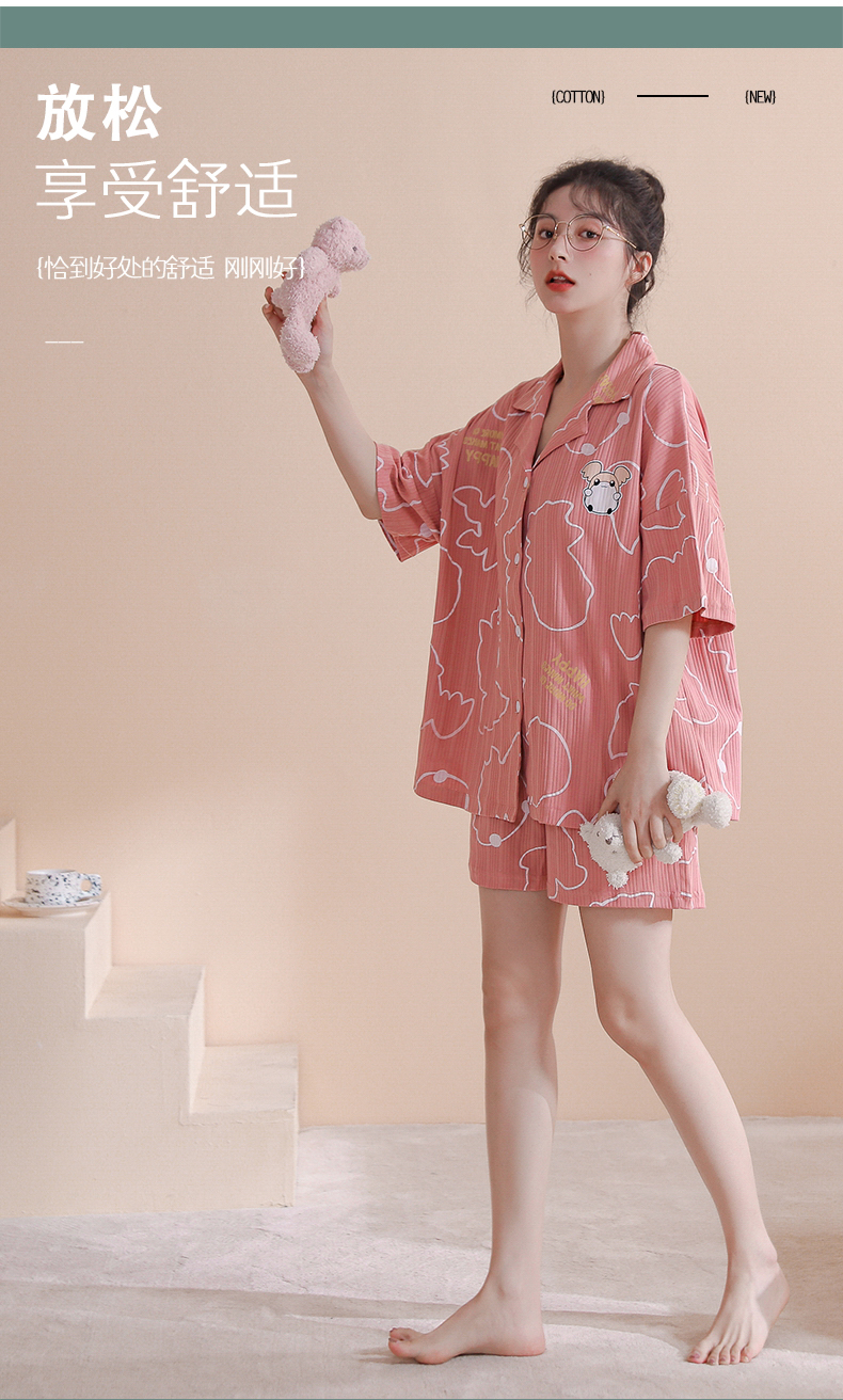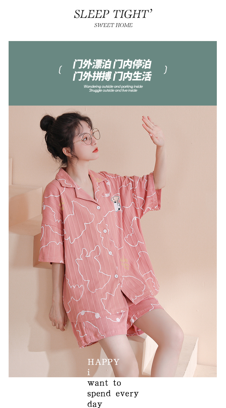 RY861# 睡衣女士夏季纯棉短袖短裤休闲家居服全棉质韩版加大码开衫套装