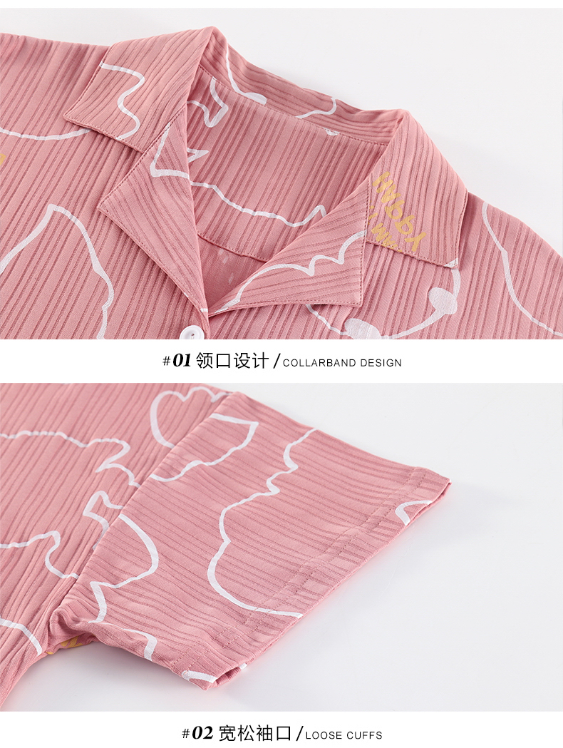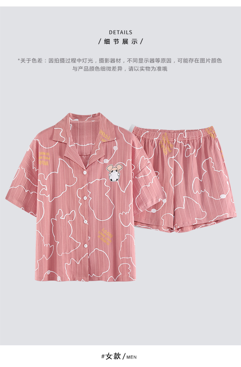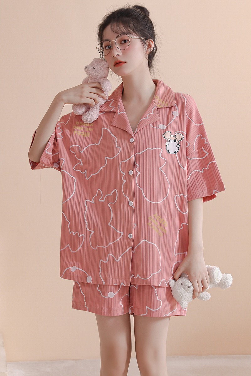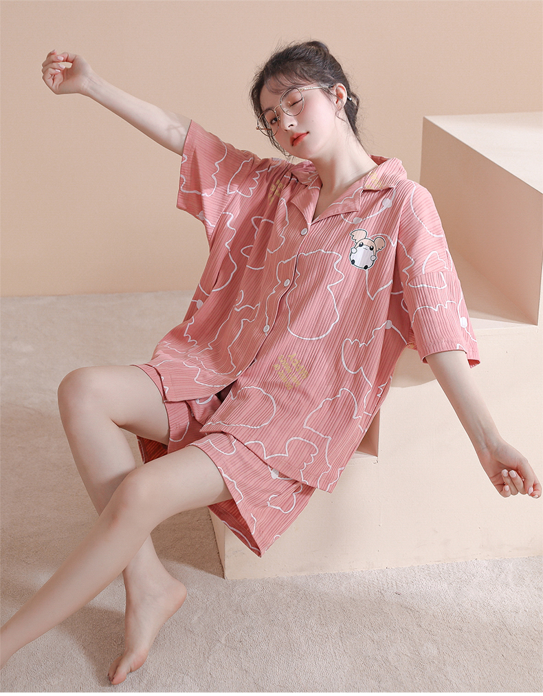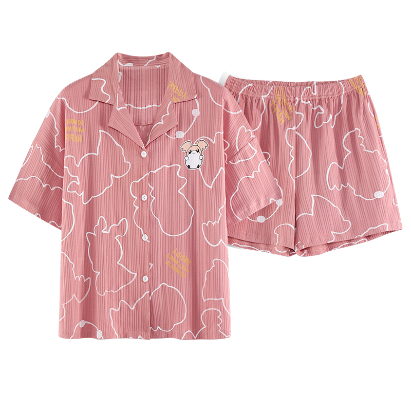 RY861# 睡衣女士夏季纯棉短袖短裤休闲家居服全棉质韩版加大码开衫套装