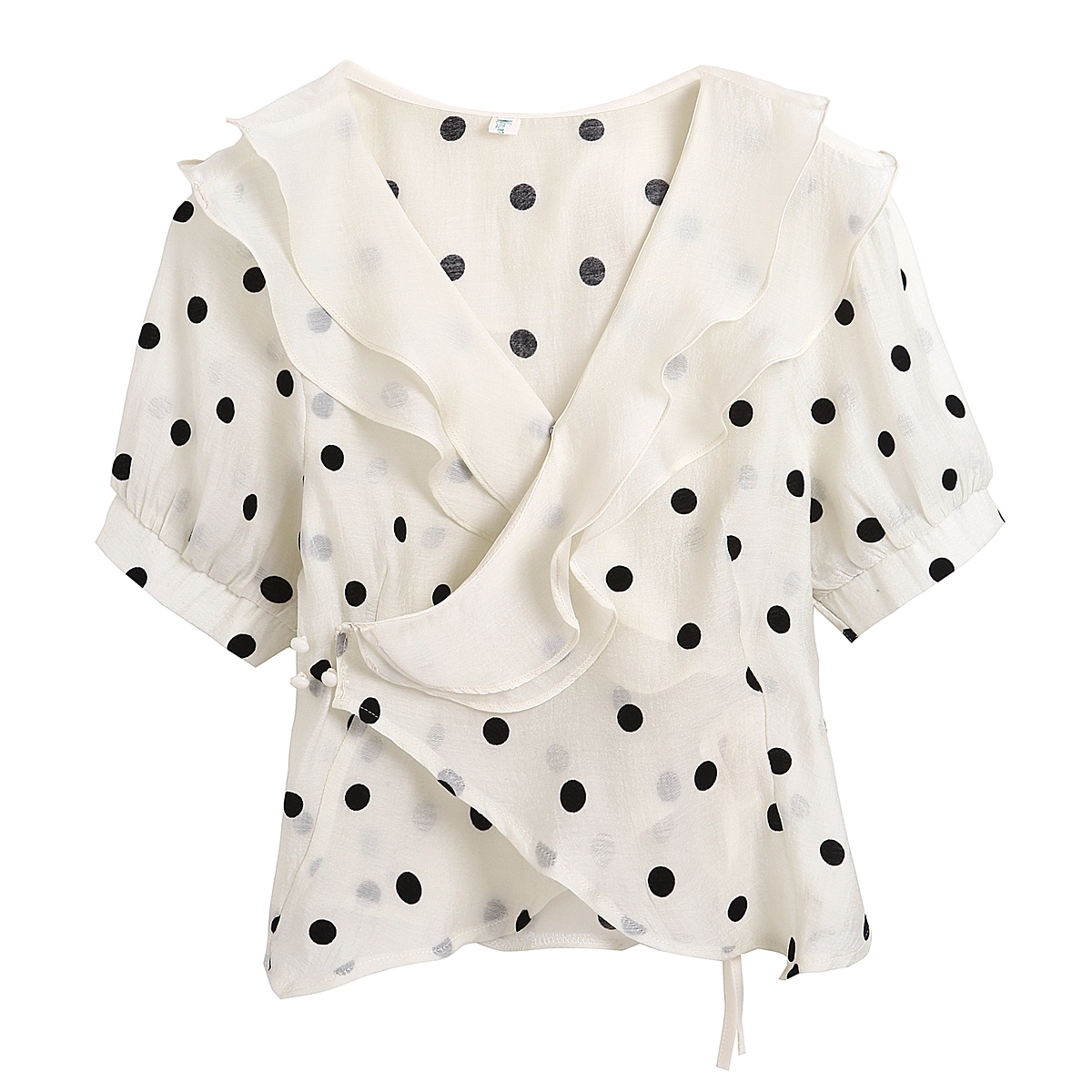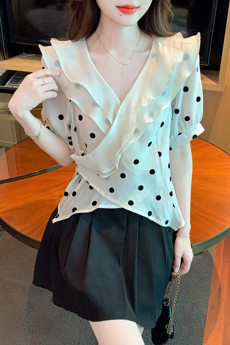RY1082# 2026年新款夏季高级设计感小众植绒波点短袖衬衫上衣女ins潮