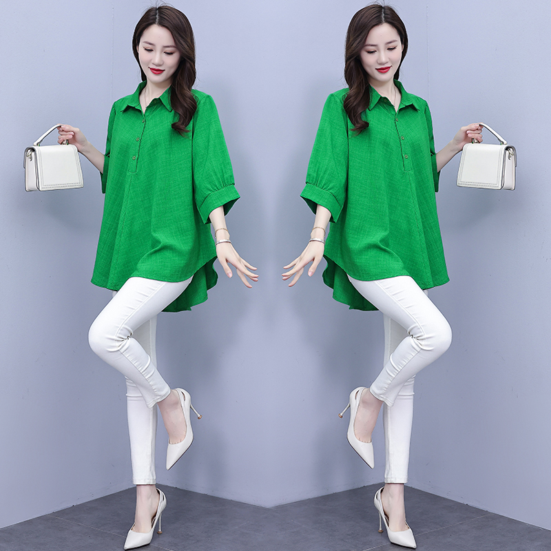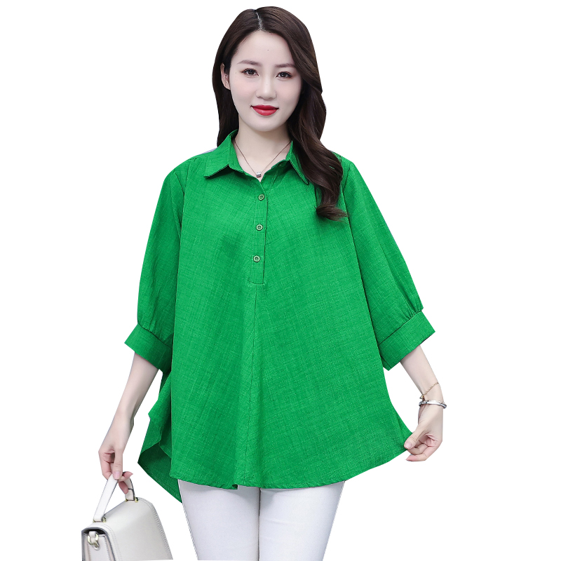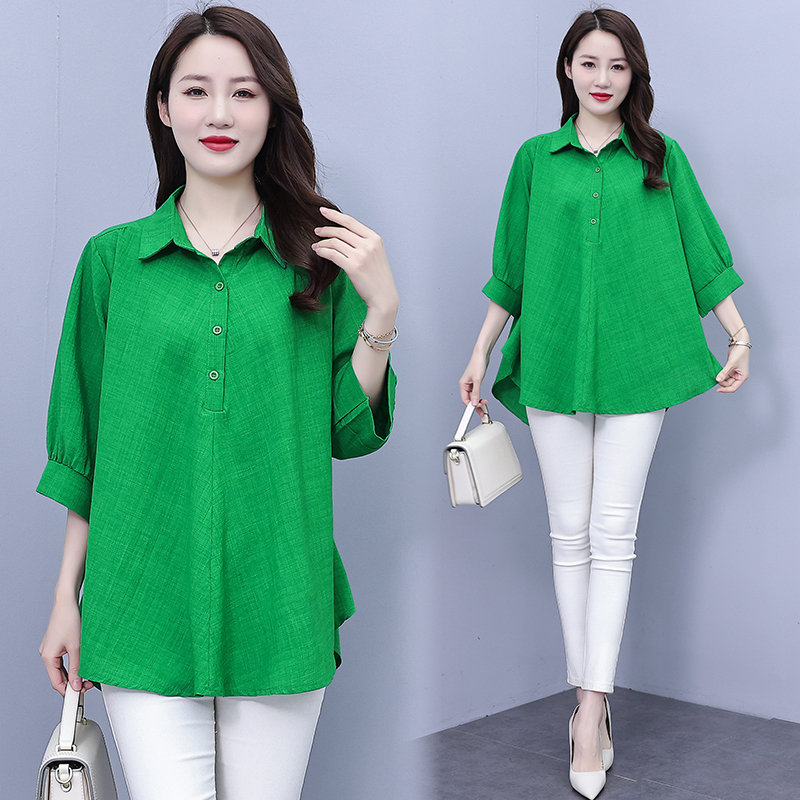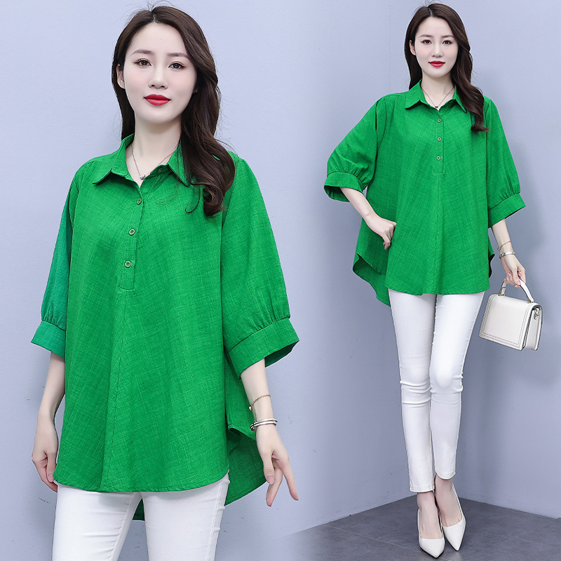 RY1106# 实拍大码女装2025夏装新款洋气时尚百搭胖MM纯色气质衬衫宽松显瘦