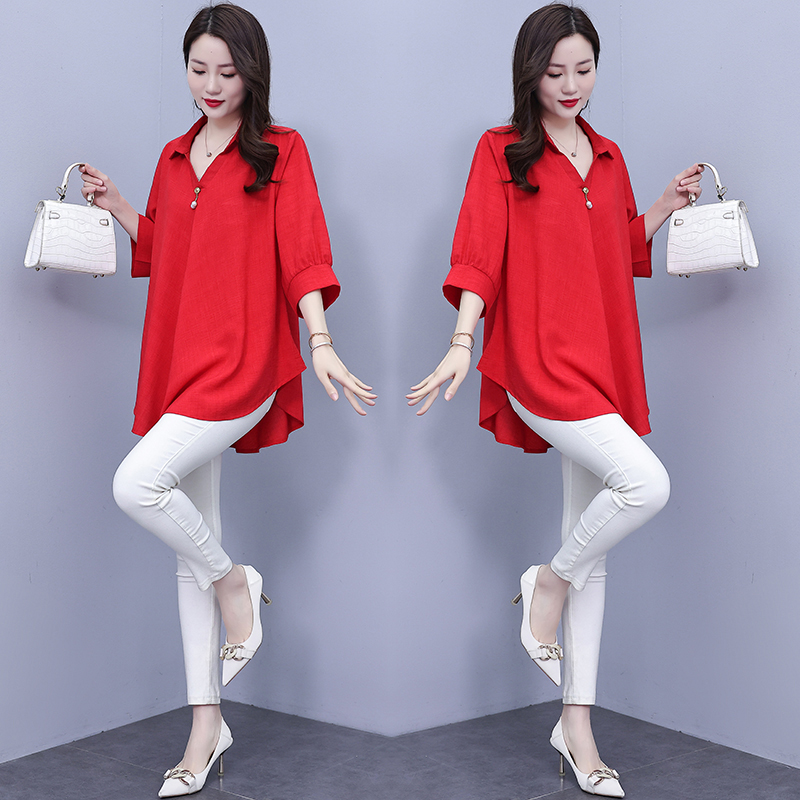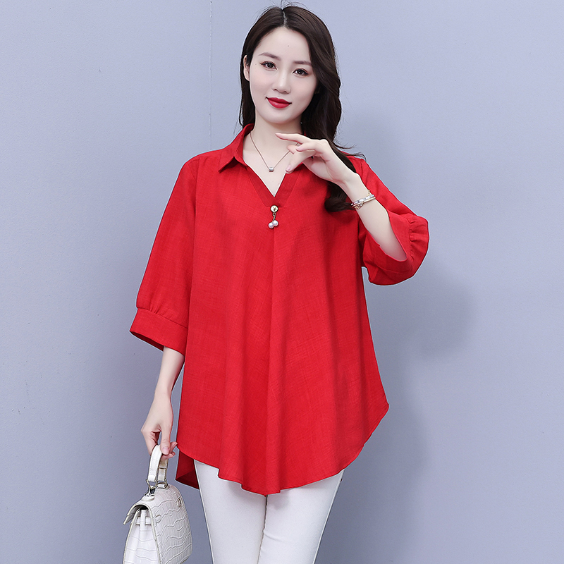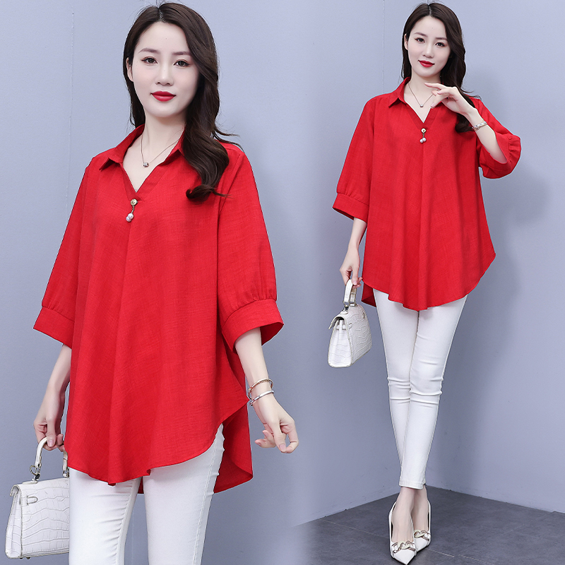 RY1108# 实拍大码女装2026夏装新款时尚显瘦宽松休闲胖MM洋气小衫气质上衣