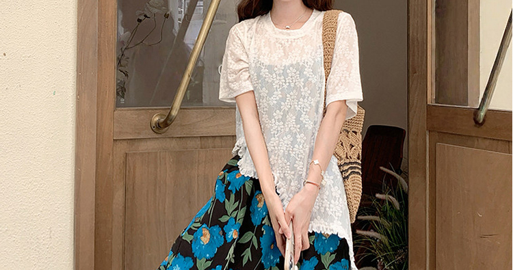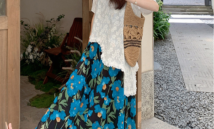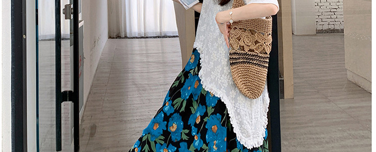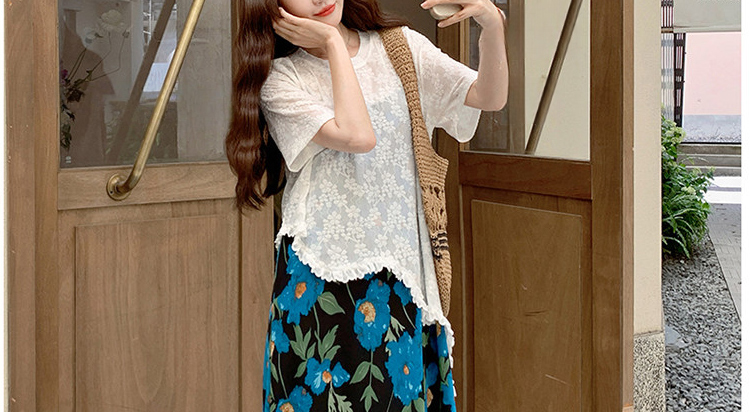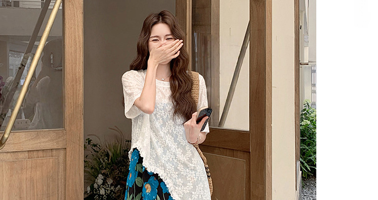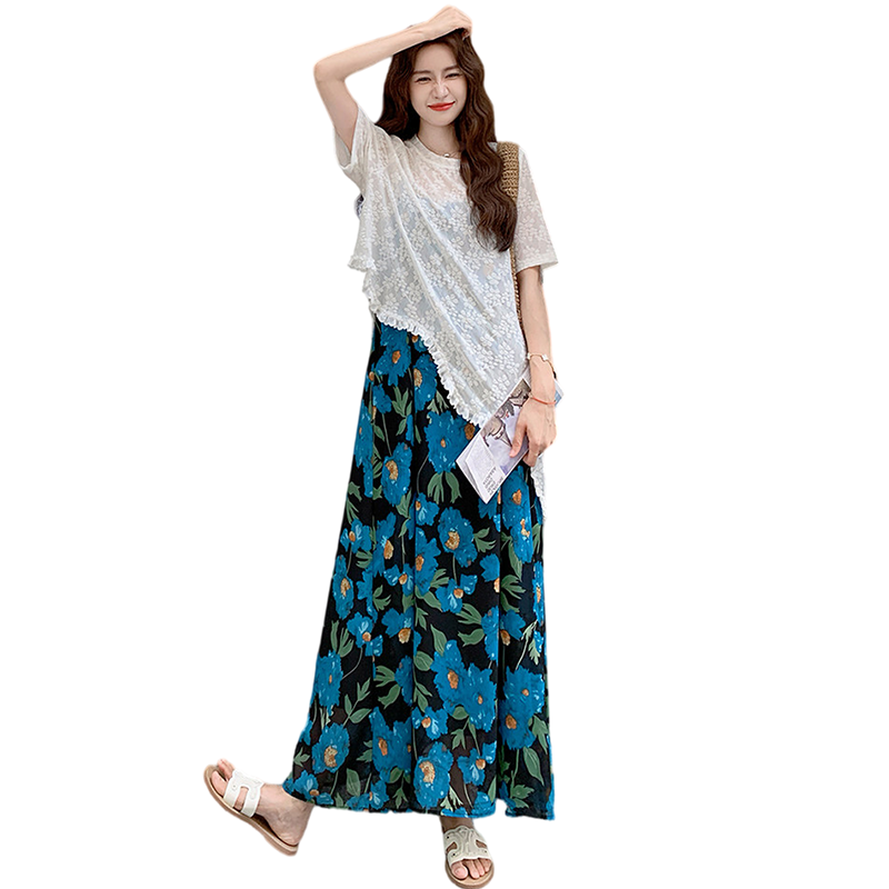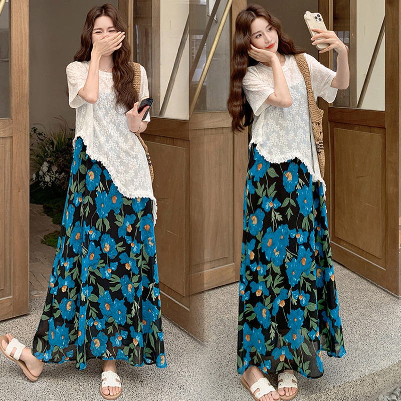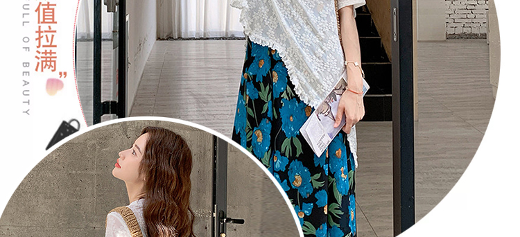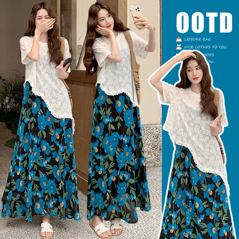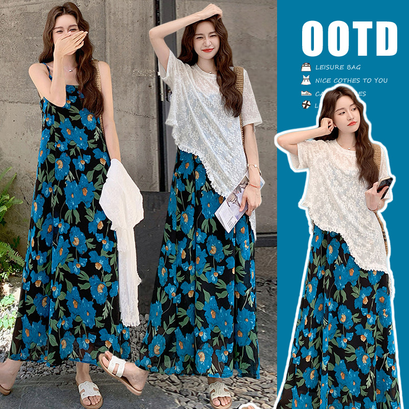 RY1110# 现 2026新款大码女装春夏装温柔系法式印花吊带裙蕾丝上衣两件套