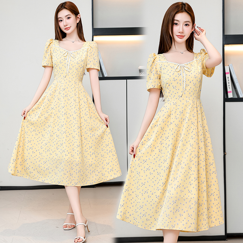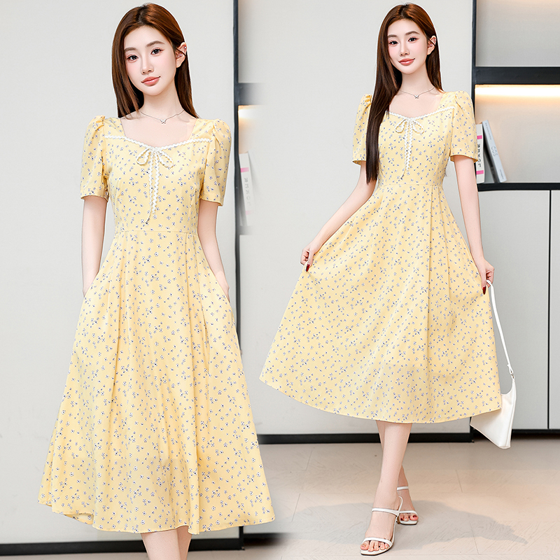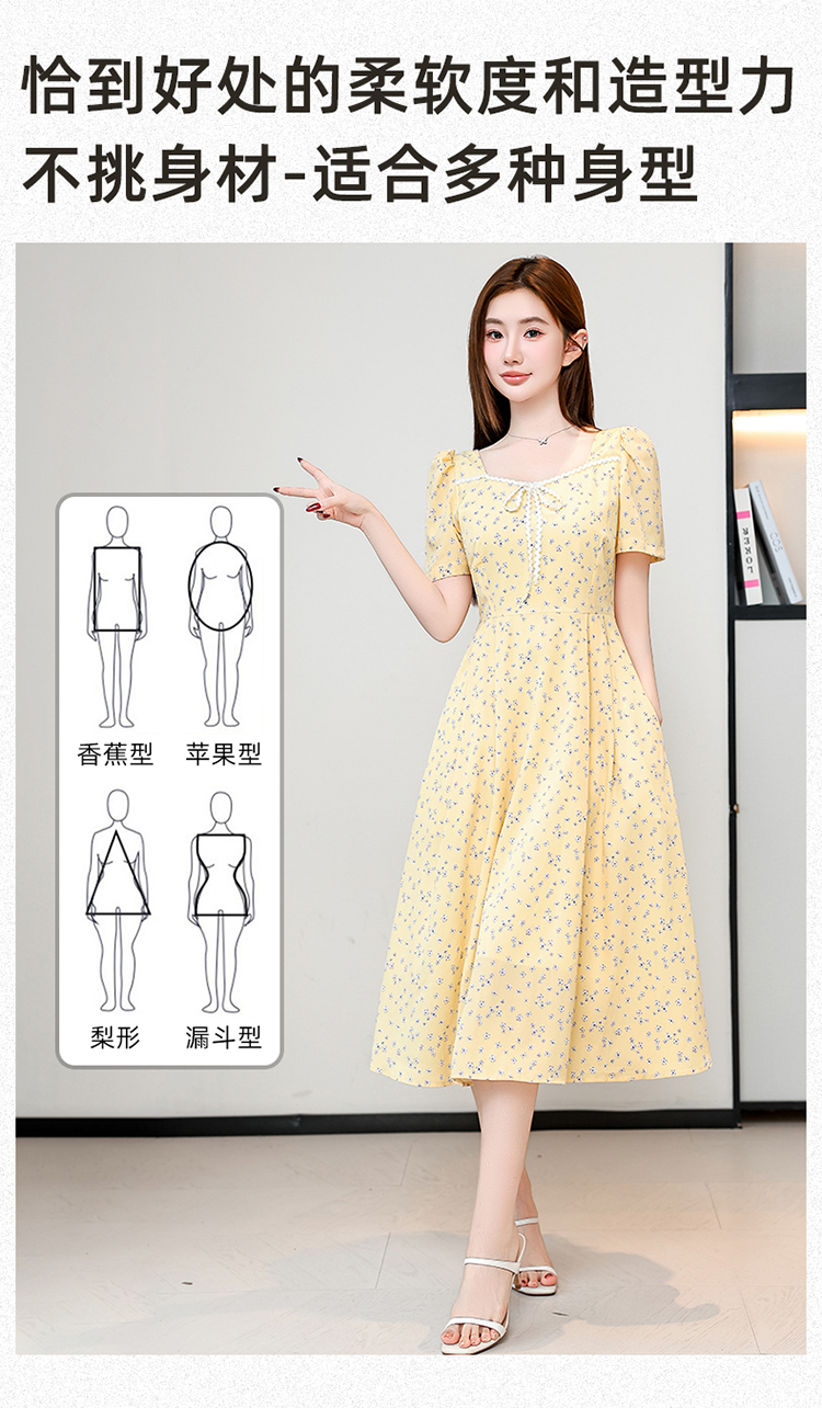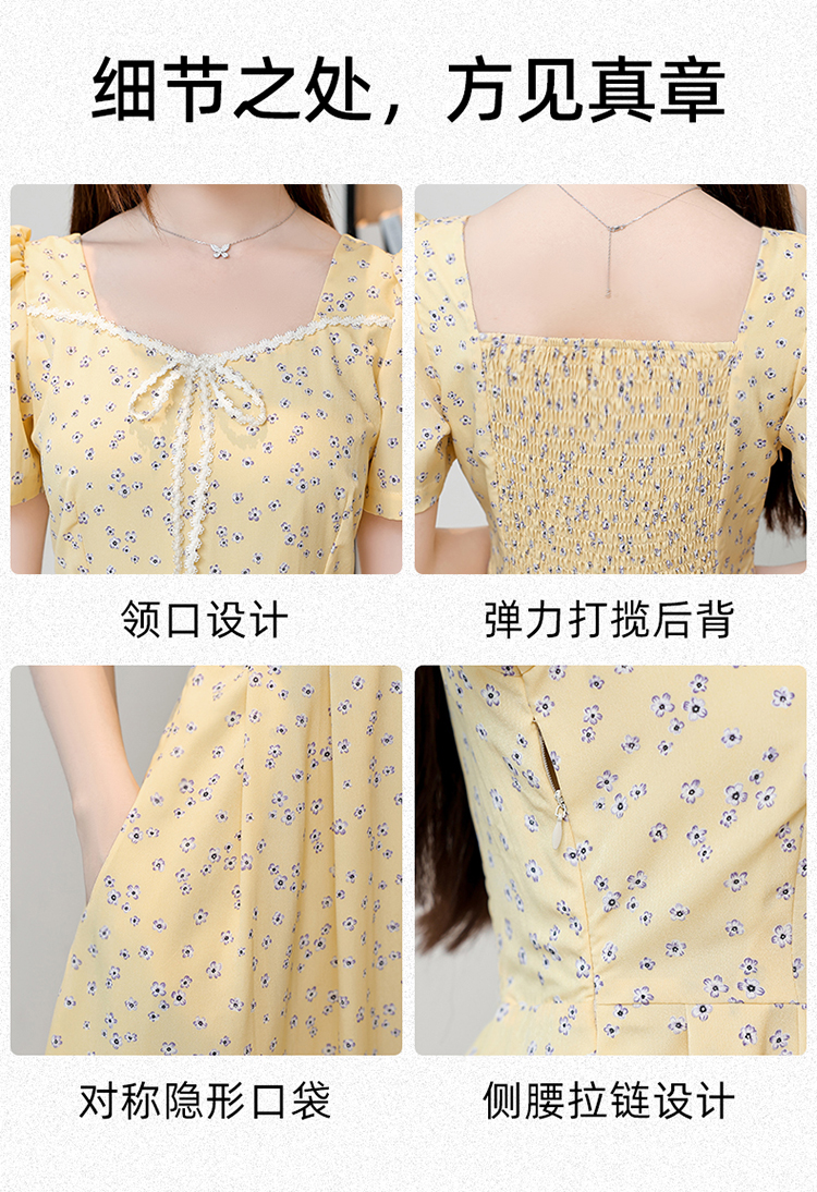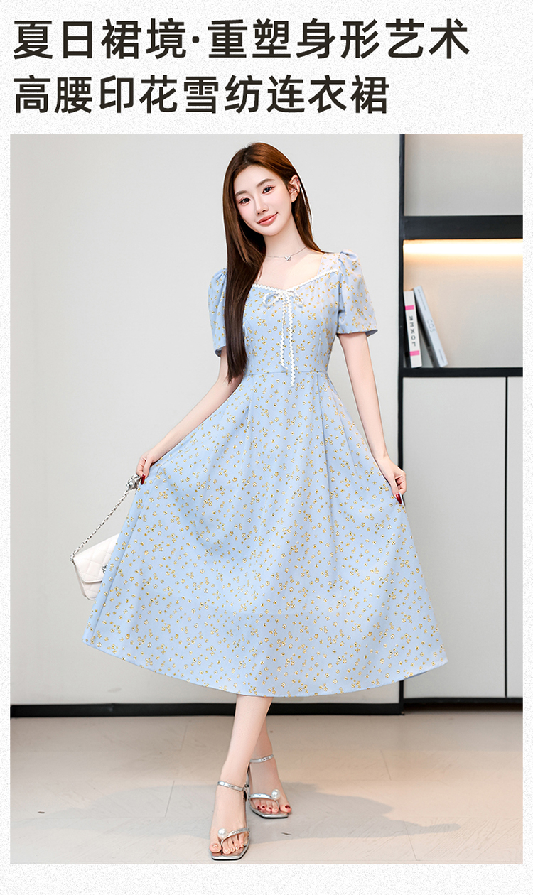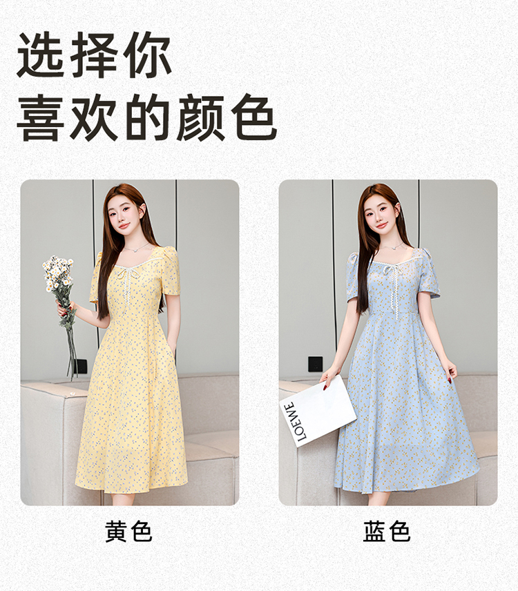 RY1142# 有口袋大码女装法式碎花短袖连衣裙2026新款女夏季胖mm收腰显瘦裙