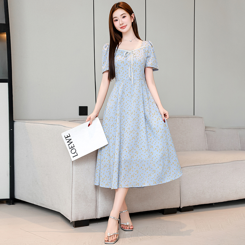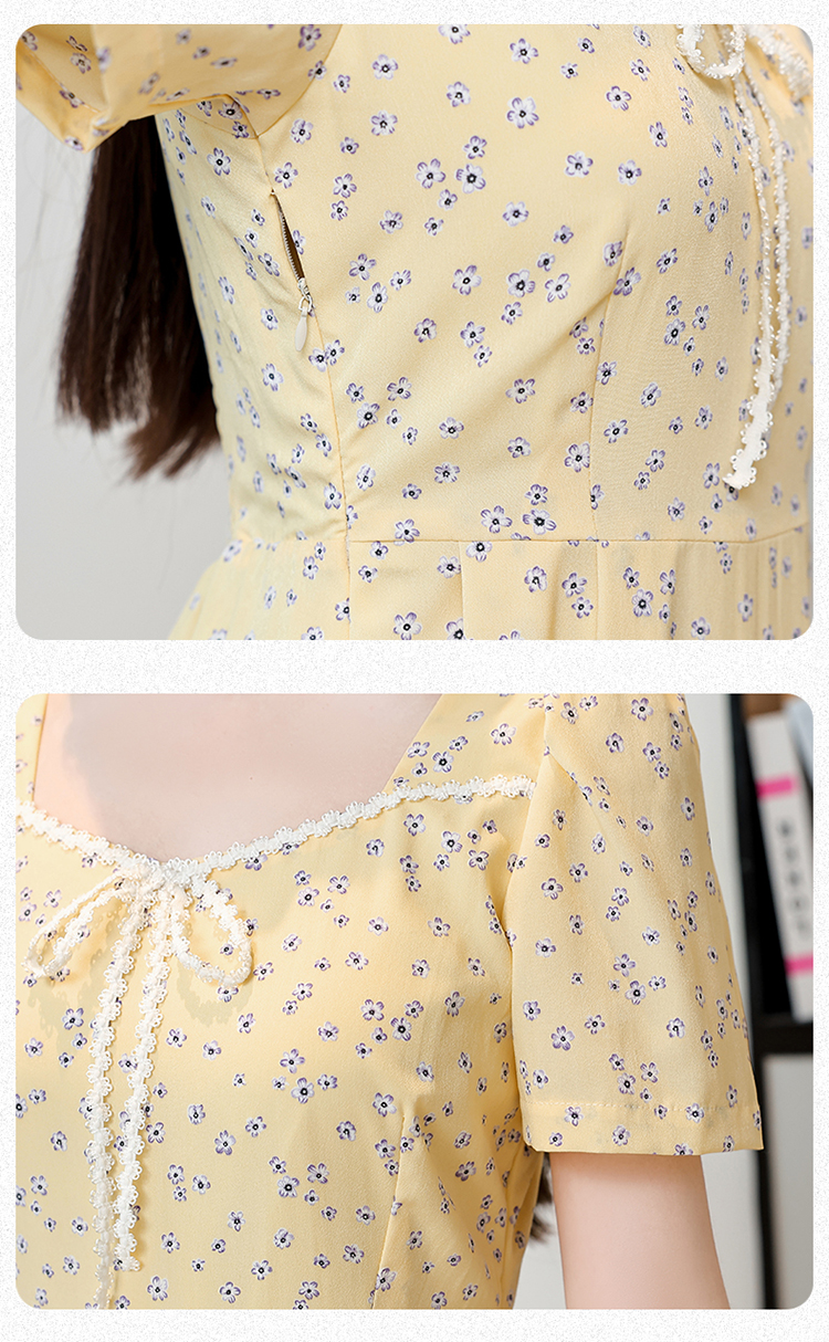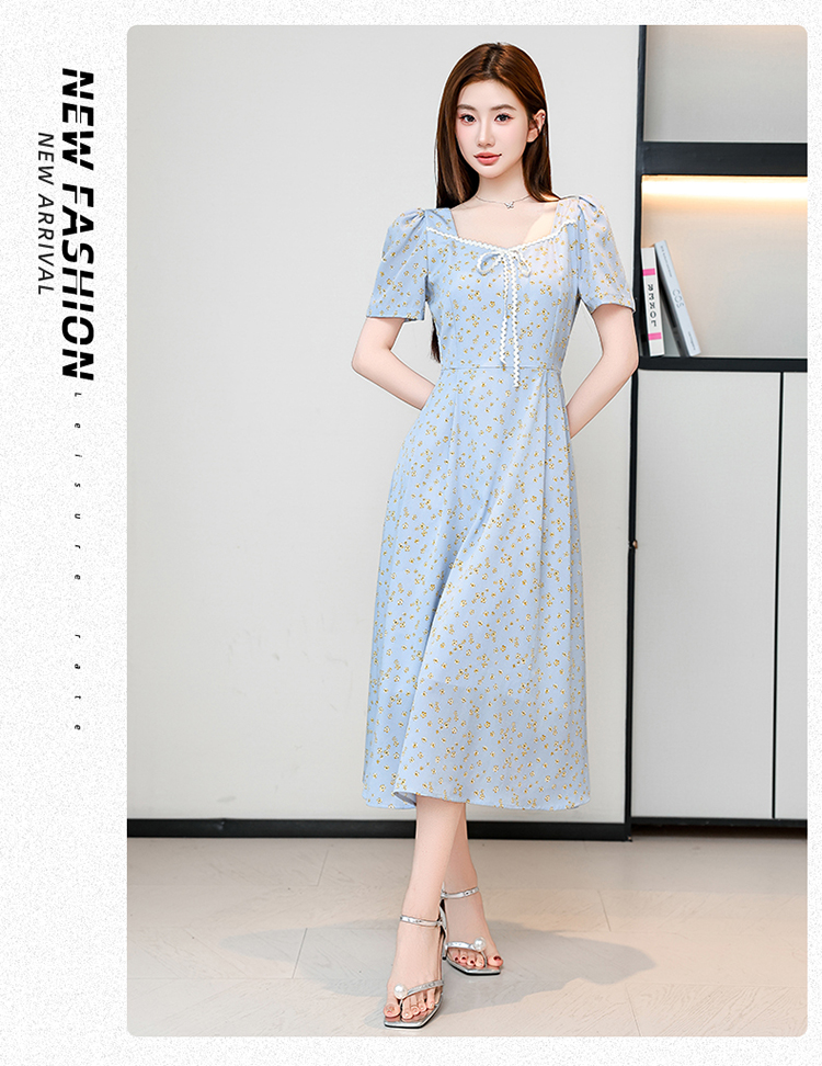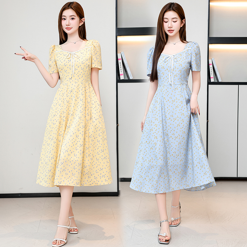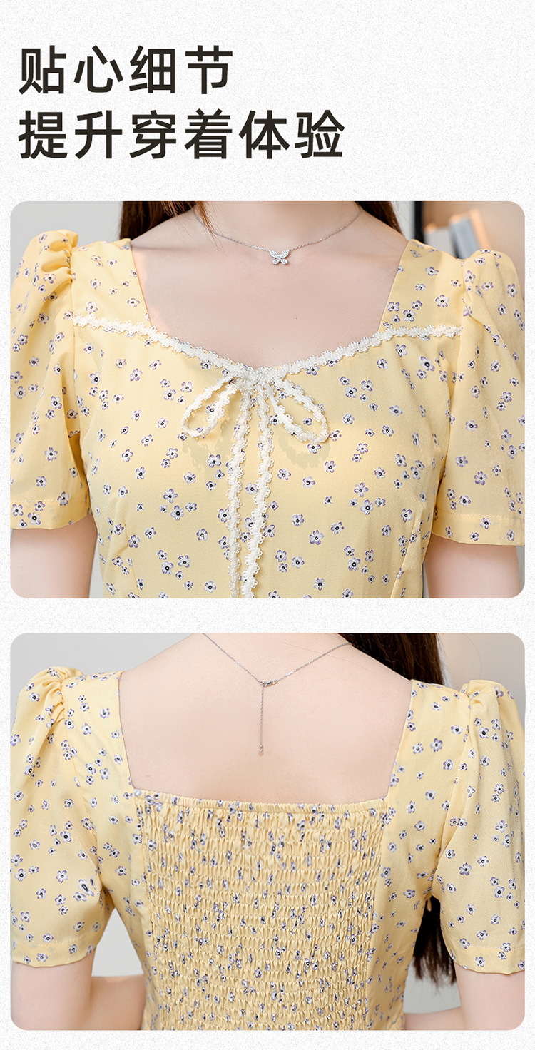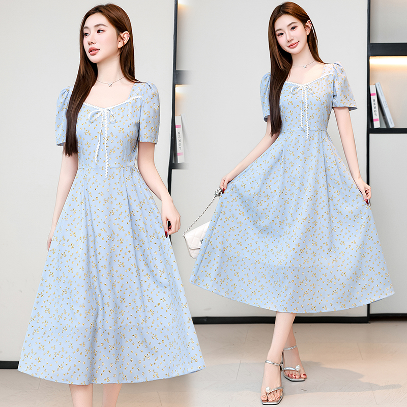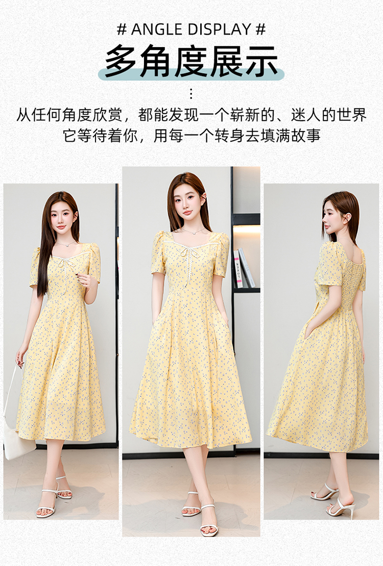 RY1142# 有口袋大码女装法式碎花短袖连衣裙2026新款女夏季胖mm收腰显瘦裙