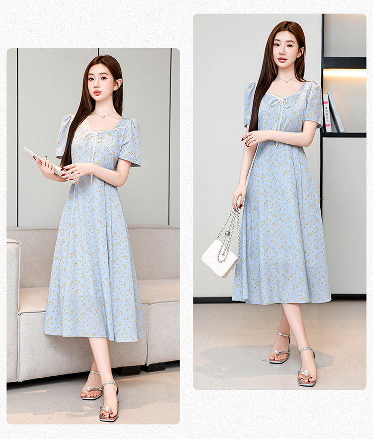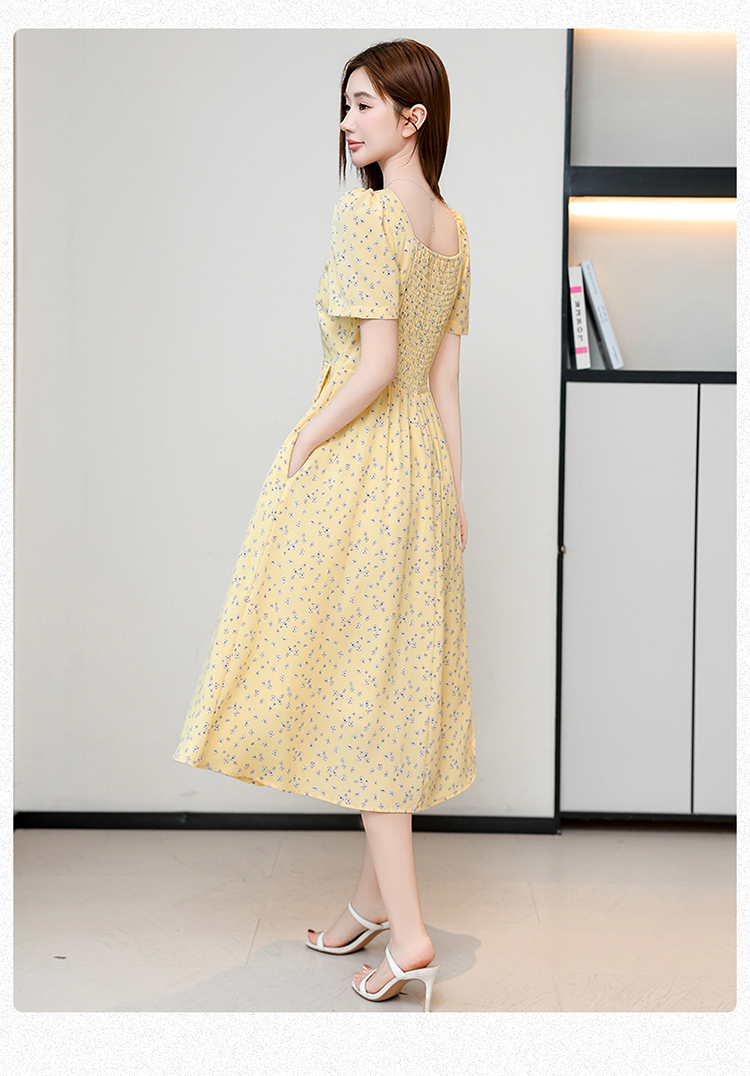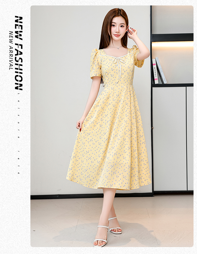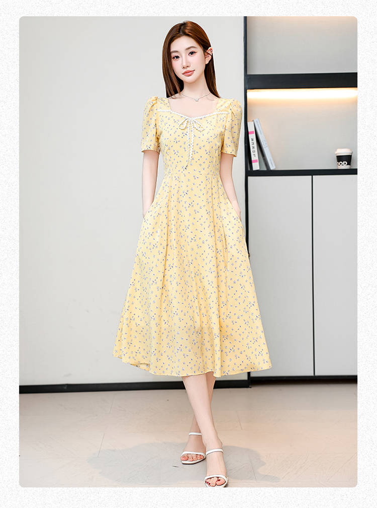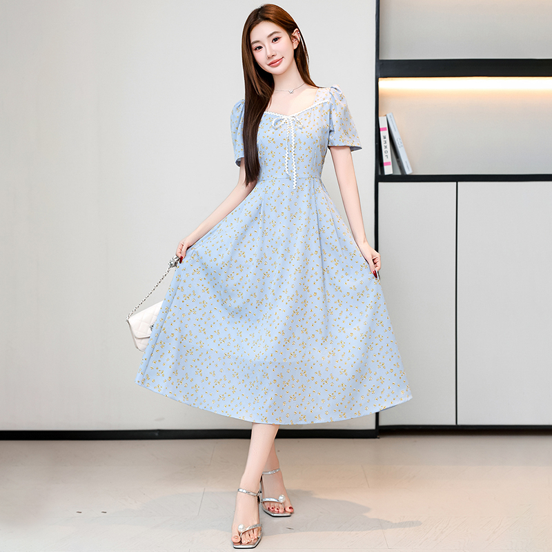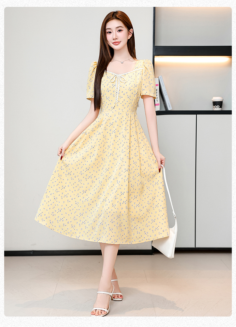 RY1142# 有口袋大码女装法式碎花短袖连衣裙2026新款女夏季胖mm收腰显瘦裙