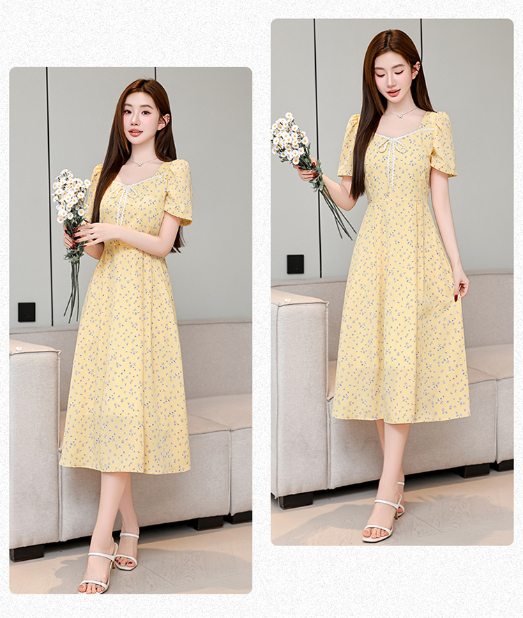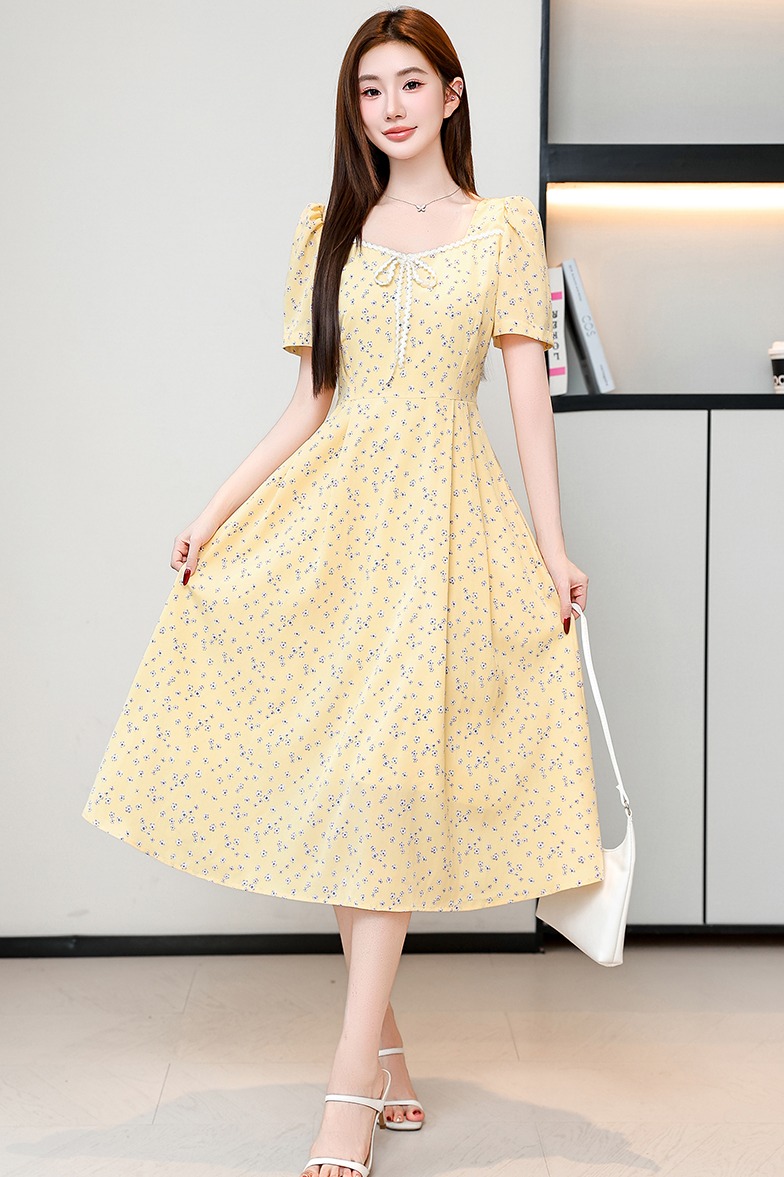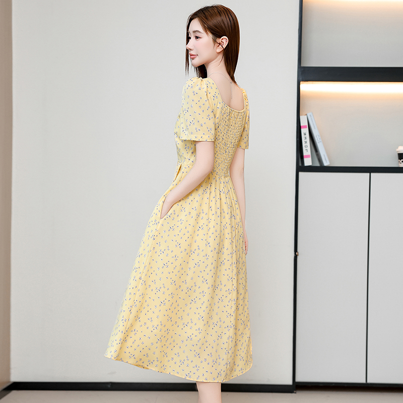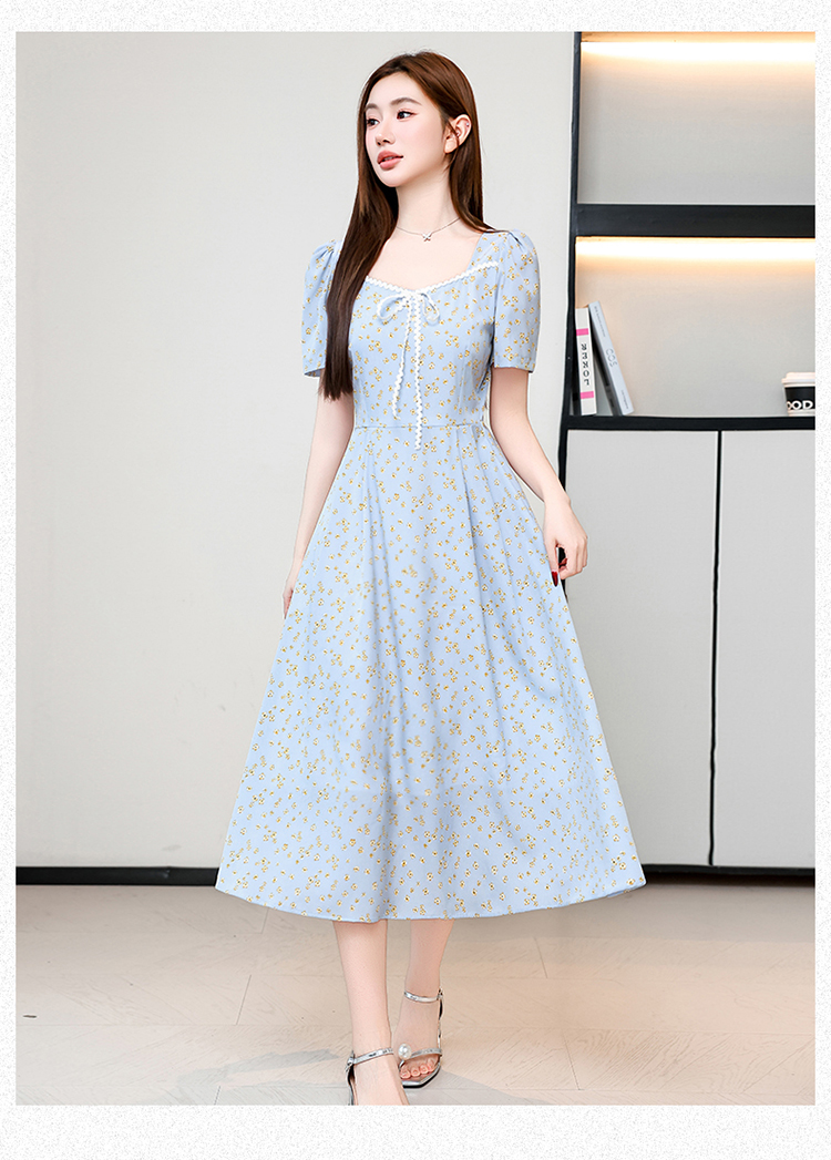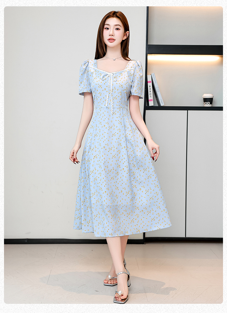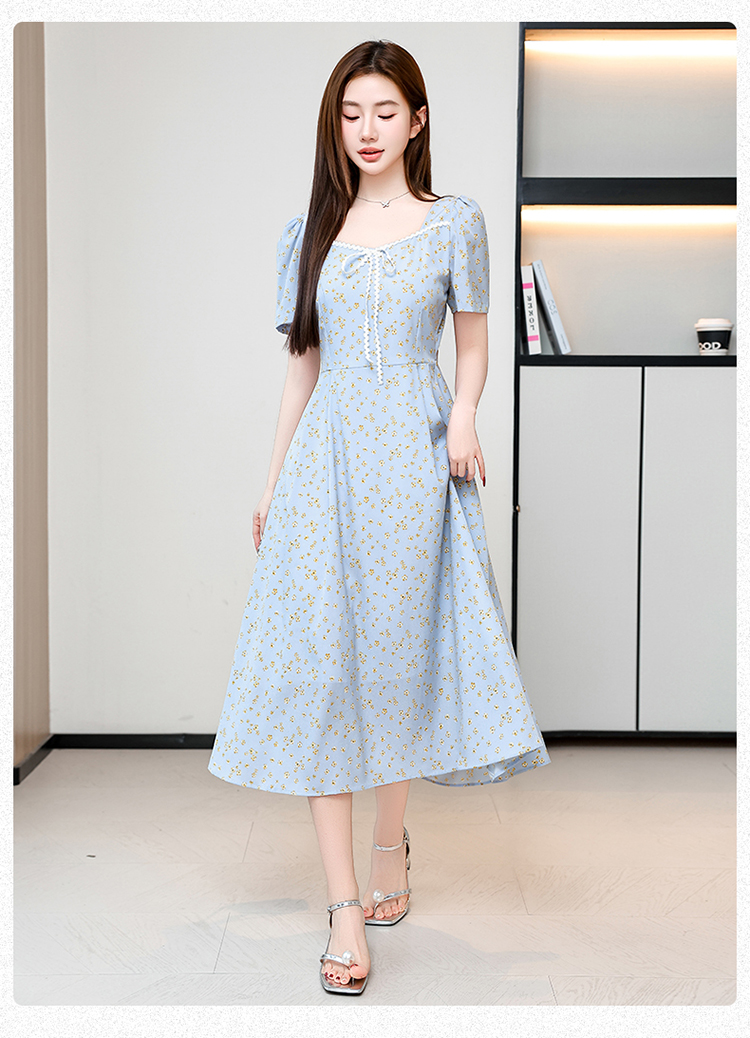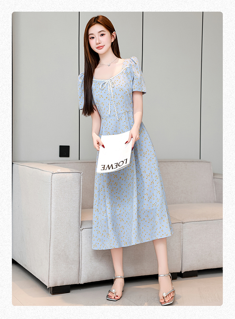 RY1142# 有口袋大码女装法式碎花短袖连衣裙2026新款女夏季胖mm收腰显瘦裙