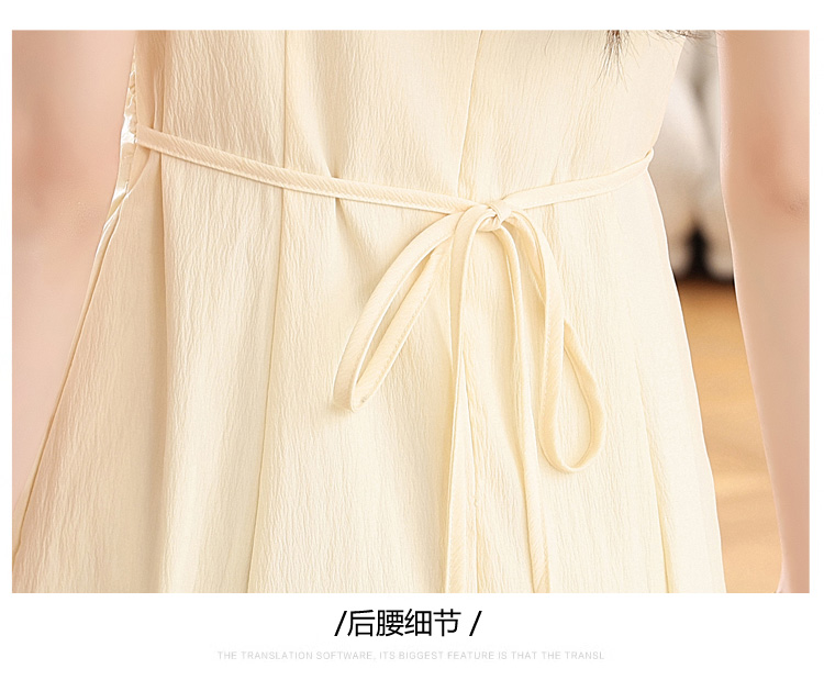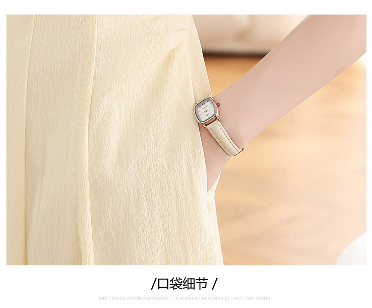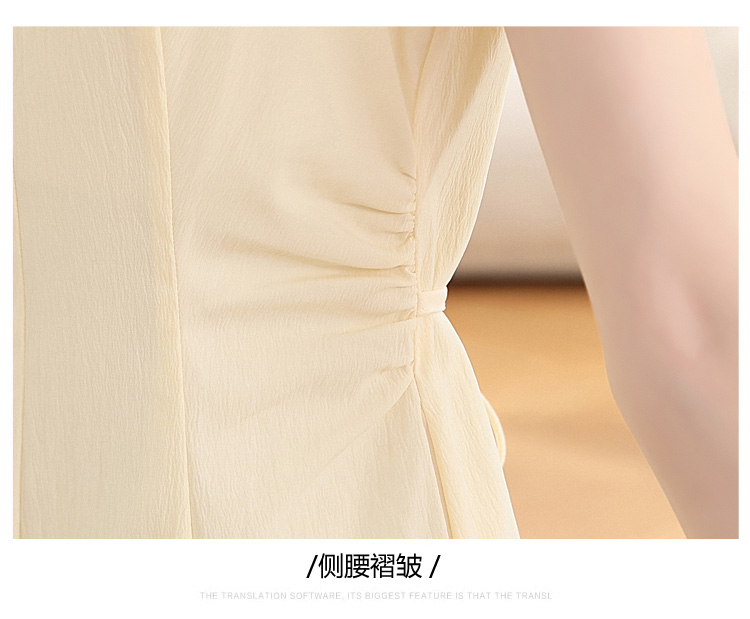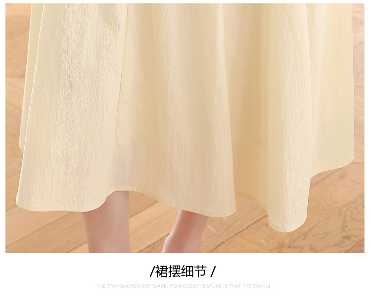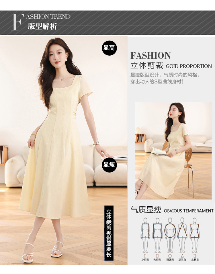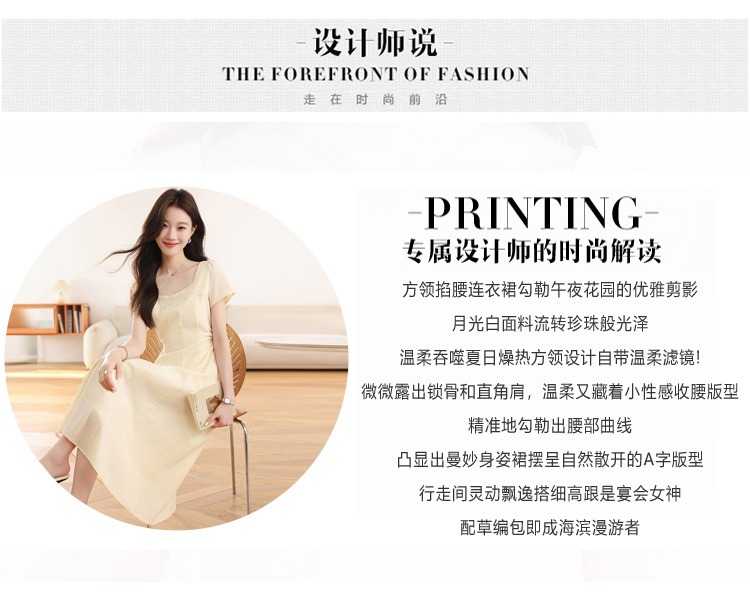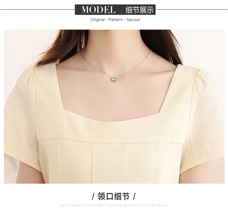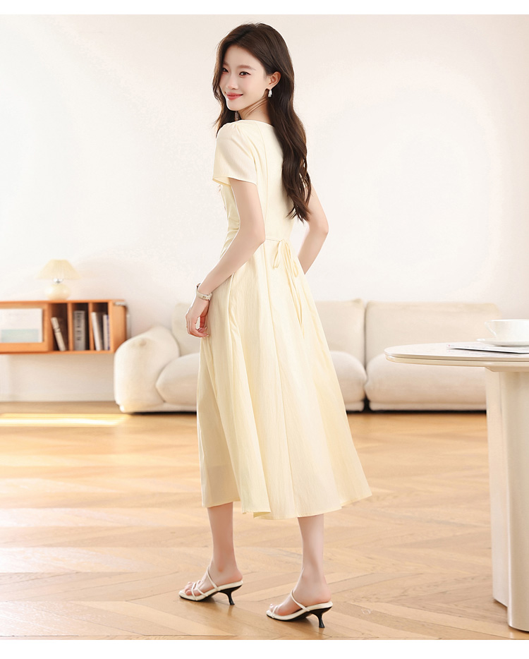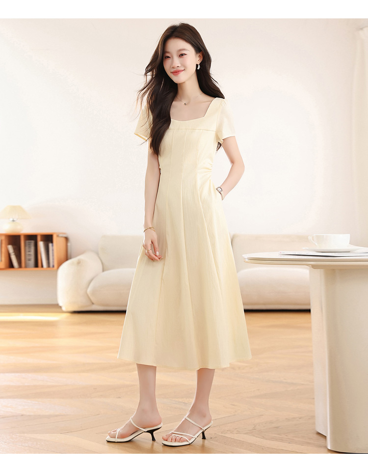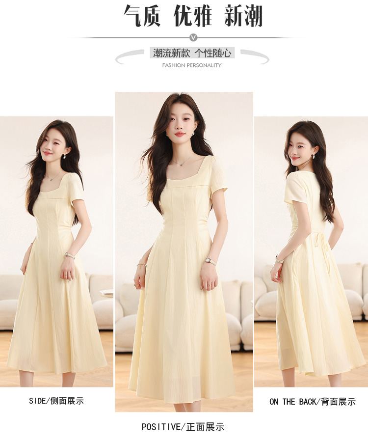 RY1156# 实拍匿名月光法式方领气质浅色短袖连衣裙女夏季收腰长裙子