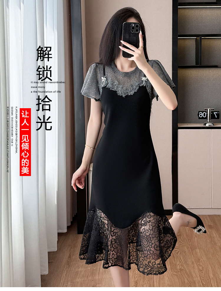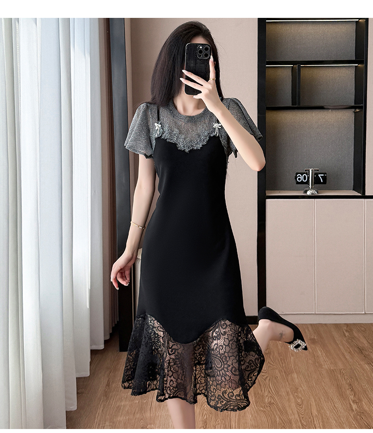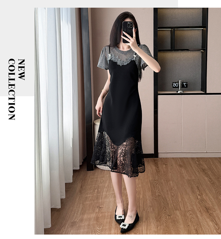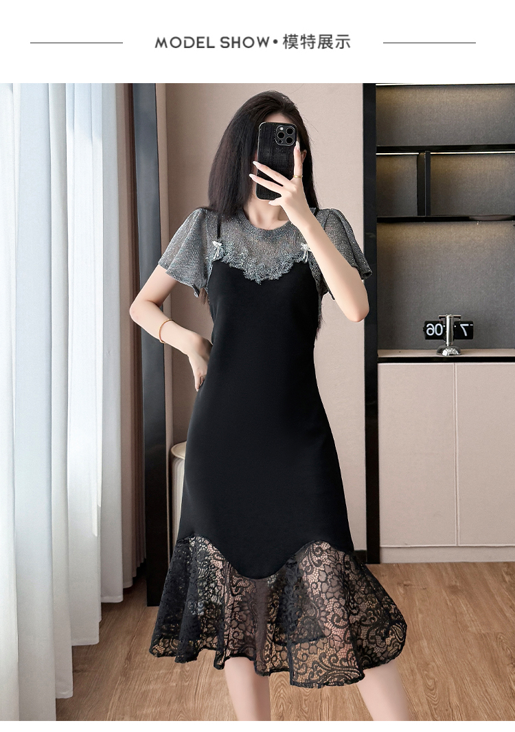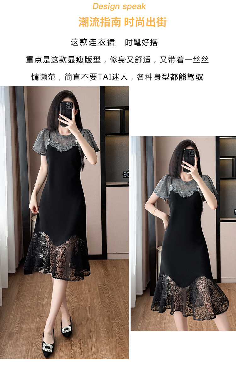 RY1158#法式拼接蕾丝减龄显瘦连衣裙