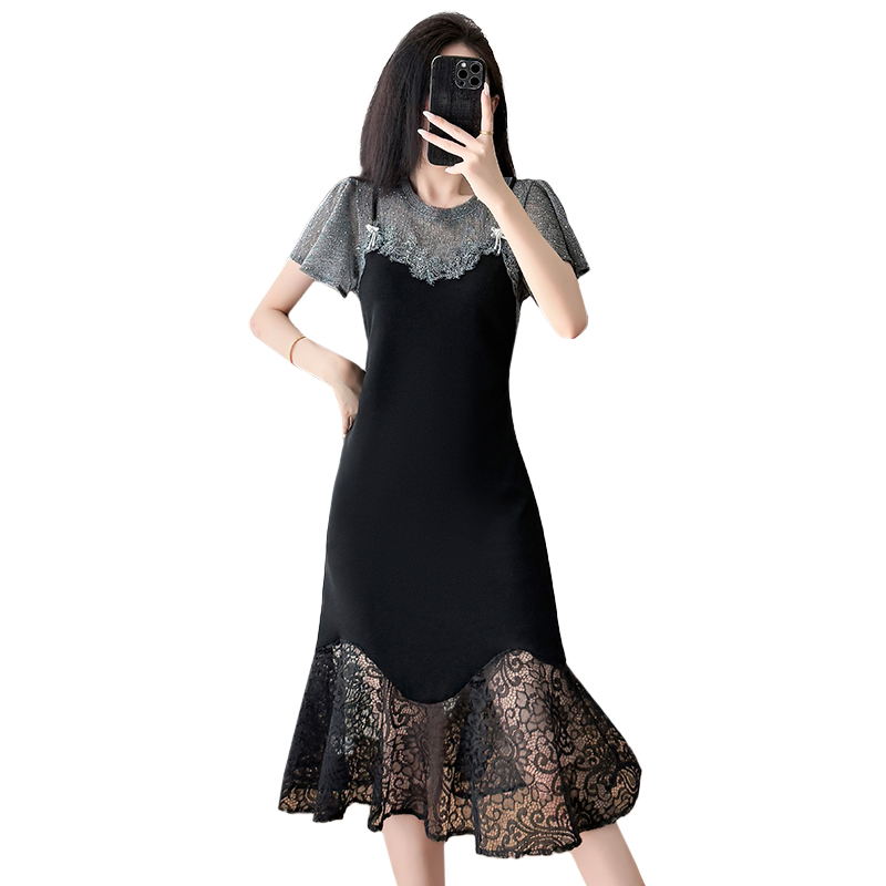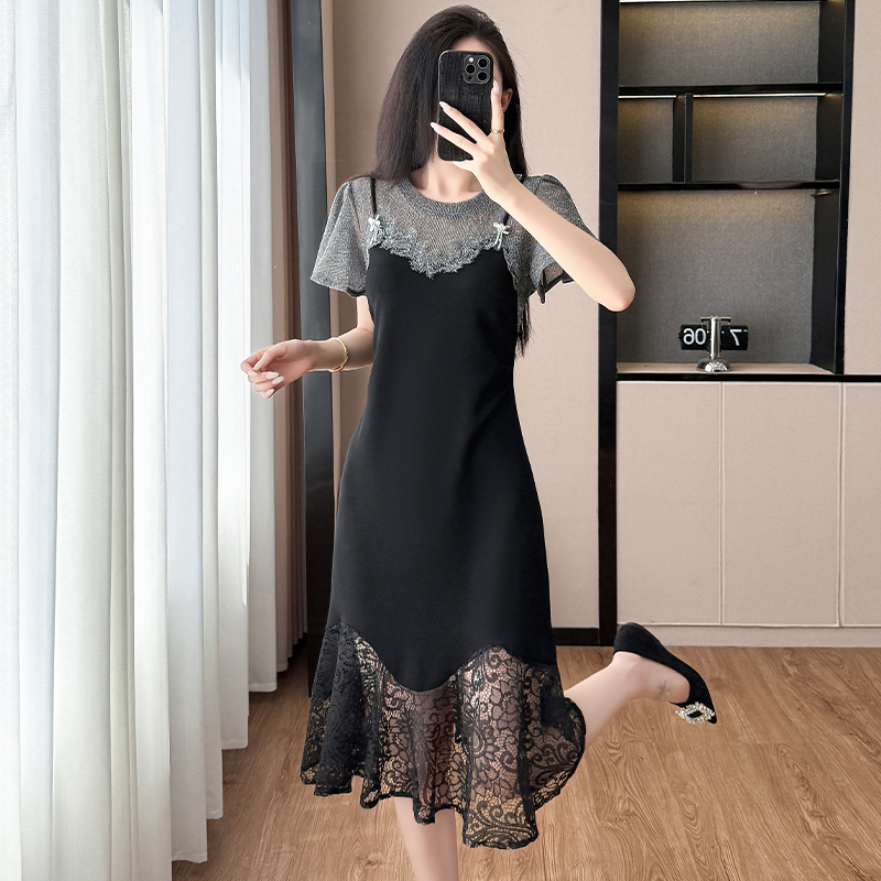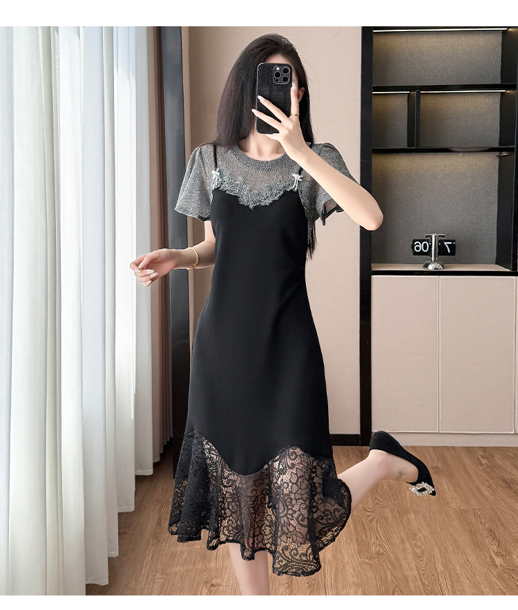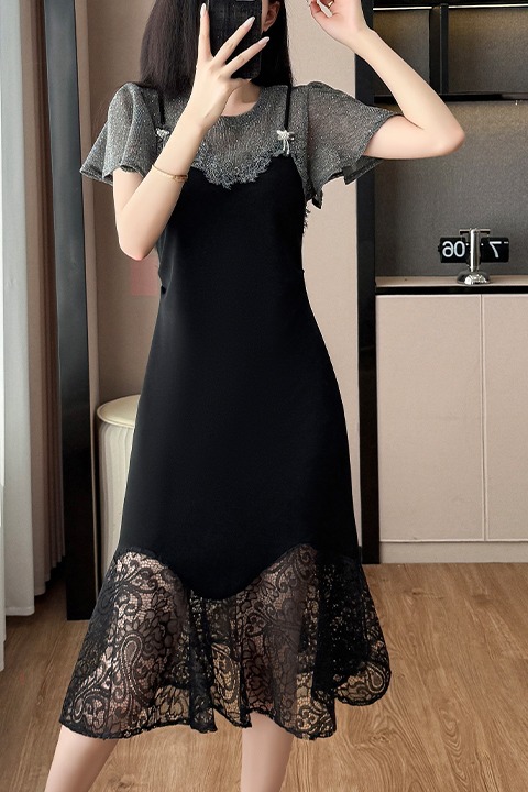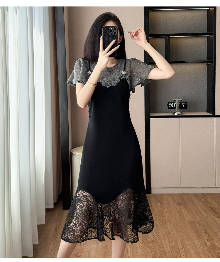 RY1158#法式拼接蕾丝减龄显瘦连衣裙