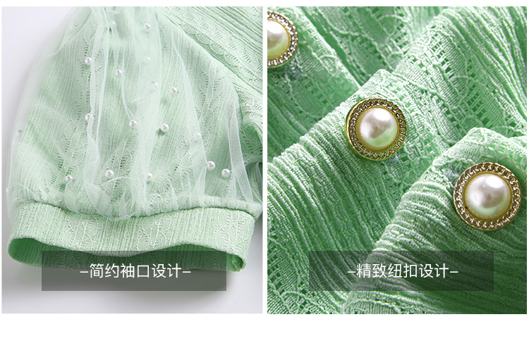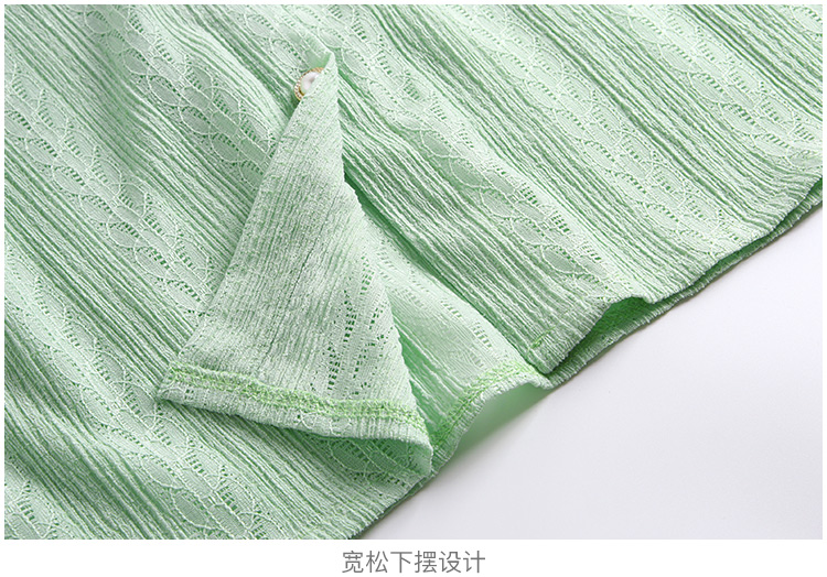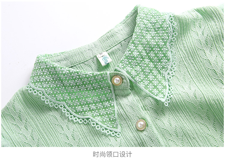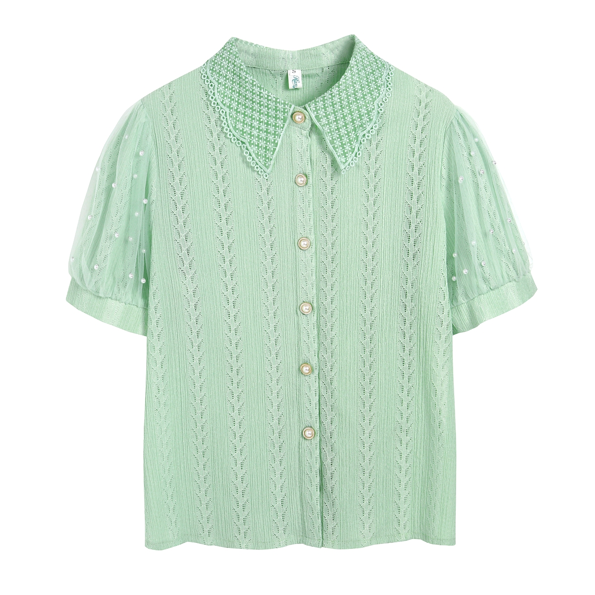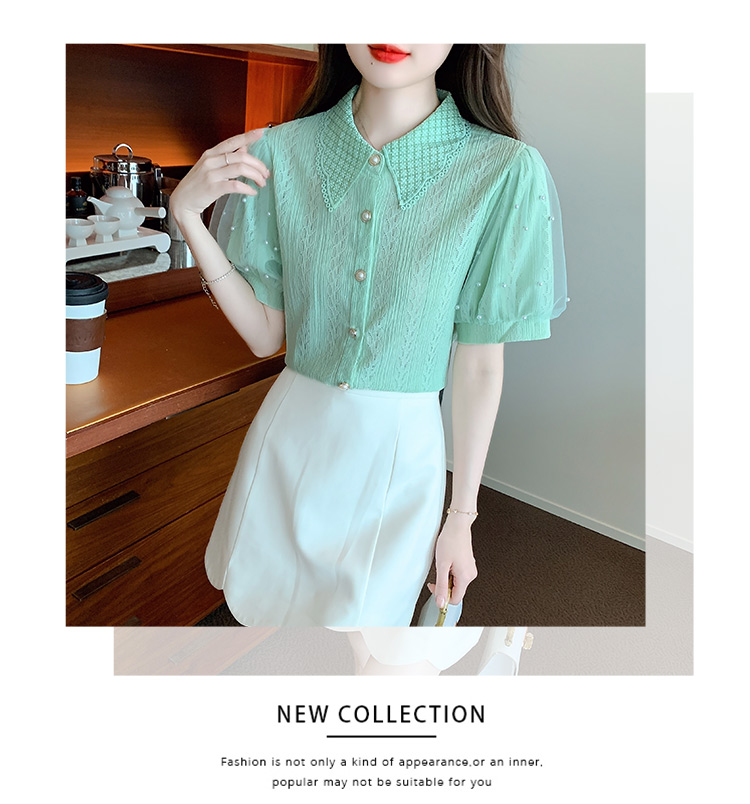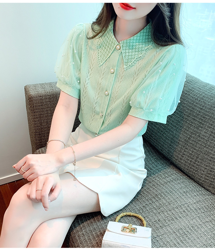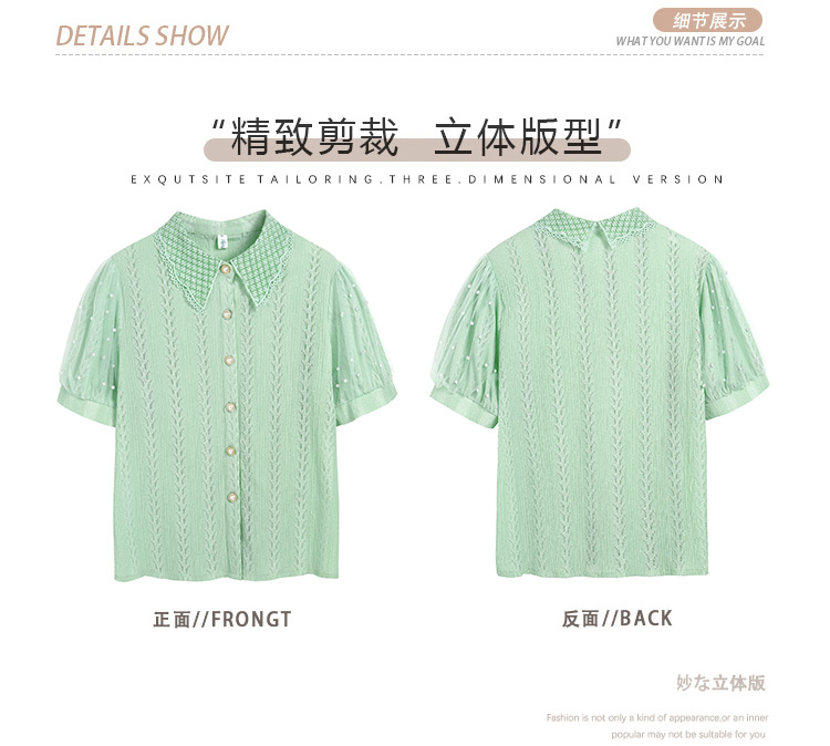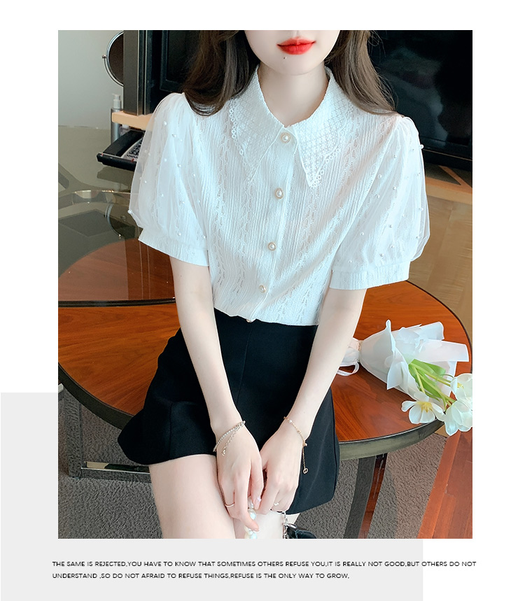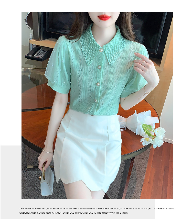 RY1168# 网纱雪纺衬衣女夏季2026新款时尚甜美娃娃领镂空泡泡短袖蕾丝上衣