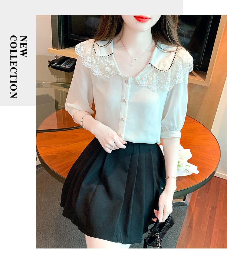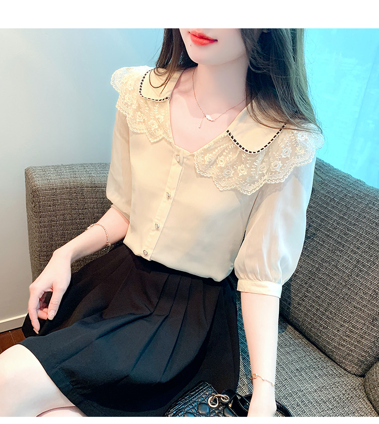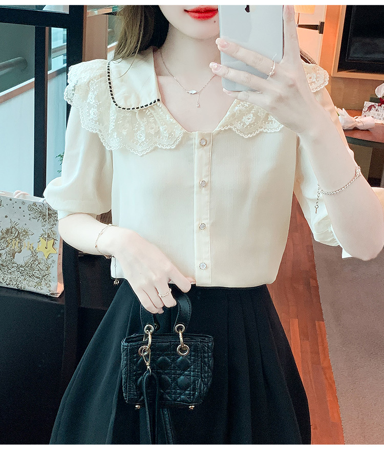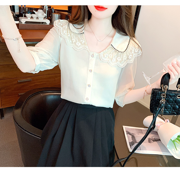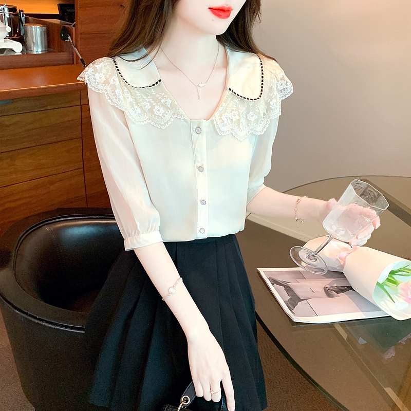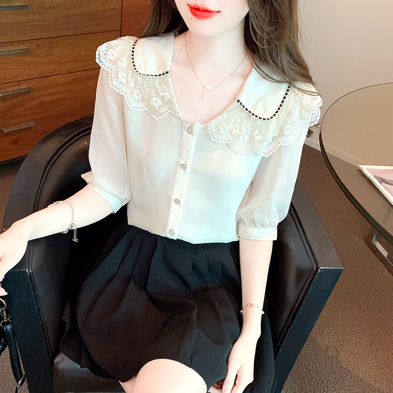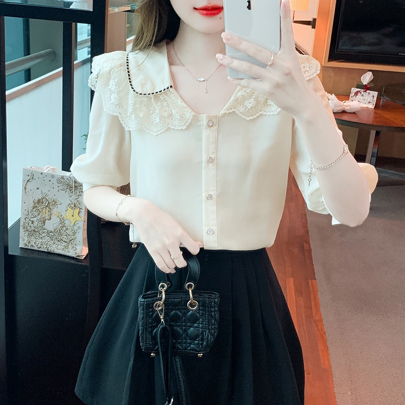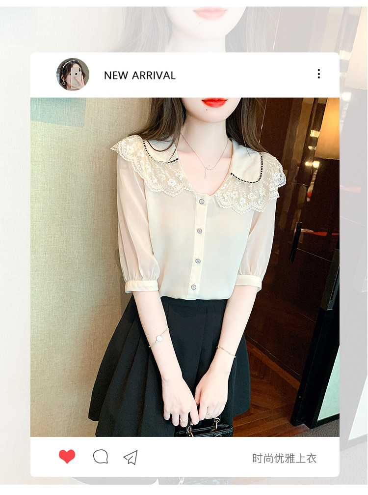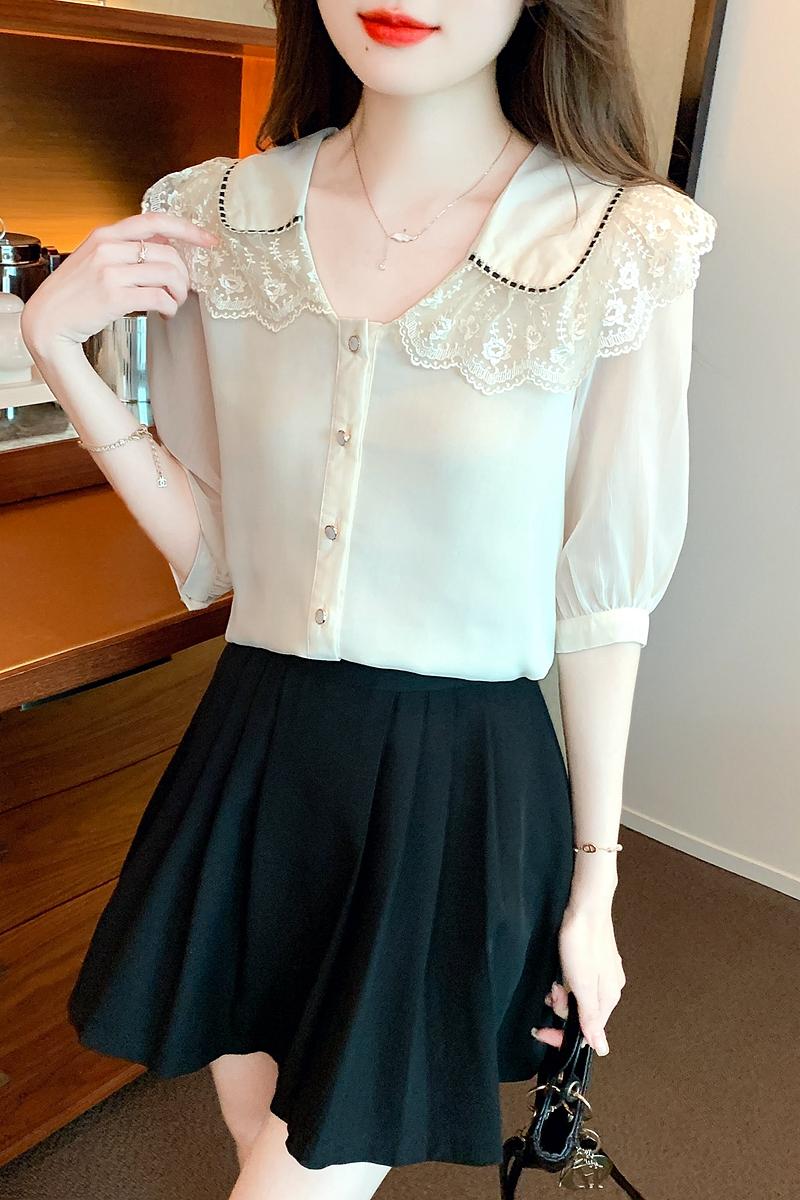 RY1169# 娃娃领衬衫女设计感2026夏季新款别致上衣女法式小清新甜美雪纺衫