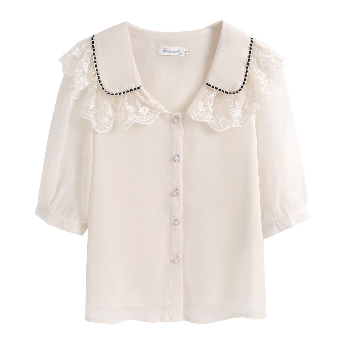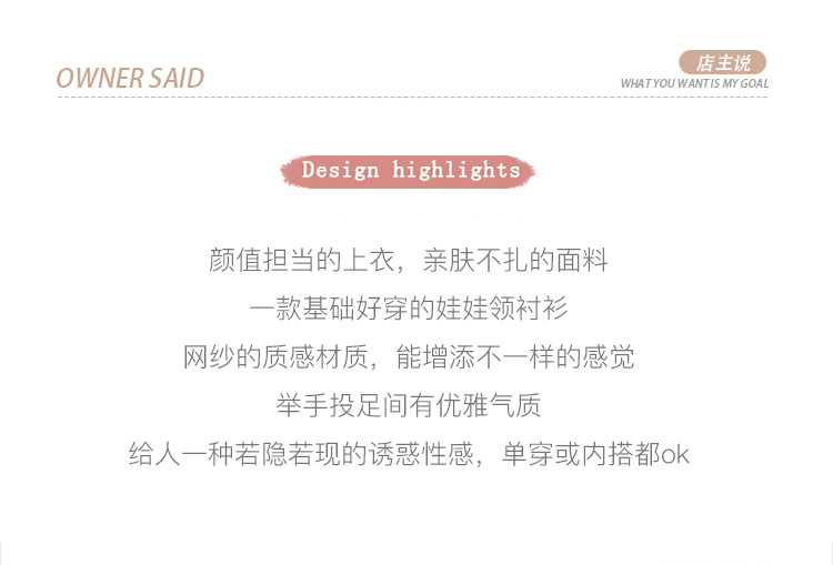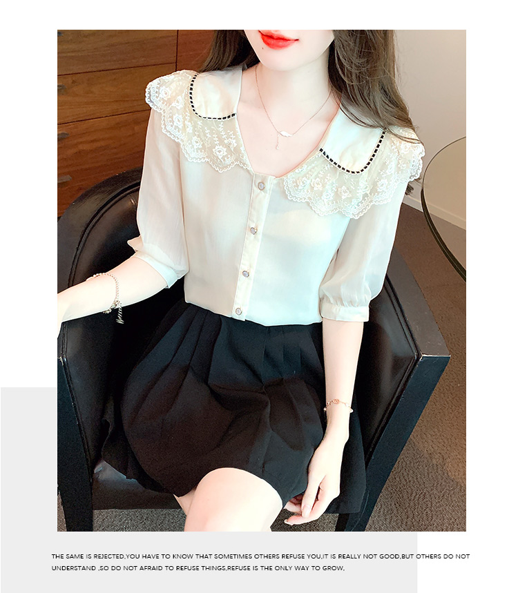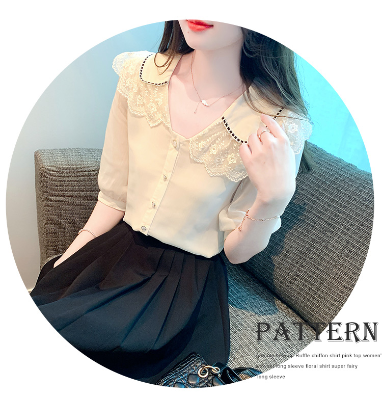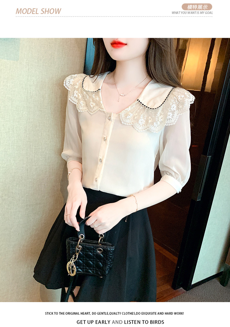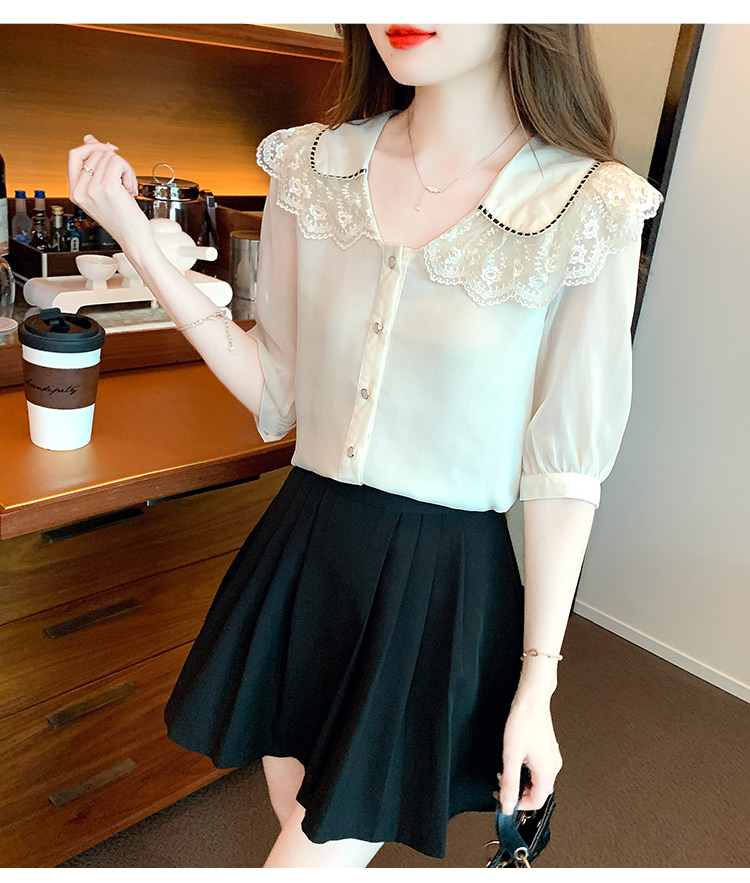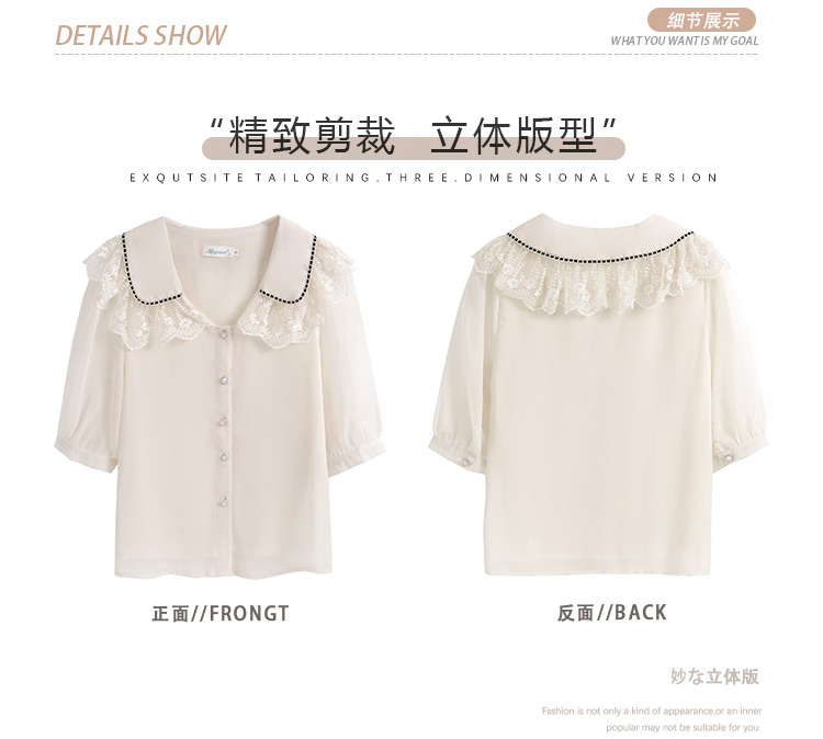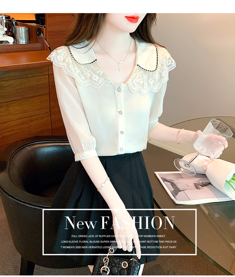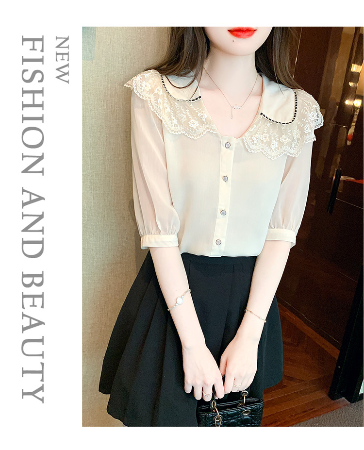 RY1169# 娃娃领衬衫女设计感2026夏季新款别致上衣女法式小清新甜美雪纺衫