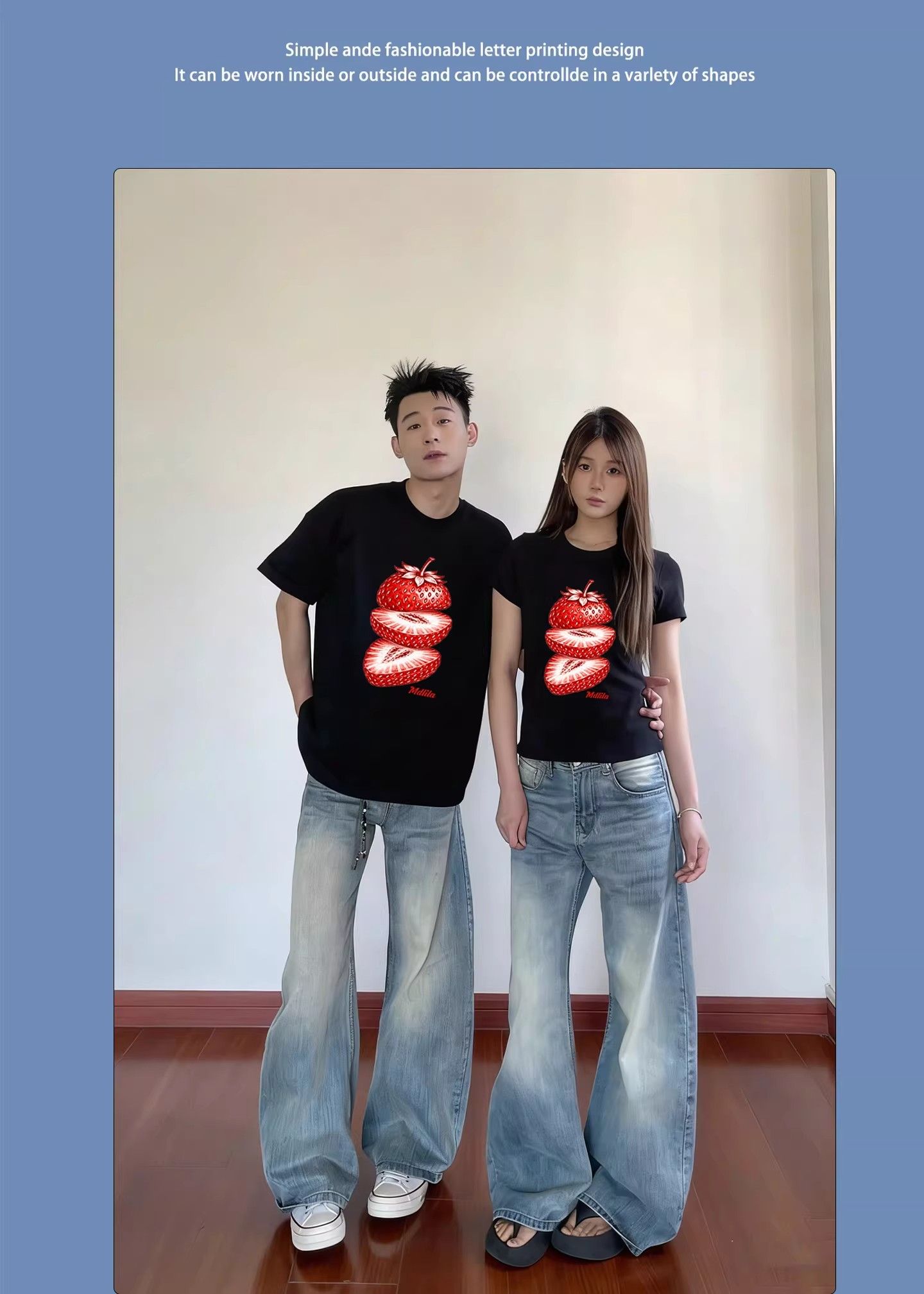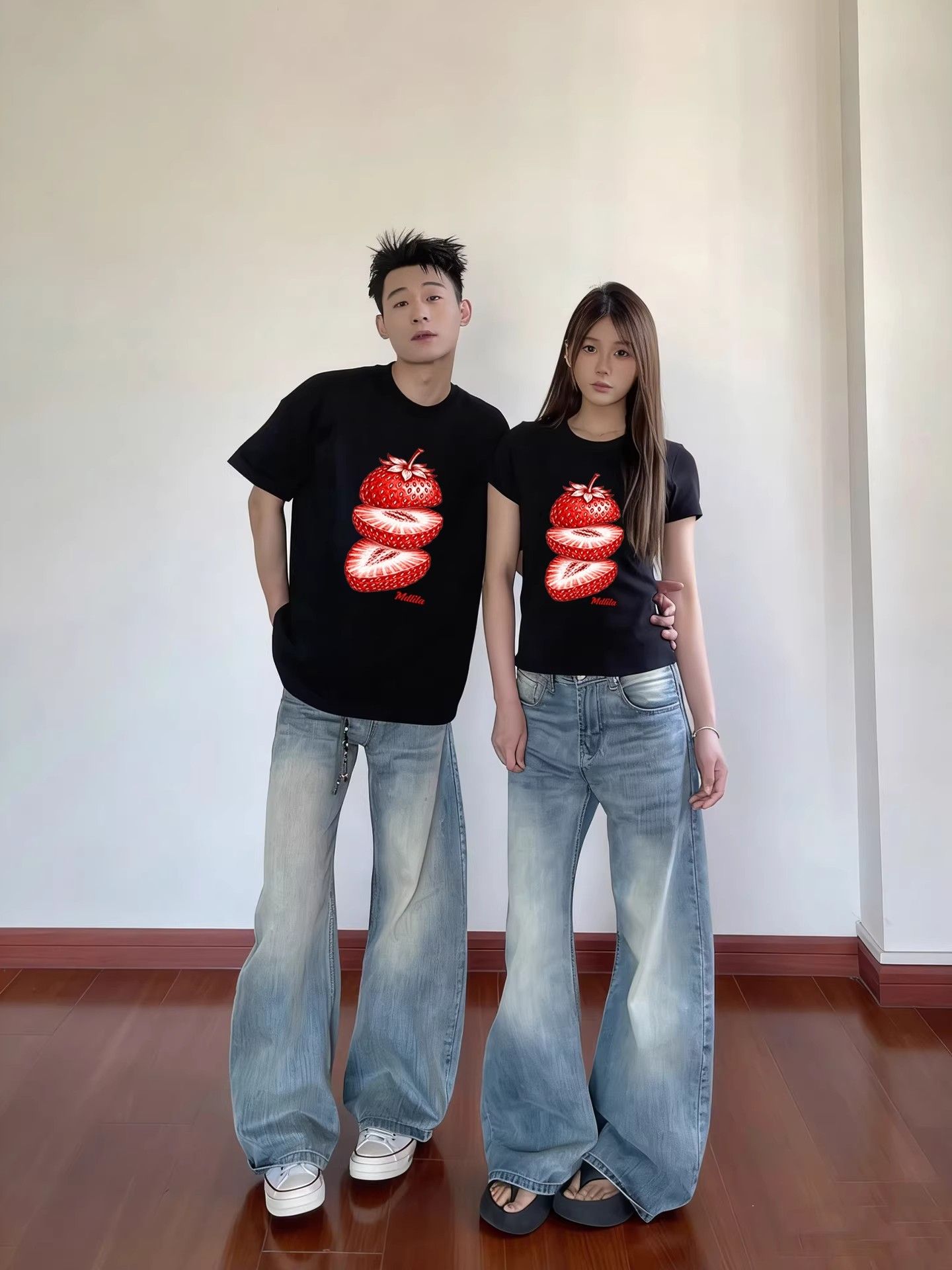 RY1177# 高质感的特别的情侣装短袖T恤2026夏季新款草莓小众超好看的上衣
