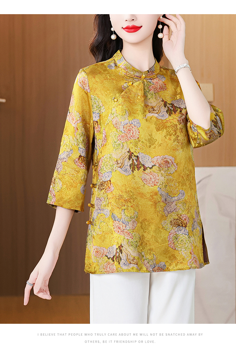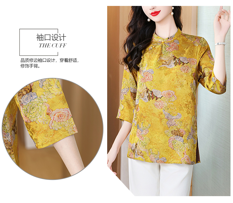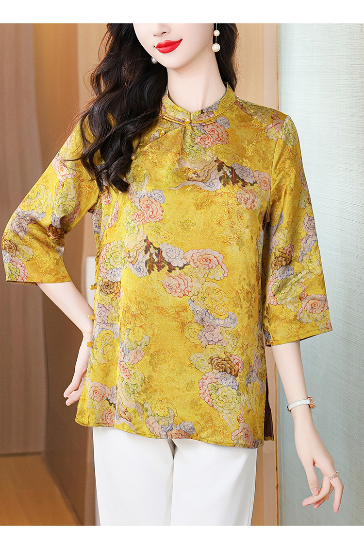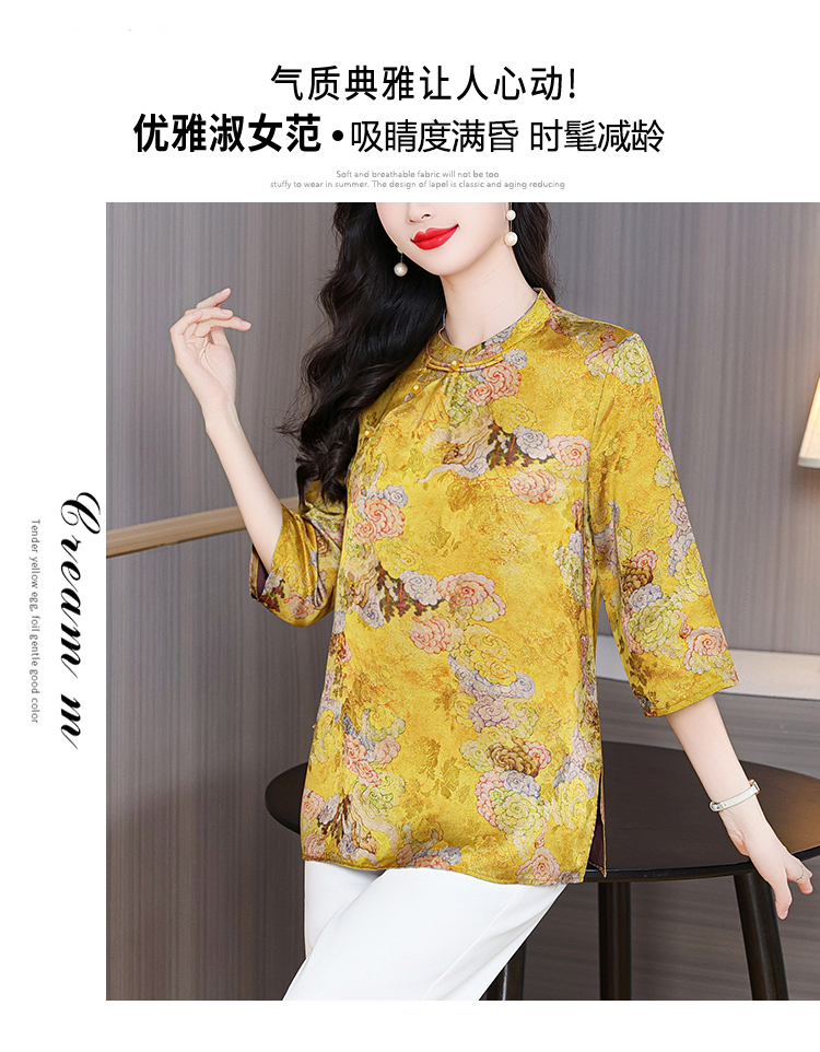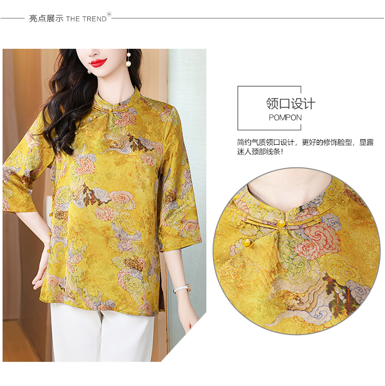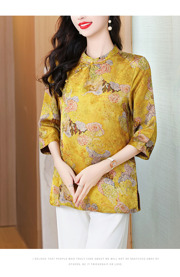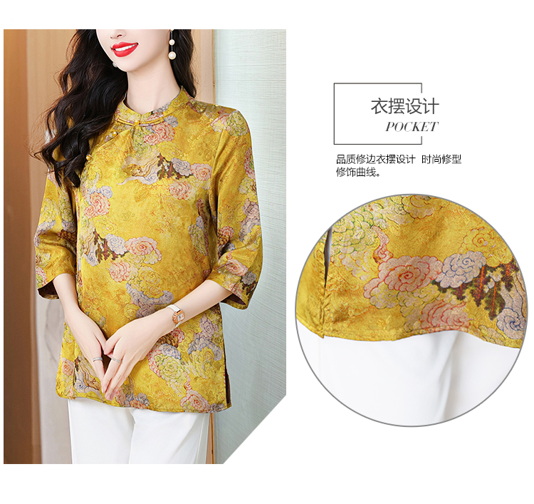 RY1191#实拍国风真丝衬衫中长款宽松大码妈妈春夏改良旗袍上衣新中式