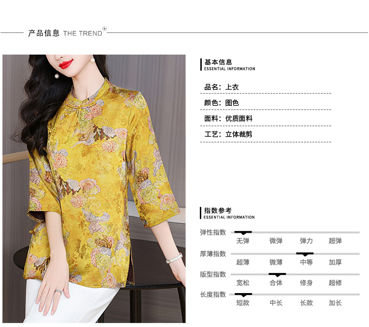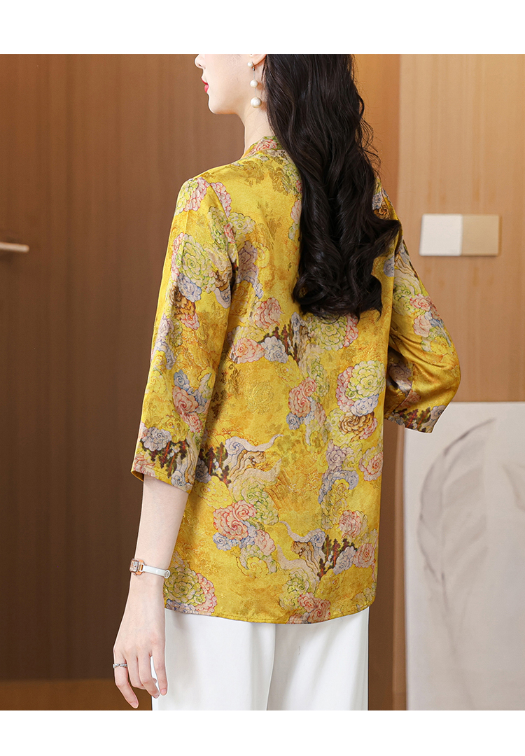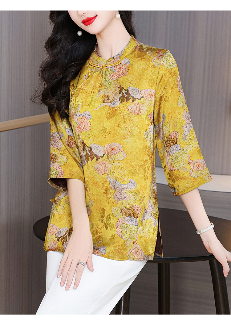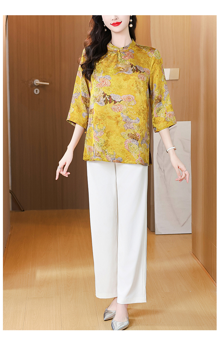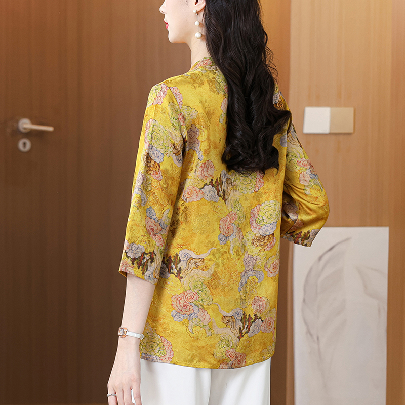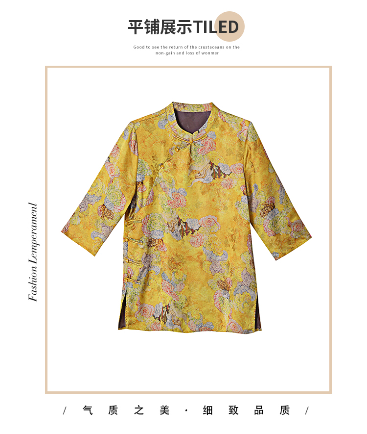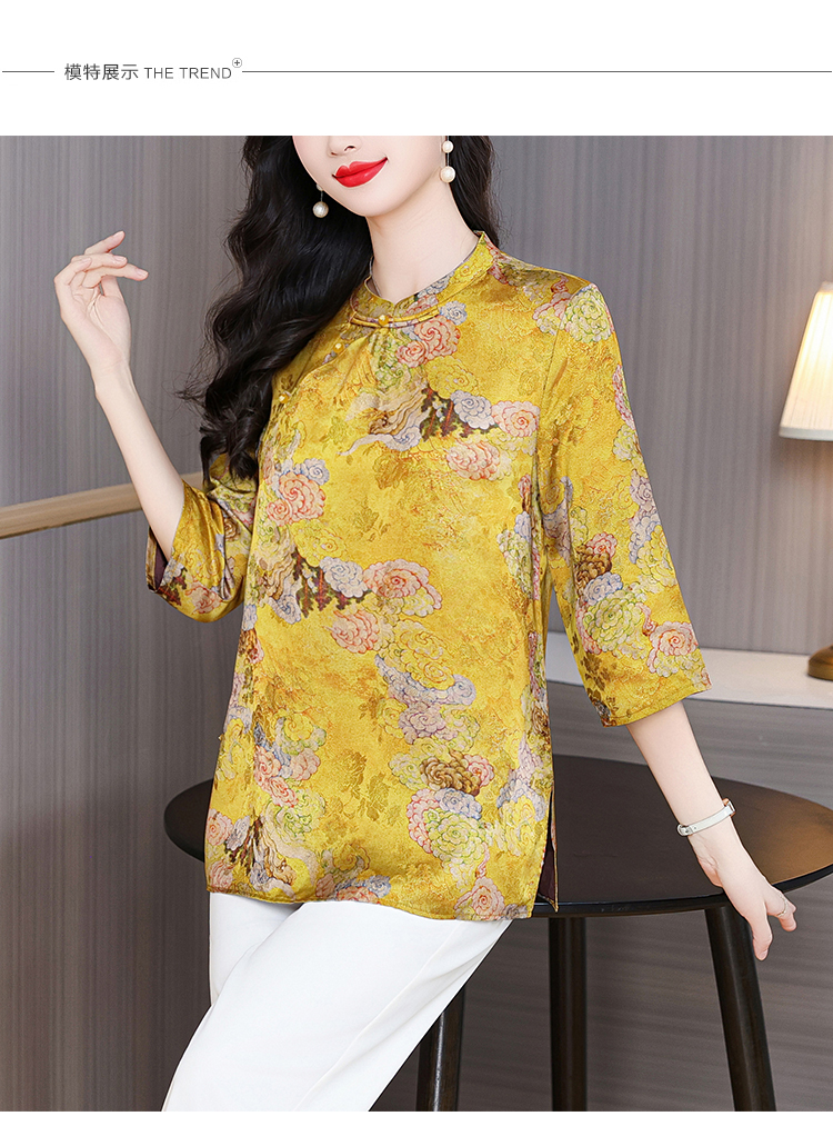 RY1191#实拍国风真丝衬衫中长款宽松大码妈妈春夏改良旗袍上衣新中式