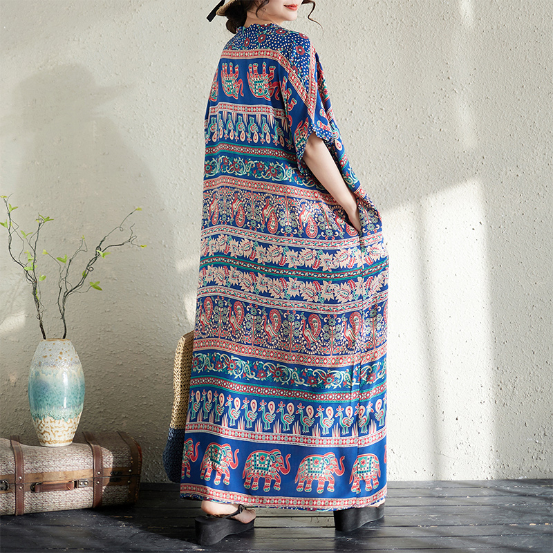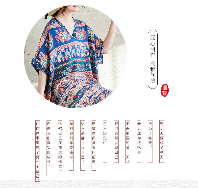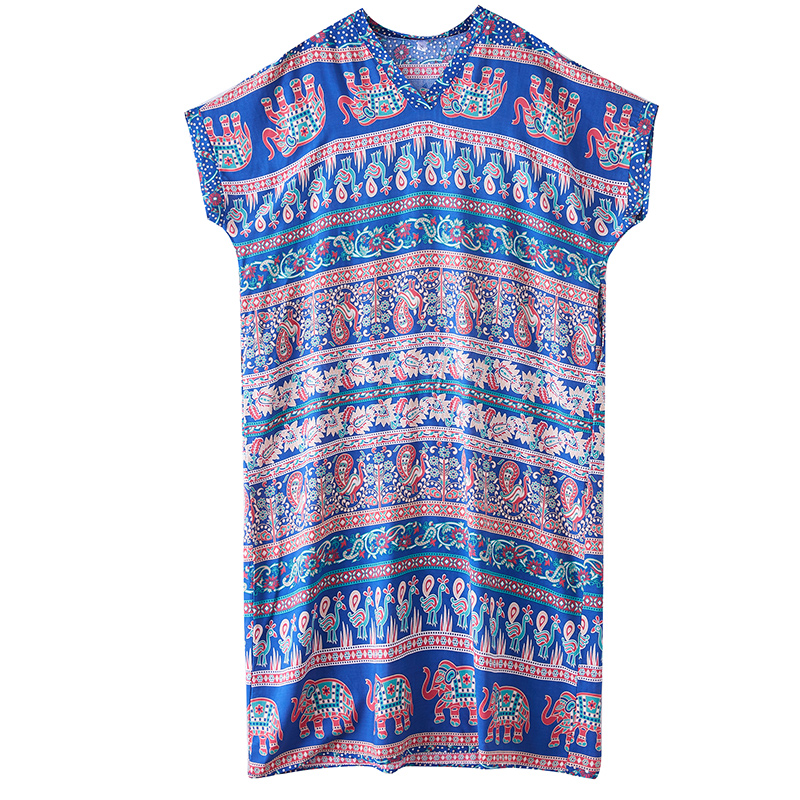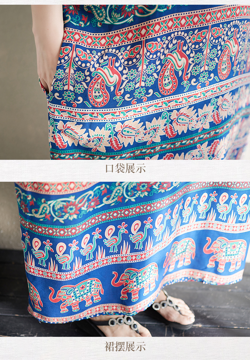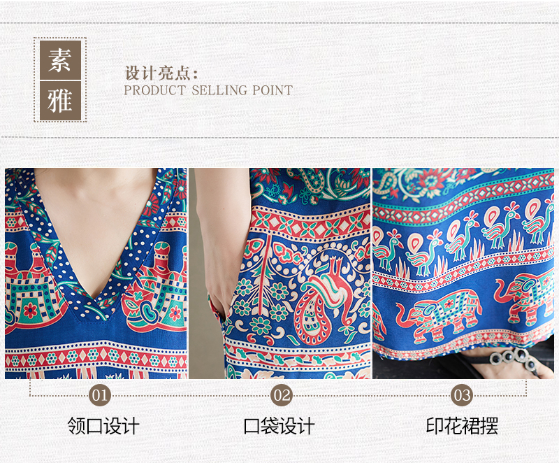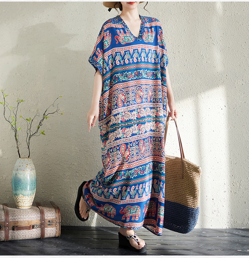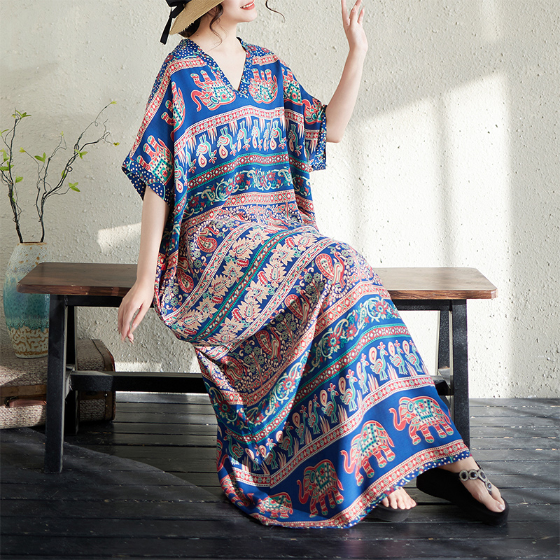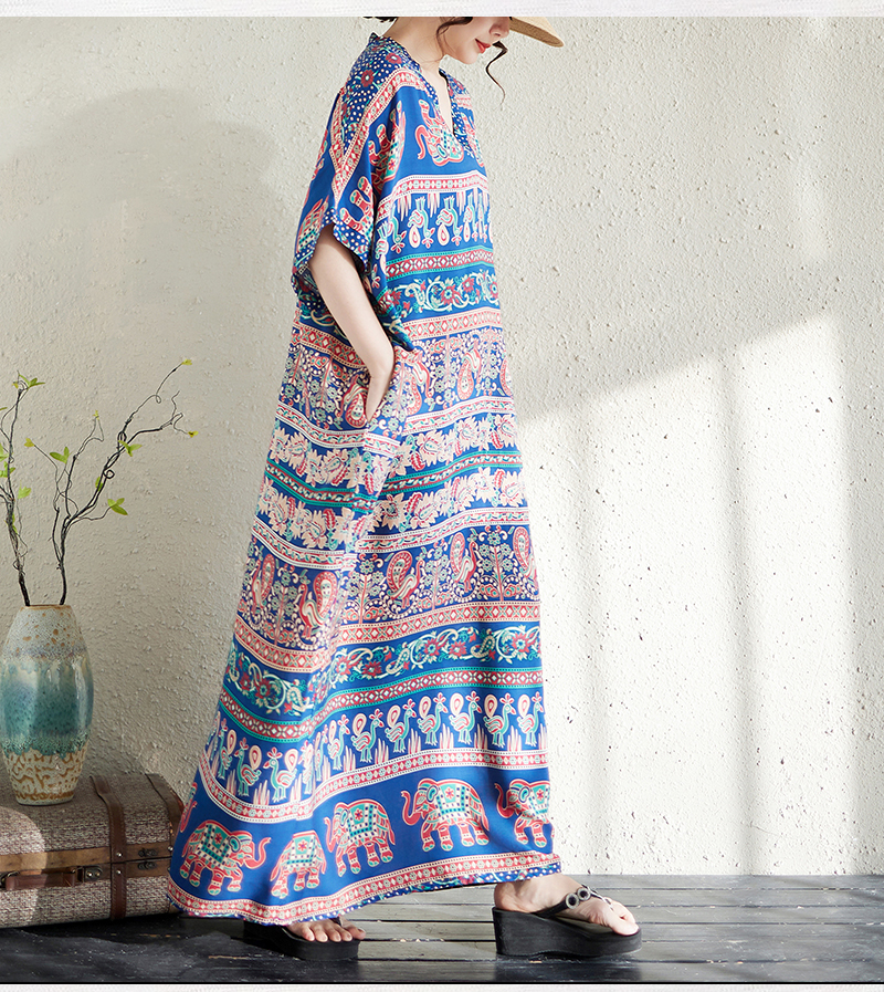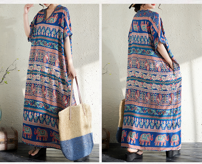 RY1196# 实拍2026夏季新款薄人棉印花v领宽松大码简约度假风长裙女沙滩裙