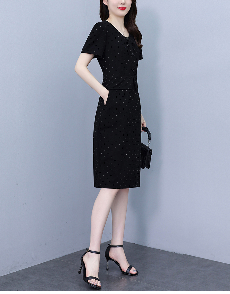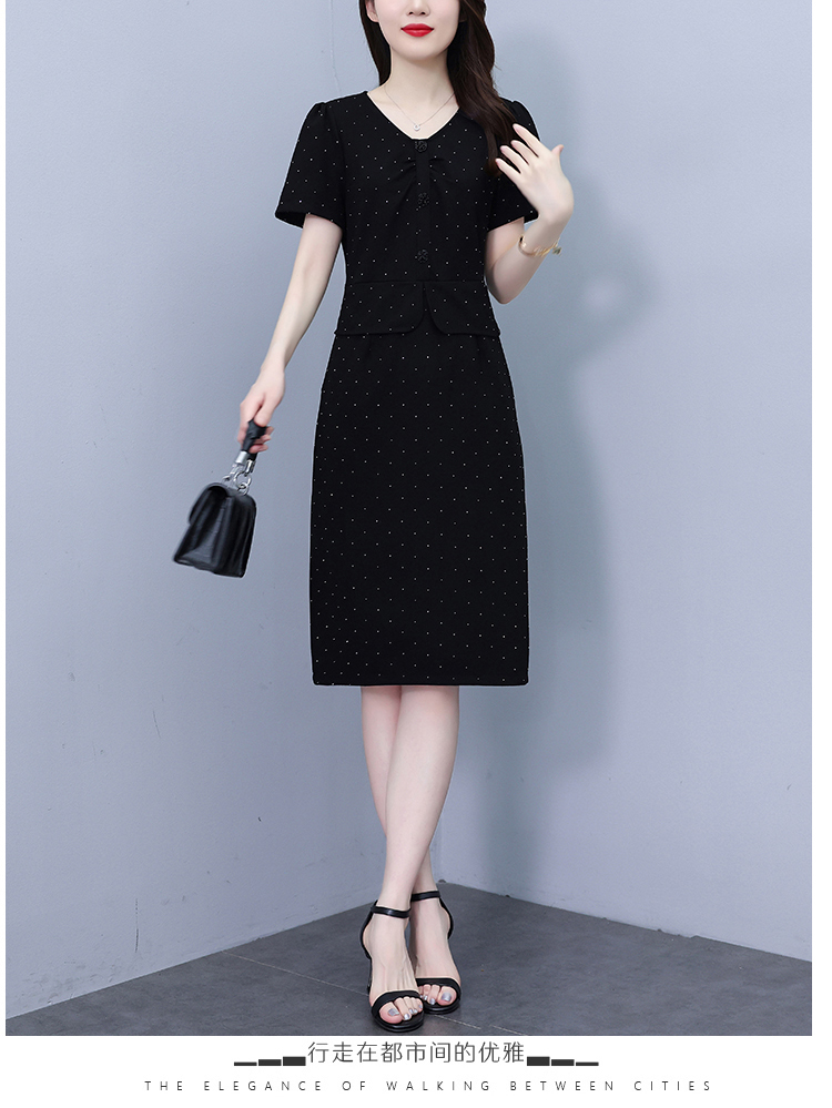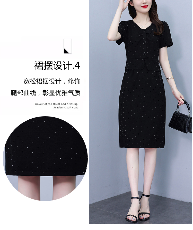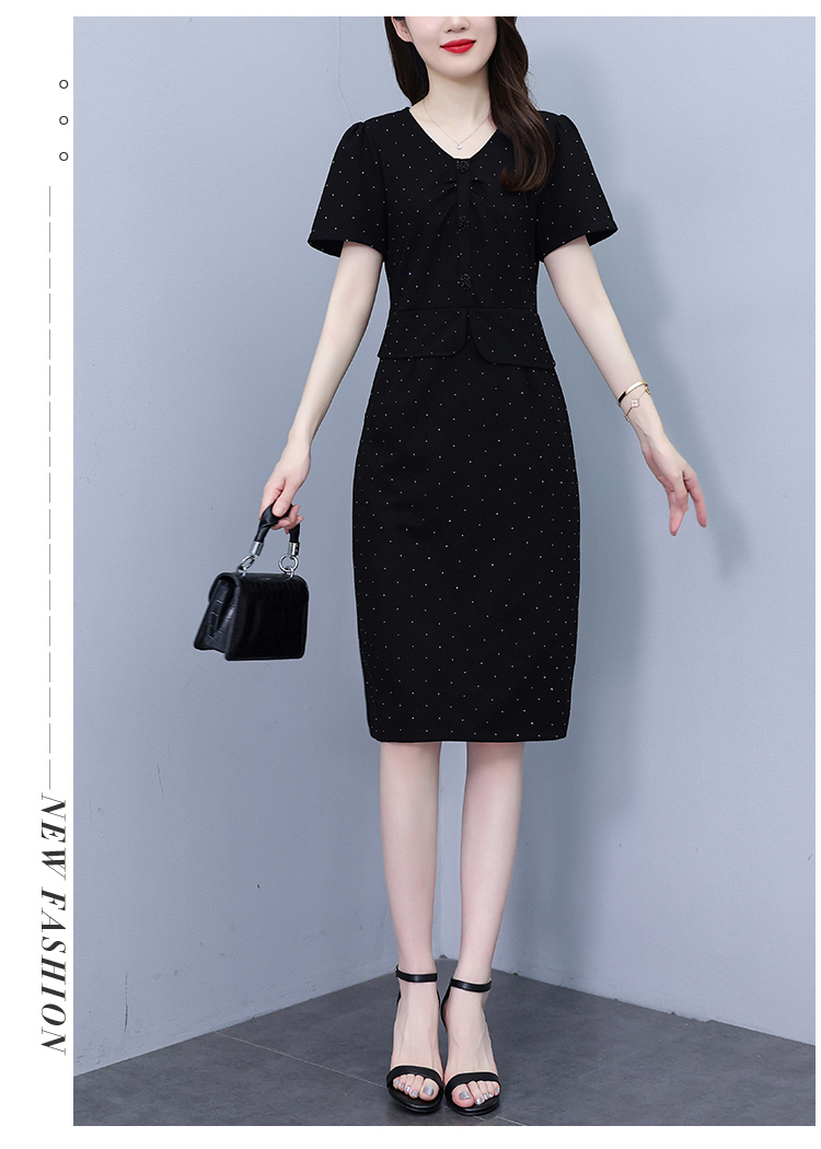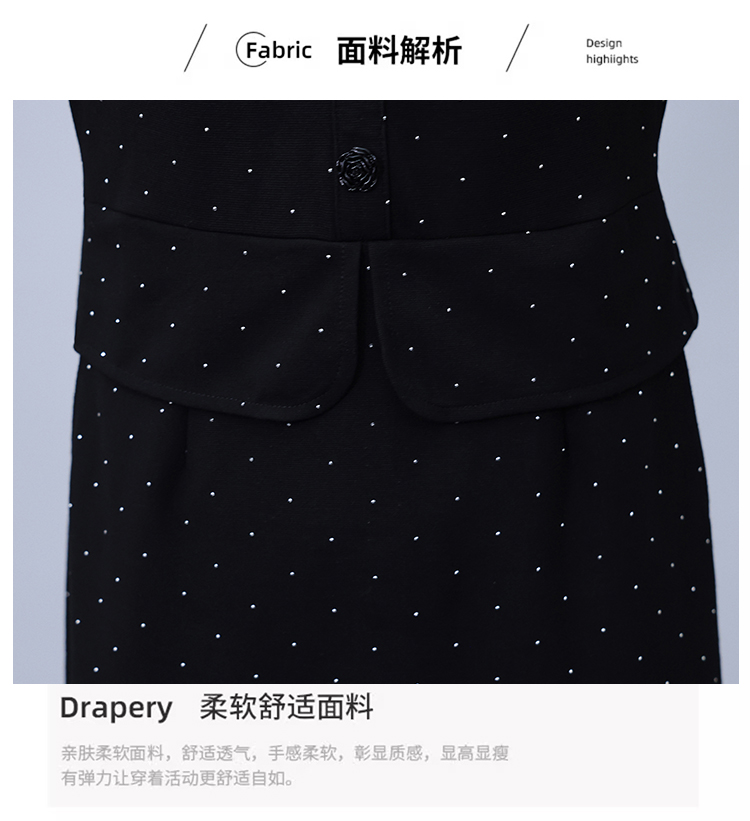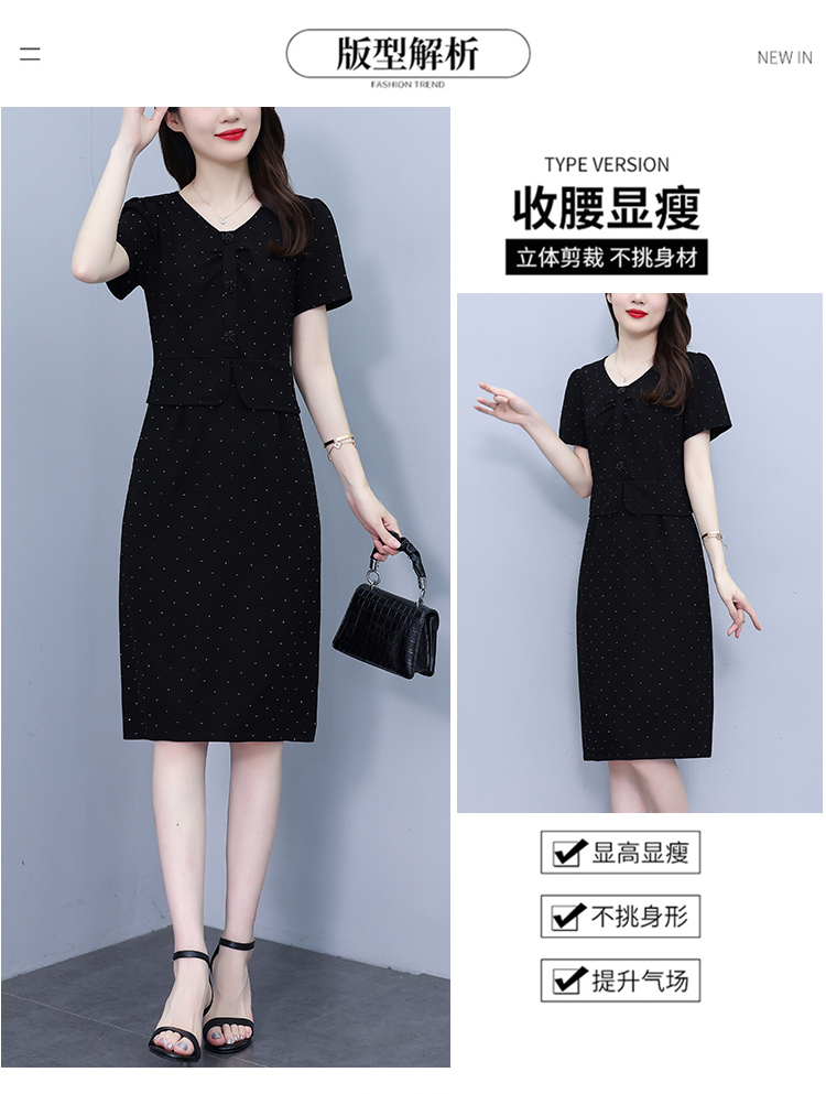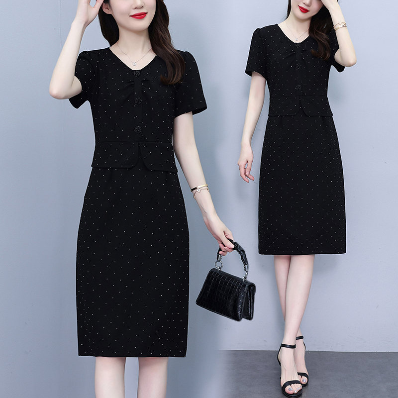 RY1198#夏季新款黑色精纺烫金修身花朵装饰显瘦遮肉大码连衣裙