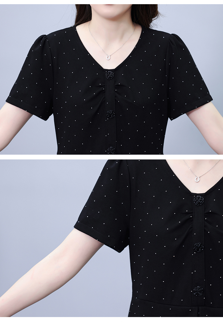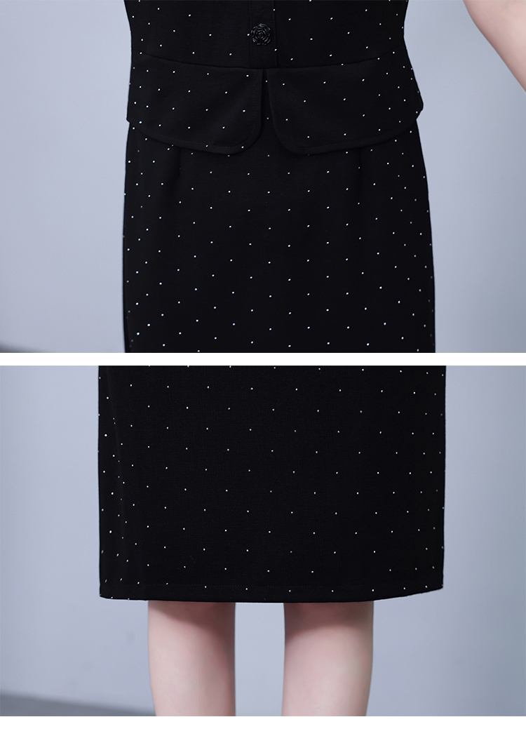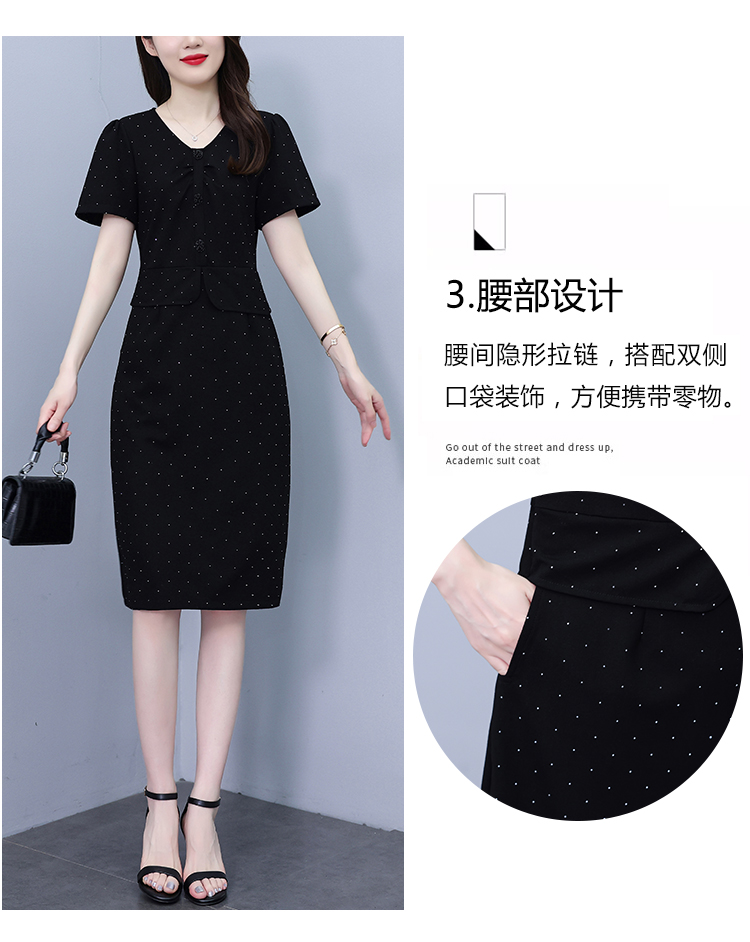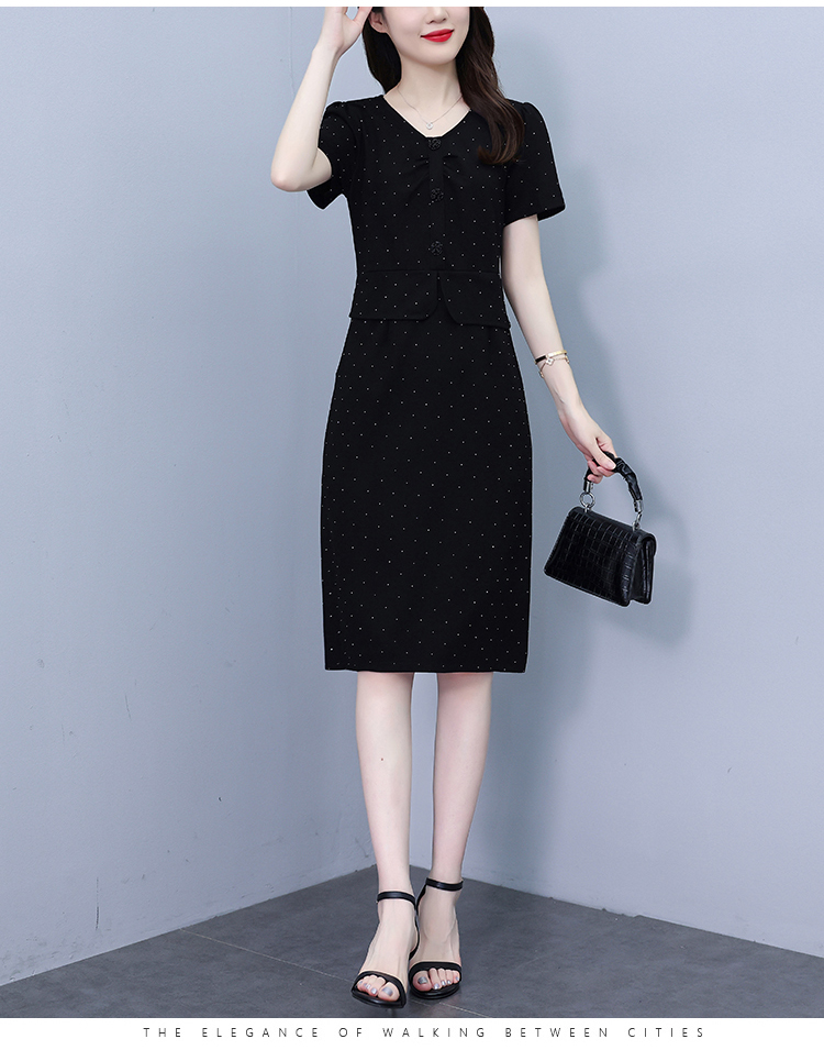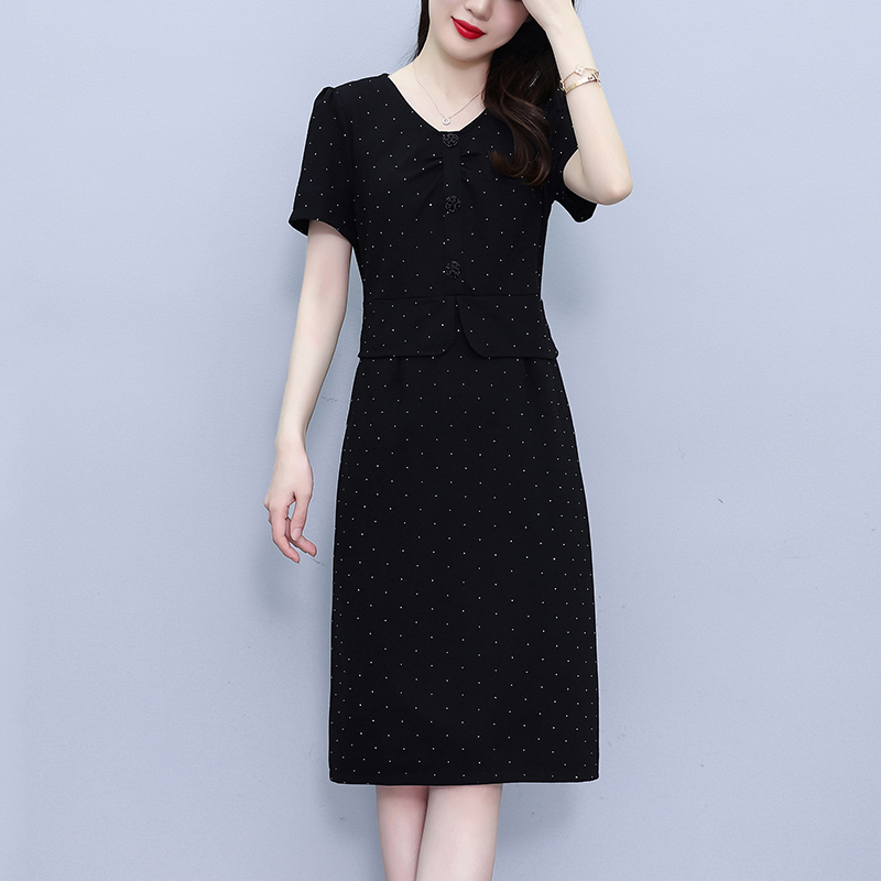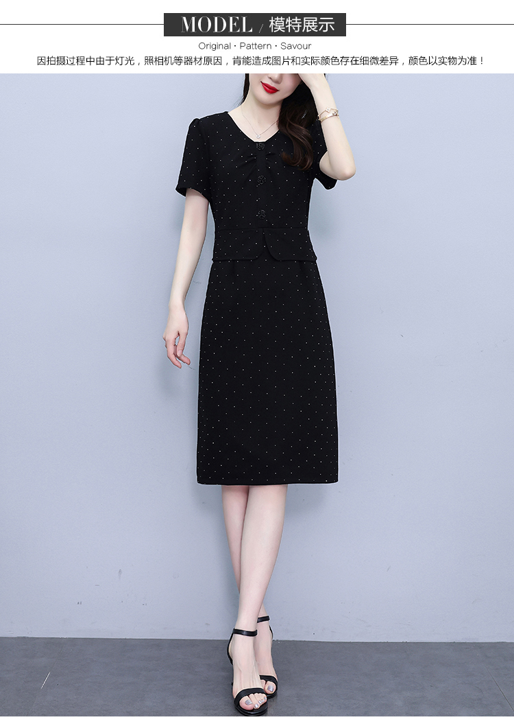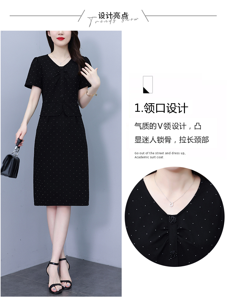 RY1198#夏季新款黑色精纺烫金修身花朵装饰显瘦遮肉大码连衣裙