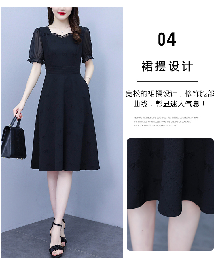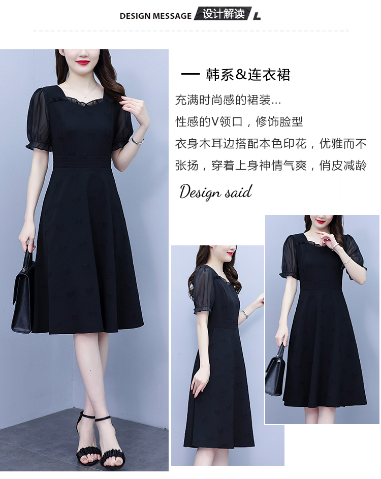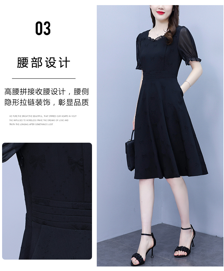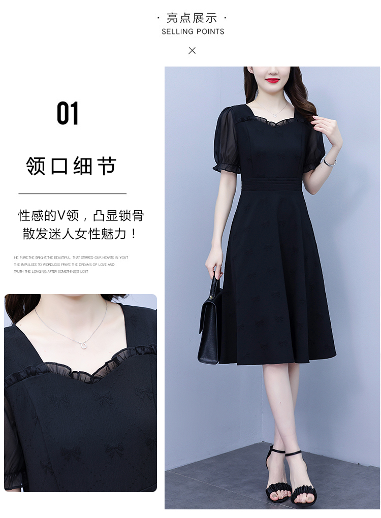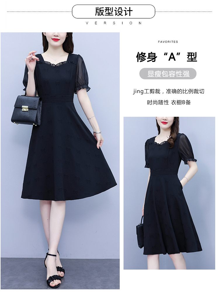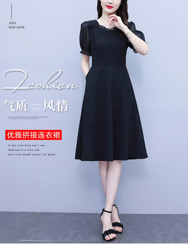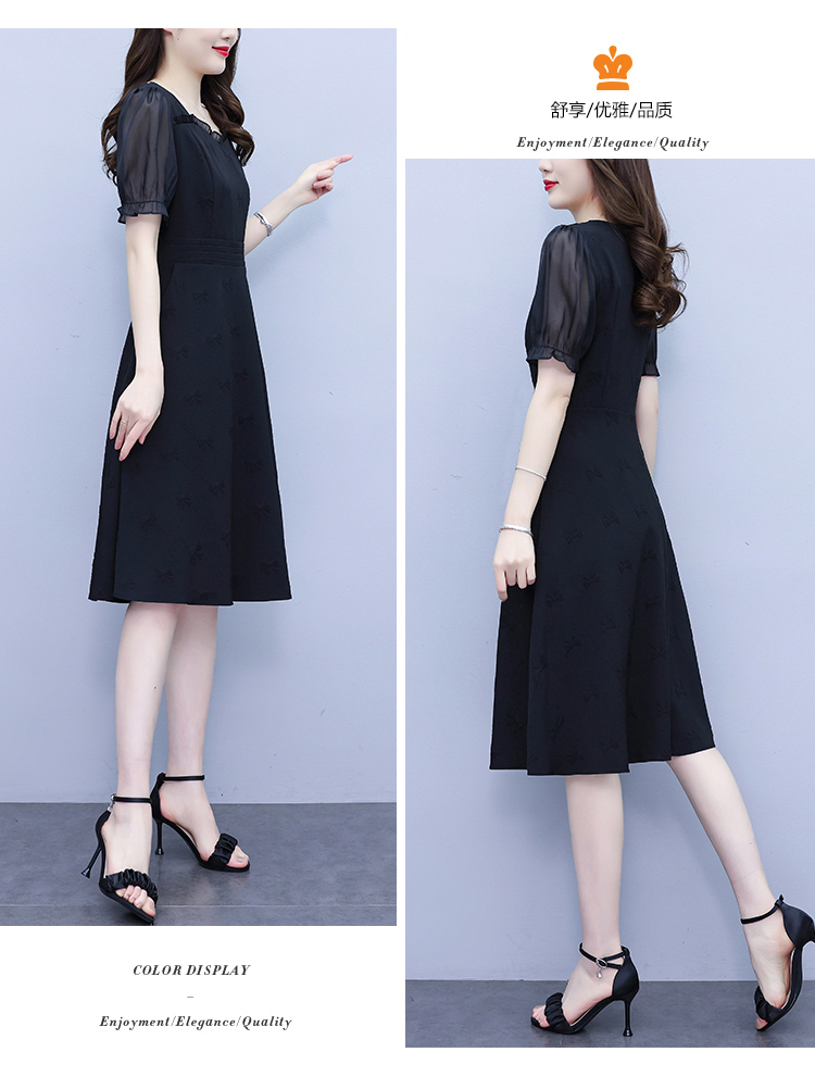 RY1209# 夏季新款大码女装连衣裙拼接优雅收腰中长款黑色裙子