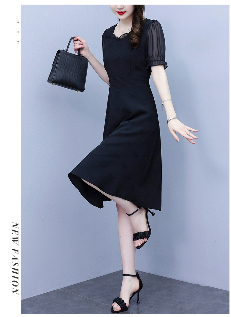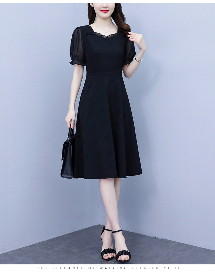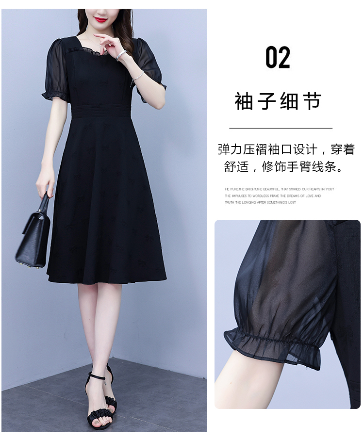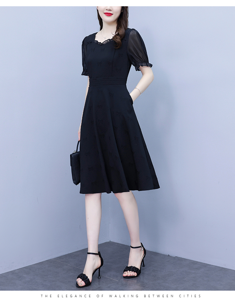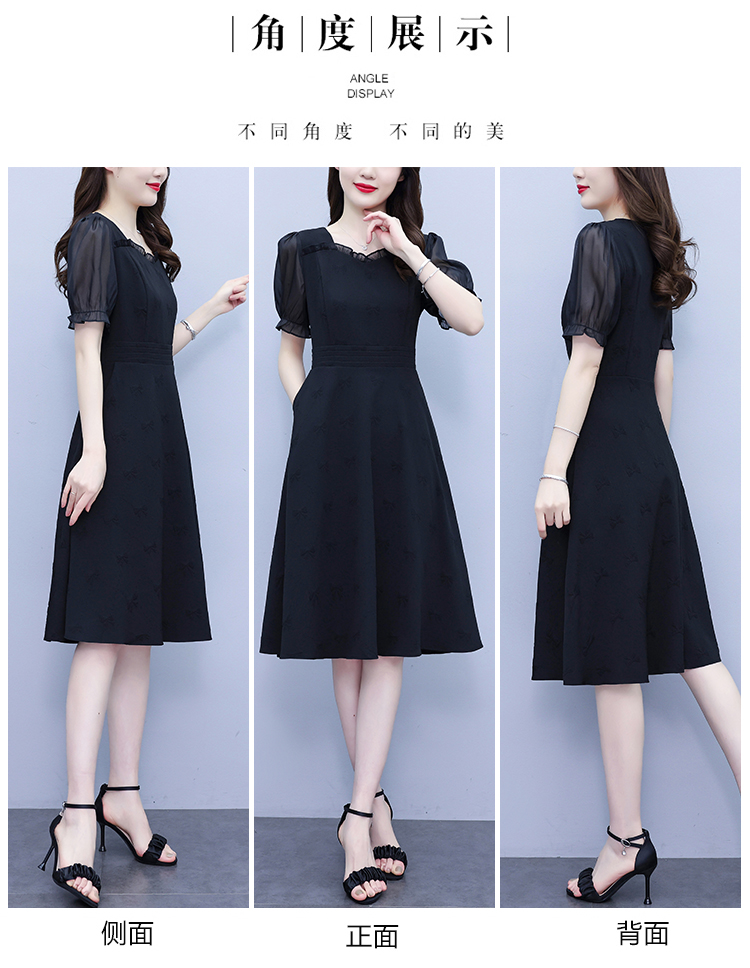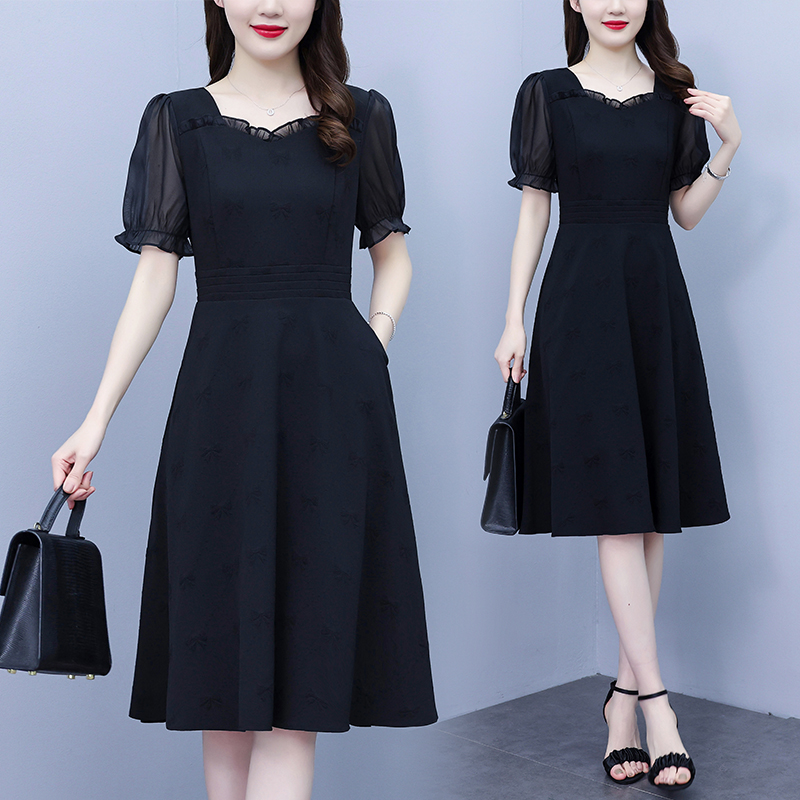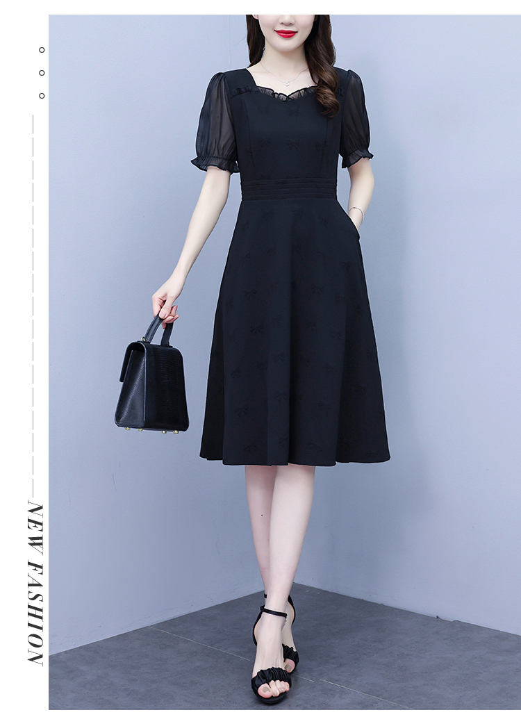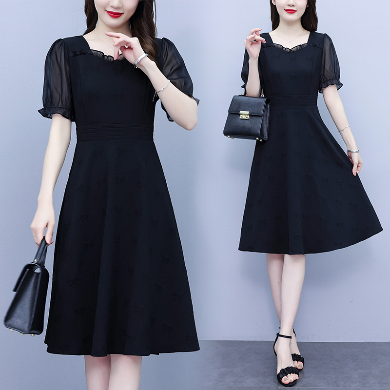 RY1209# 夏季新款大码女装连衣裙拼接优雅收腰中长款黑色裙子