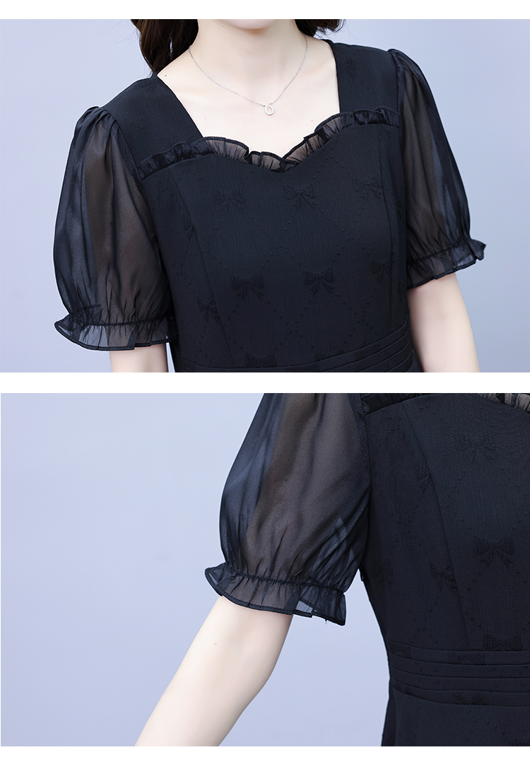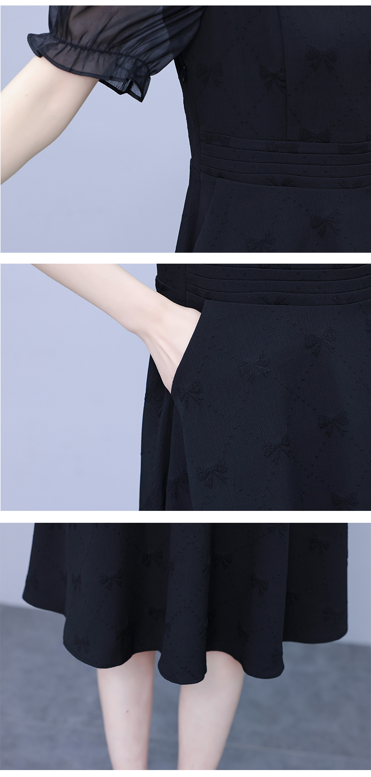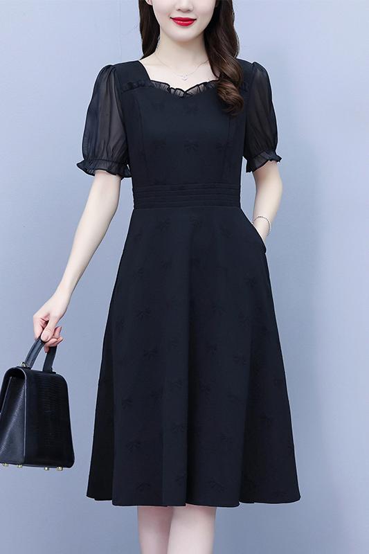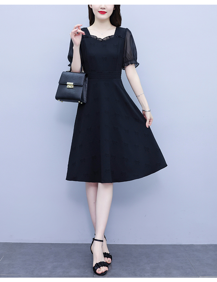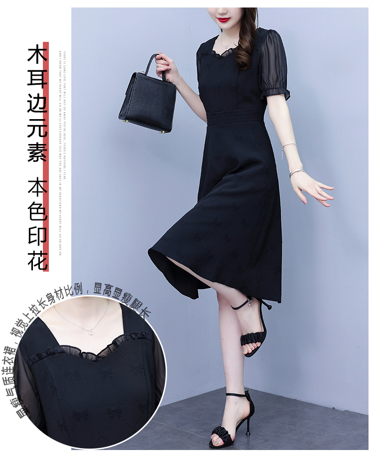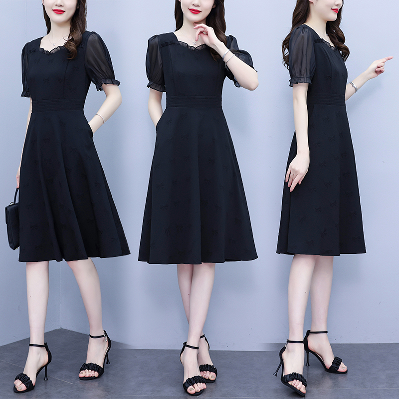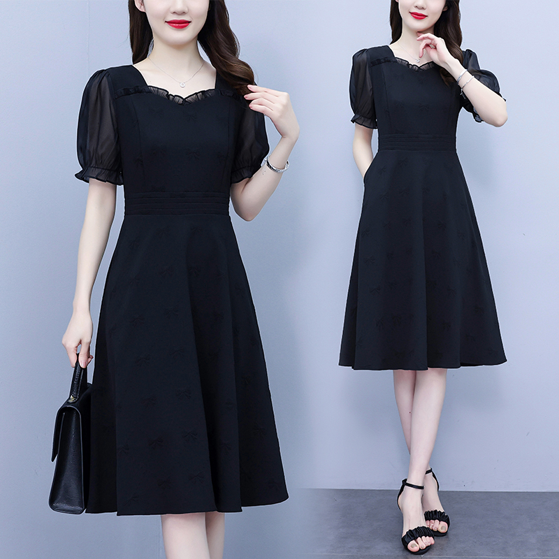 RY1209# 夏季新款大码女装连衣裙拼接优雅收腰中长款黑色裙子