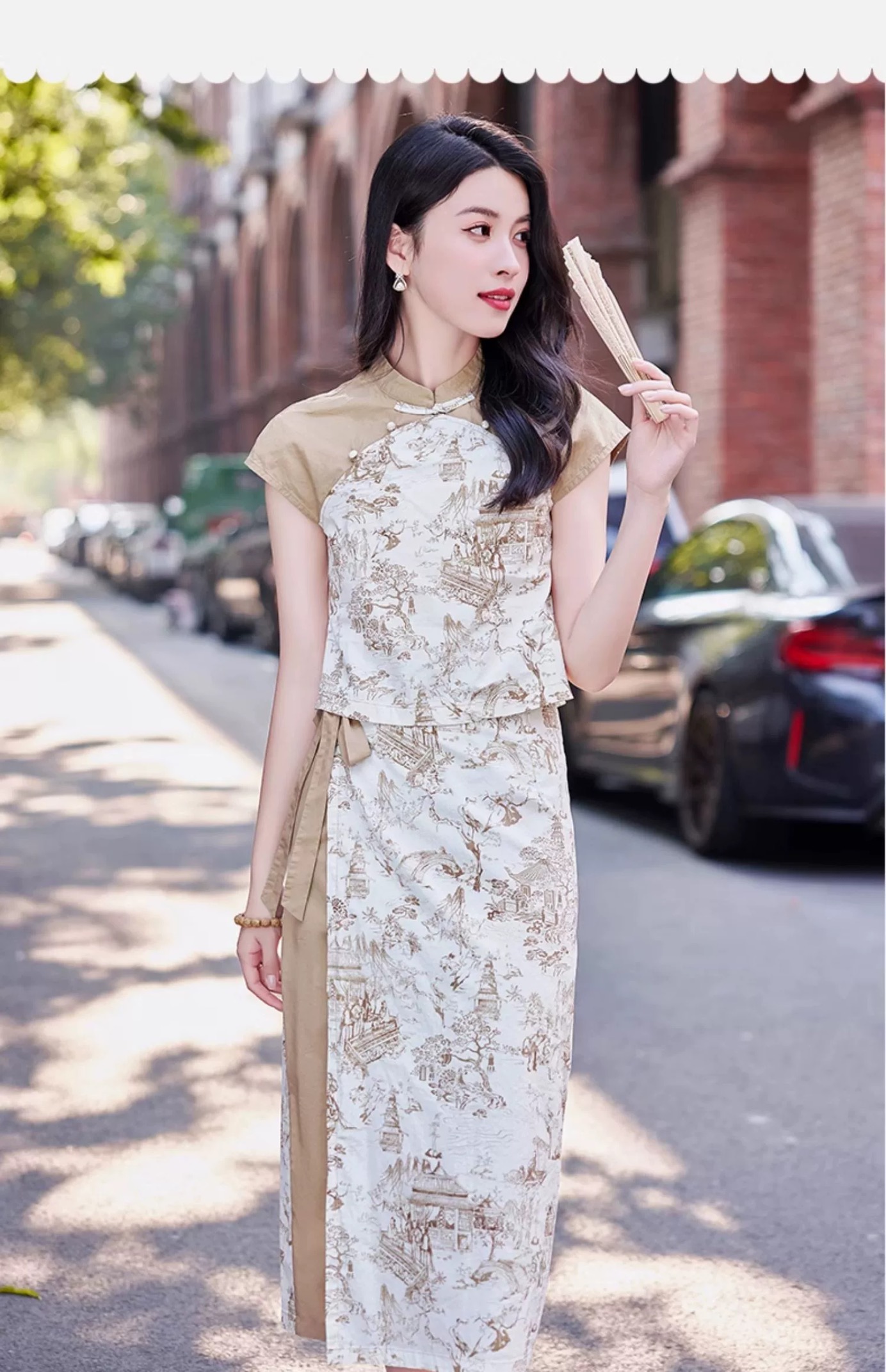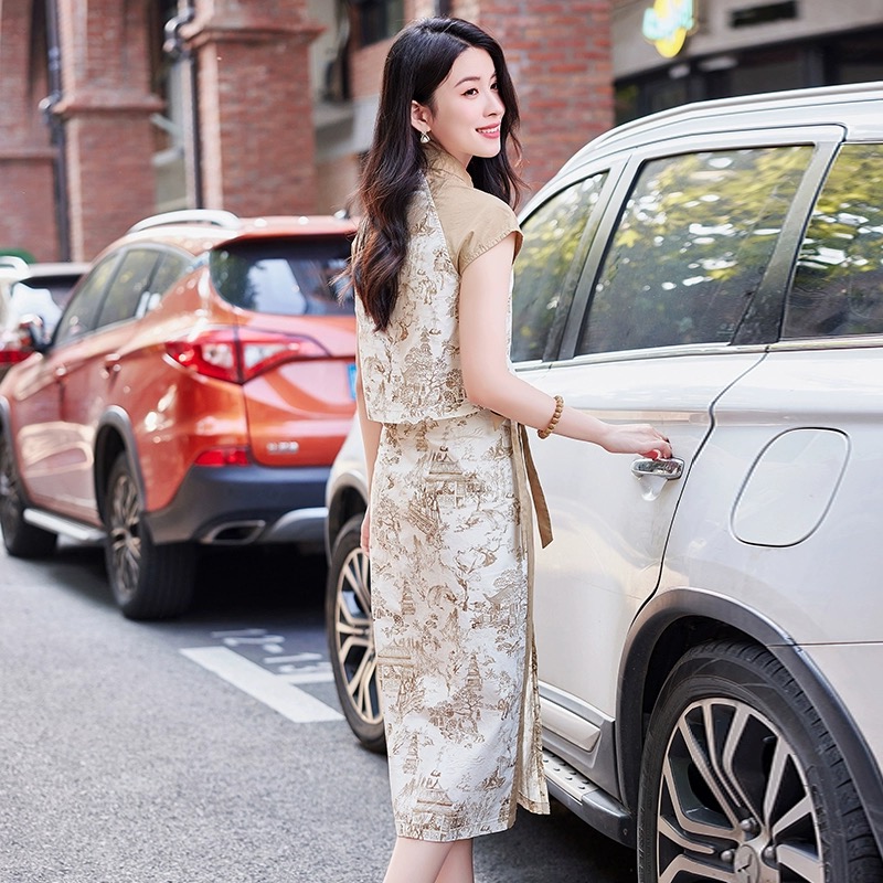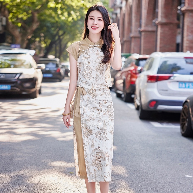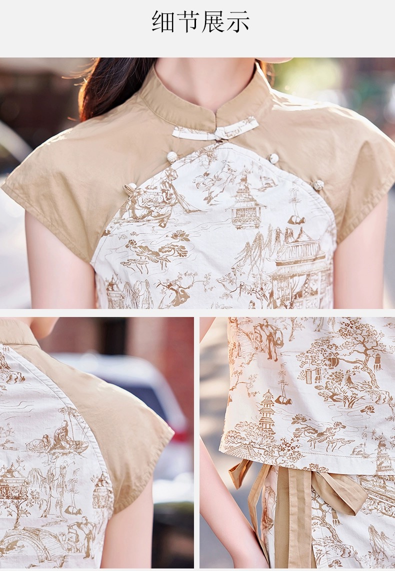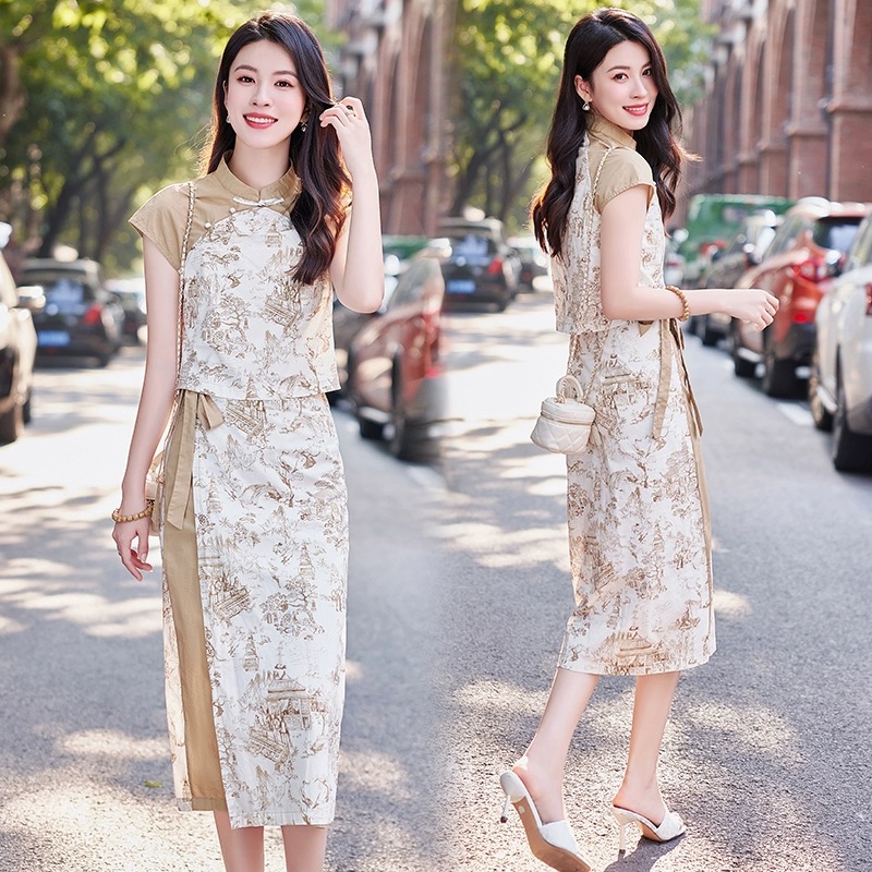 RY1216# 新中式复古印花短袖衬衫套装女2026夏季新款大方精致套裙两件套潮
