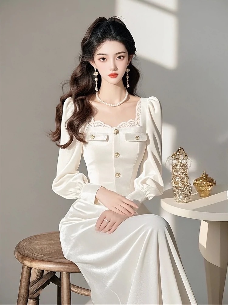 RY1217# 2026春法式小香风白色丝绒连衣裙气质高级感漂亮独特年会礼服长裙