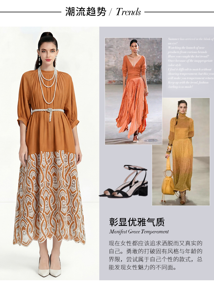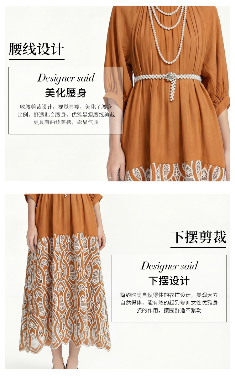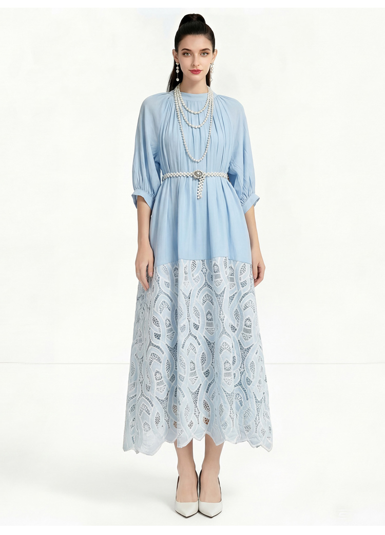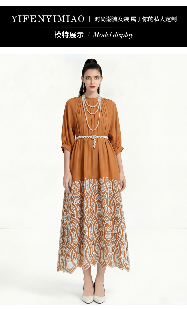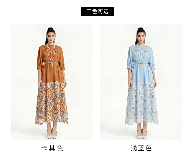 RY1223# 重工刺绣镂空水溶蕾丝拼接连衣裙