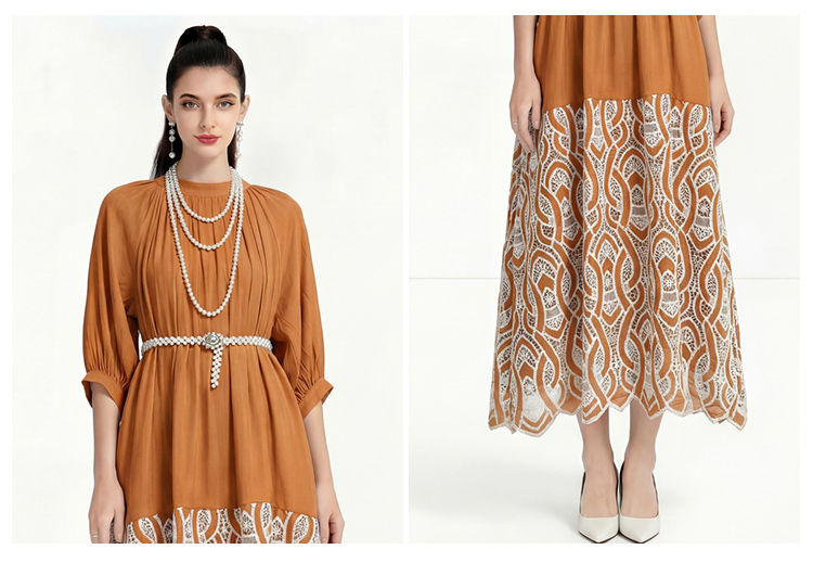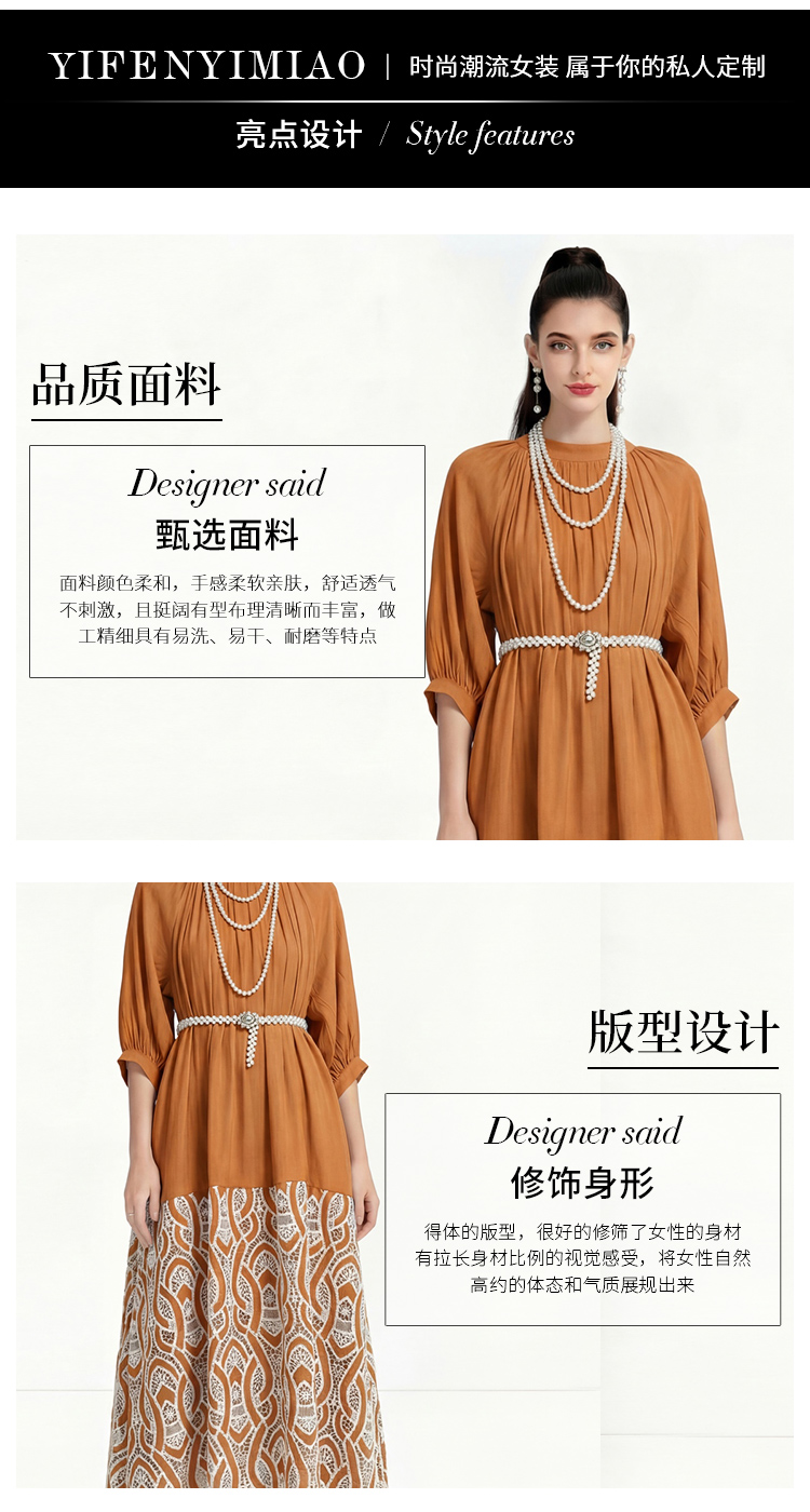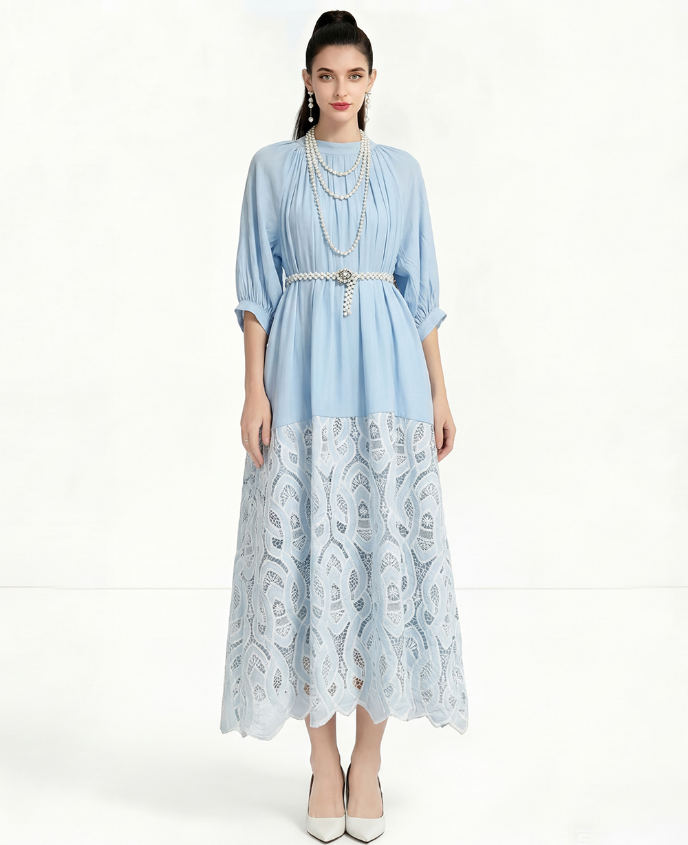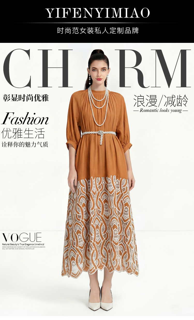 RY1223# 重工刺绣镂空水溶蕾丝拼接连衣裙