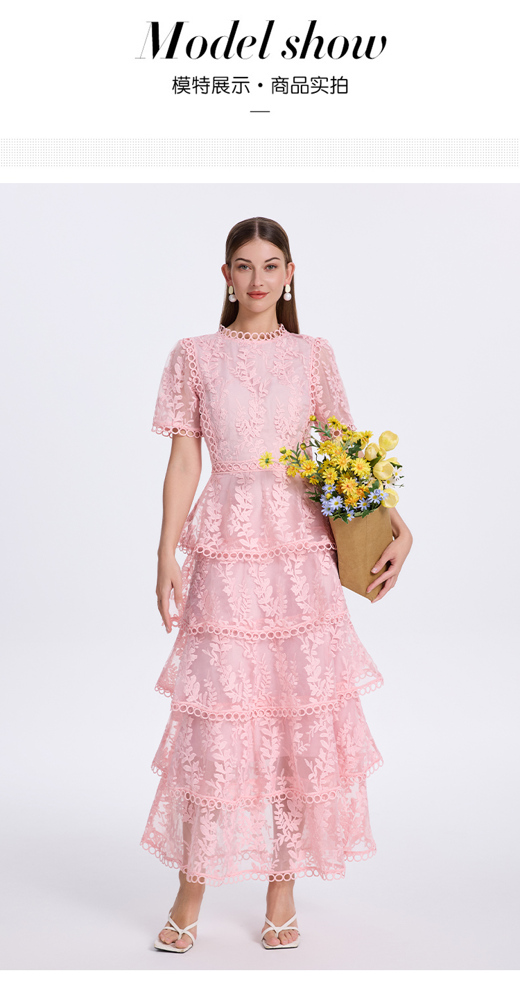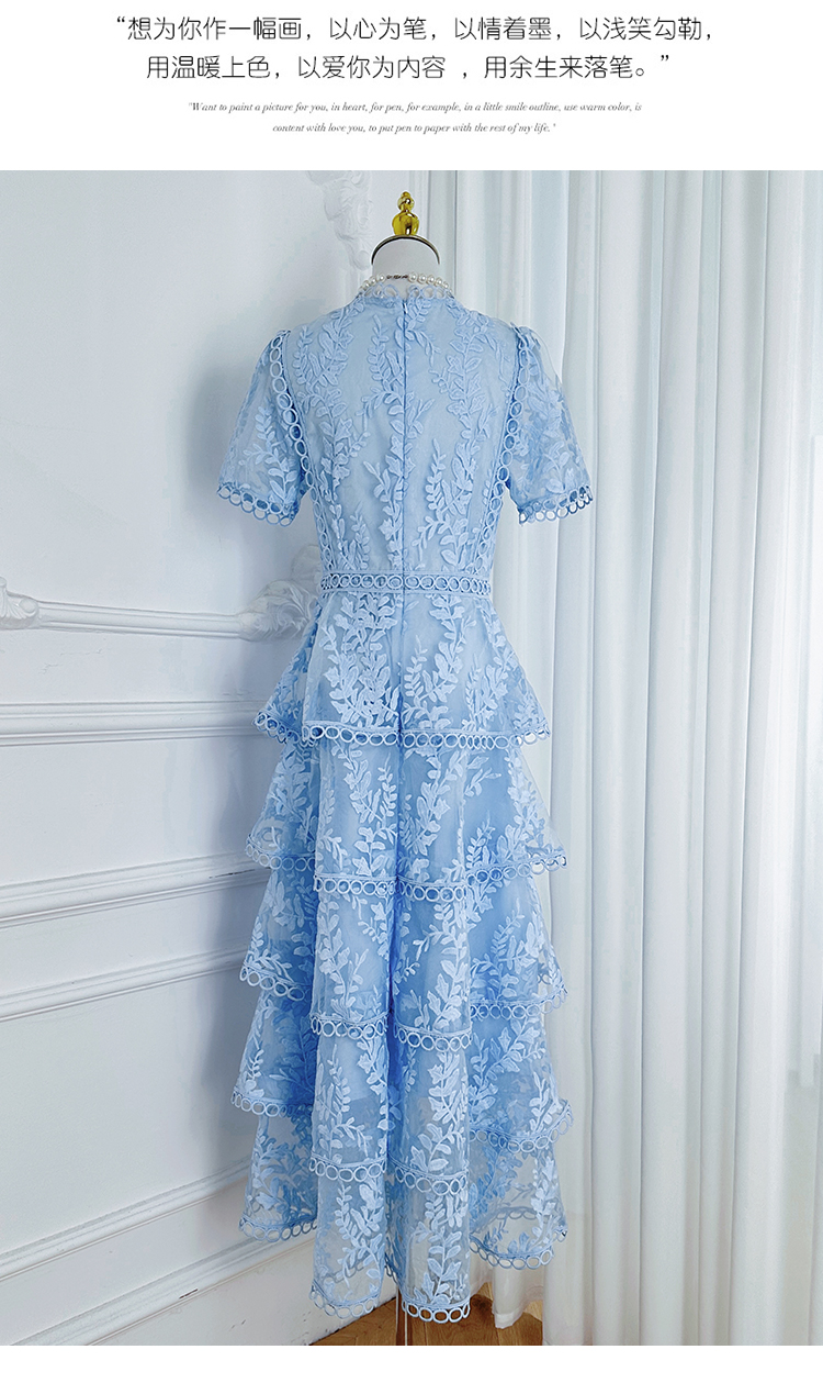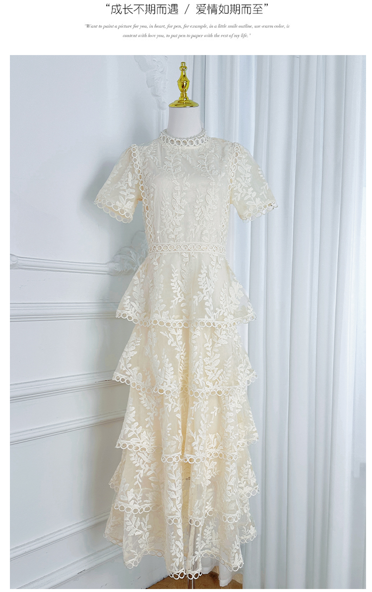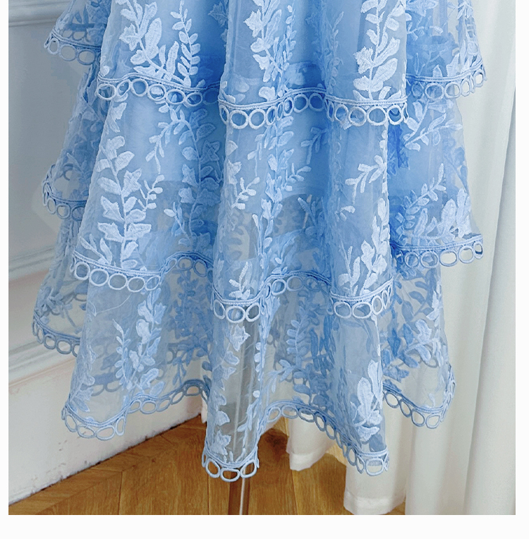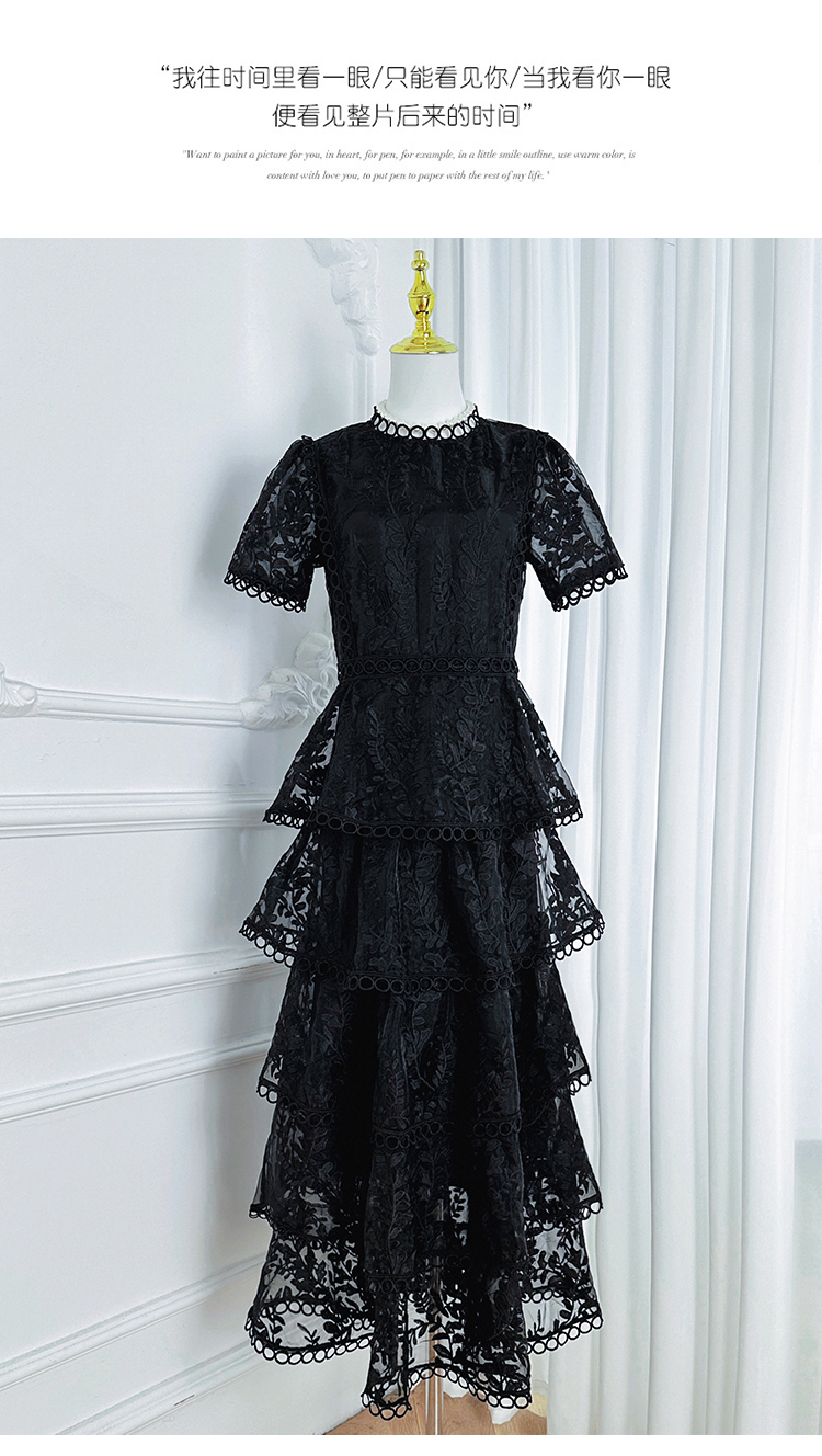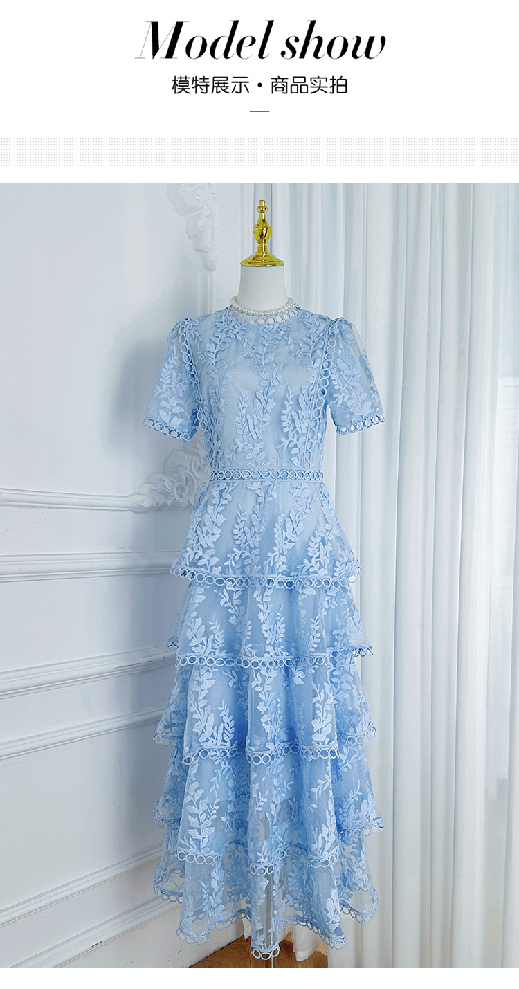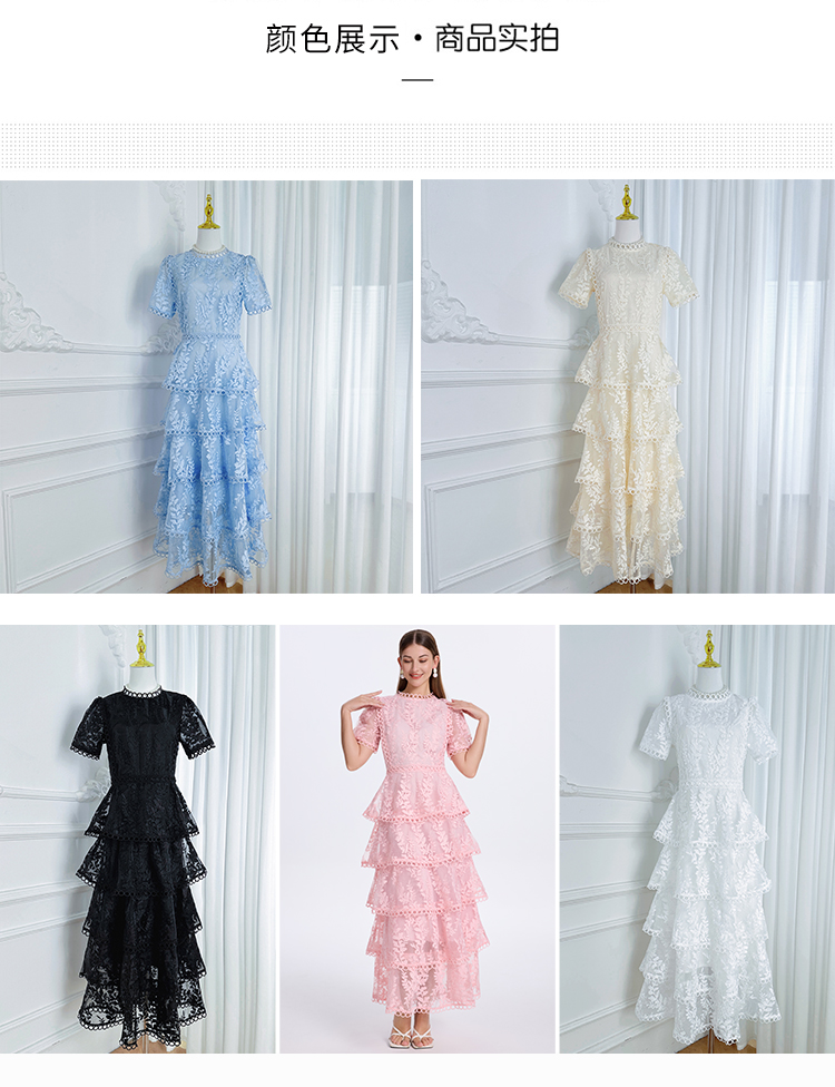 RY1245# 实拍专柜精品重工绣花拼接花边收腰气质宫廷风蛋糕裙