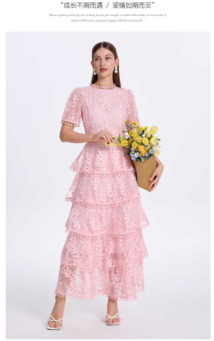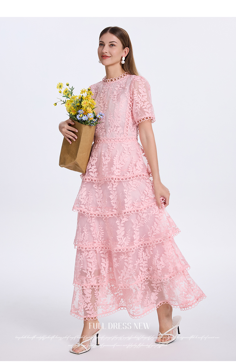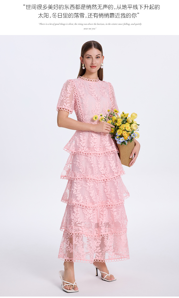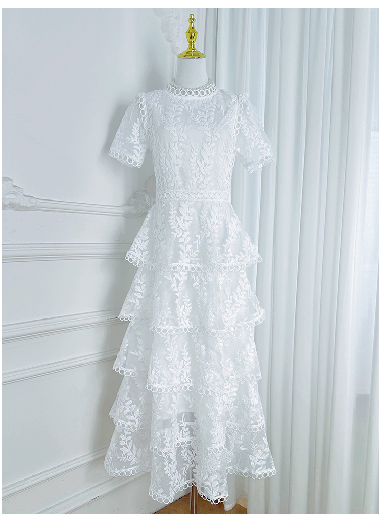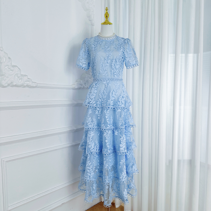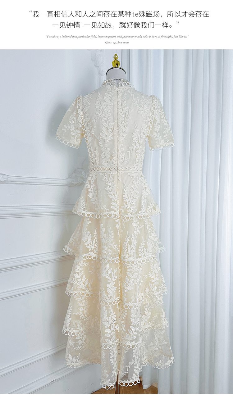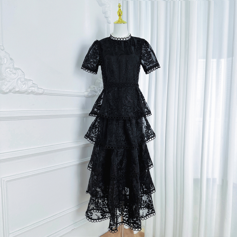 RY1245# 实拍专柜精品重工绣花拼接花边收腰气质宫廷风蛋糕裙