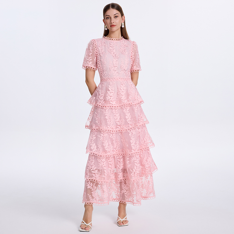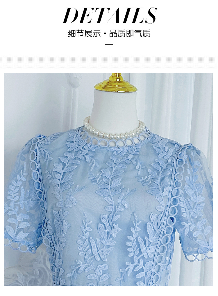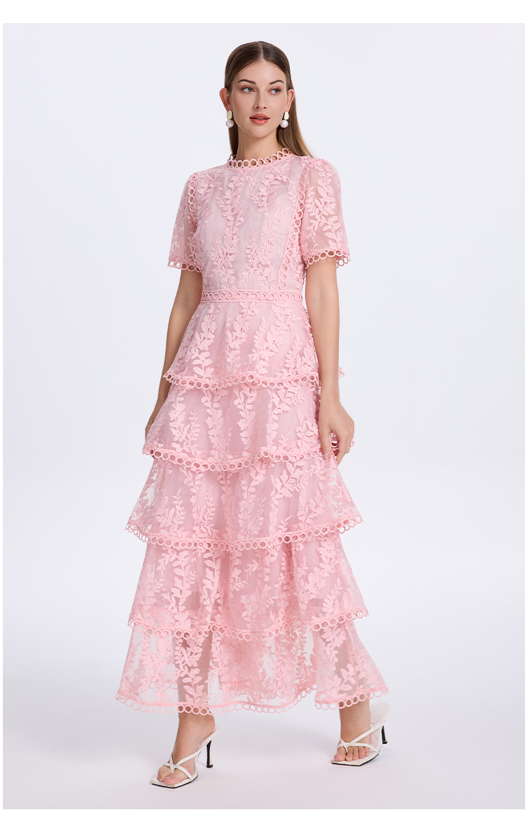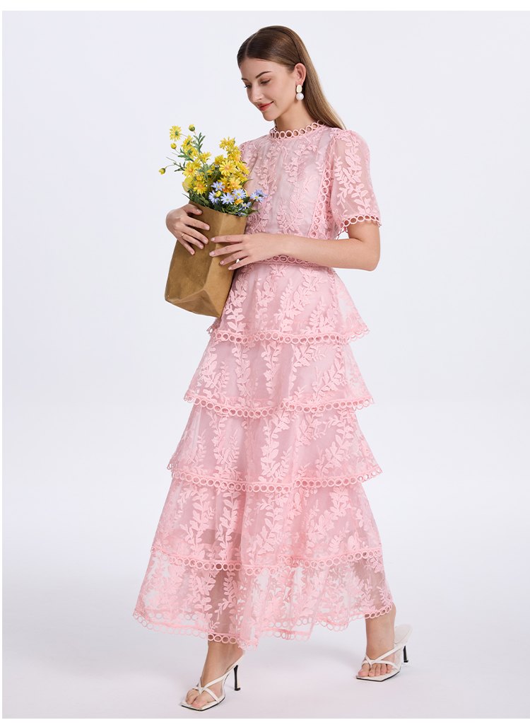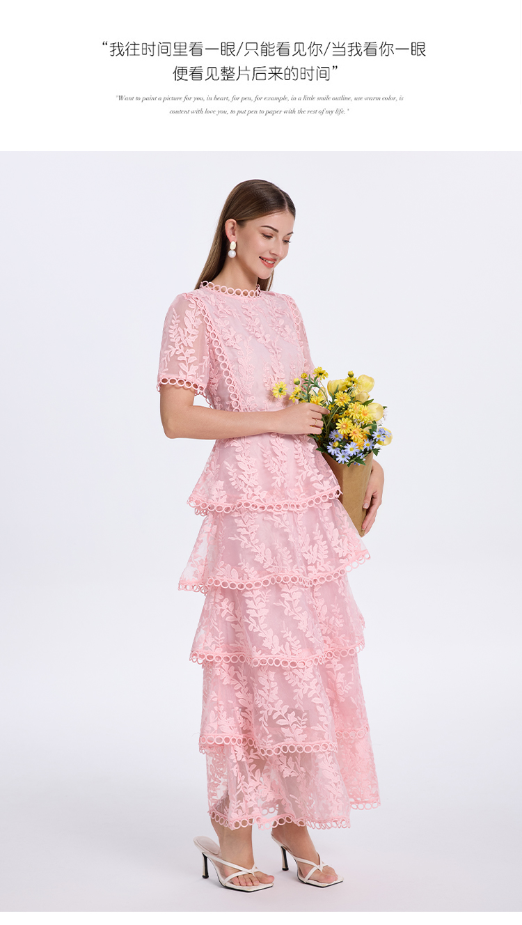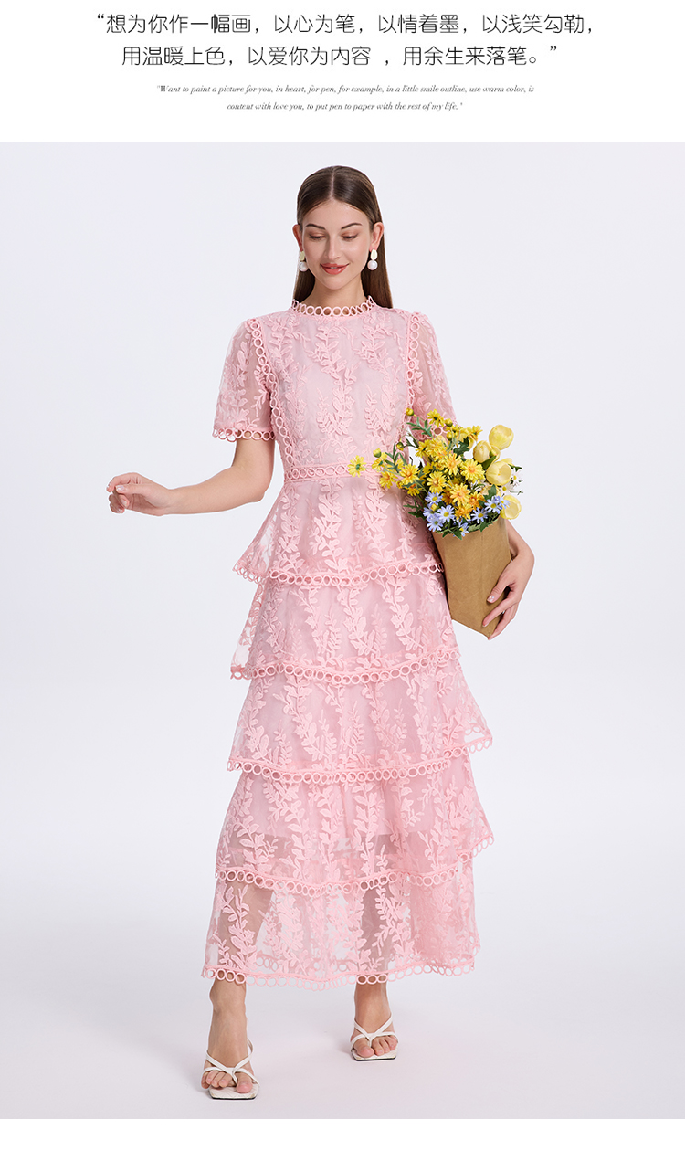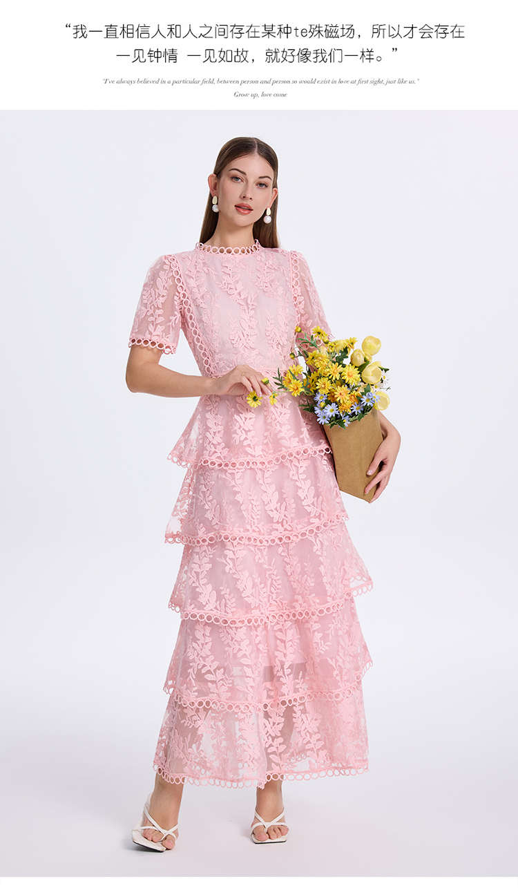 RY1245# 实拍专柜精品重工绣花拼接花边收腰气质宫廷风蛋糕裙