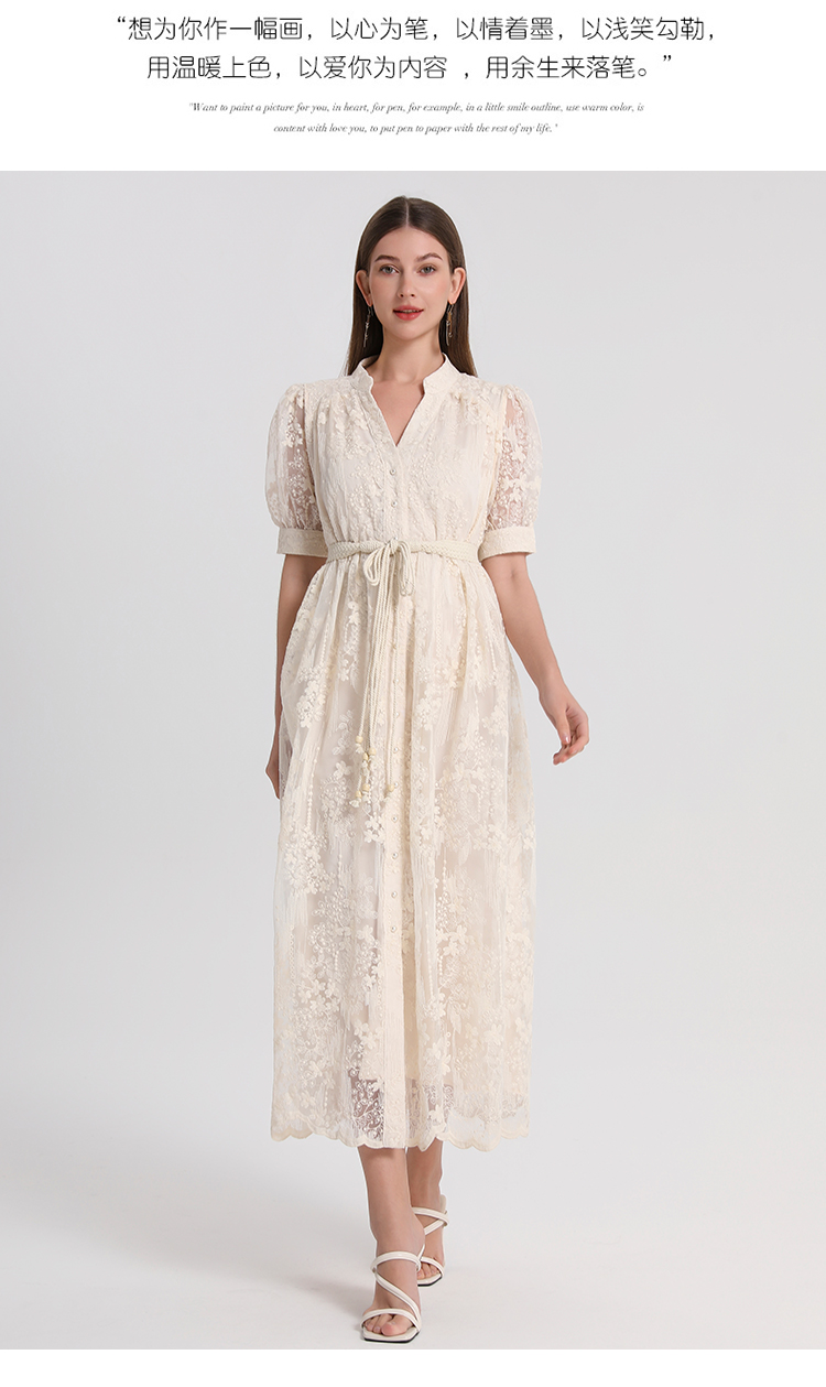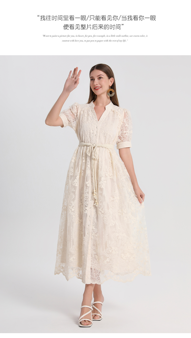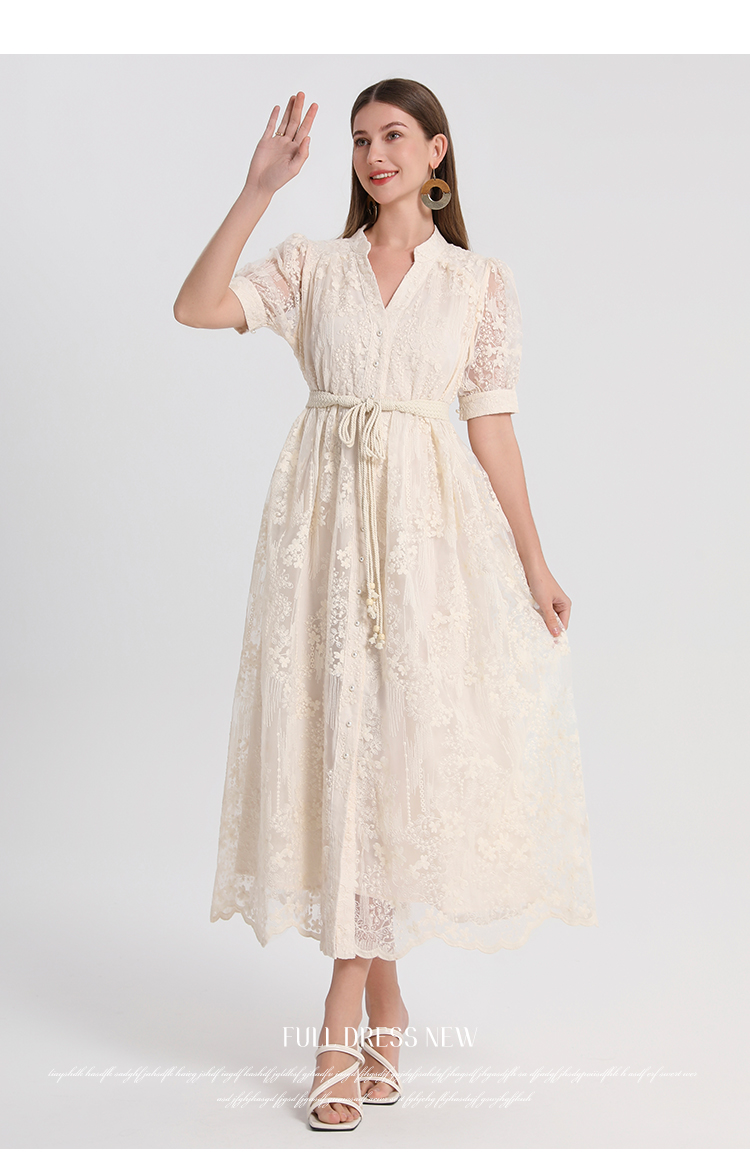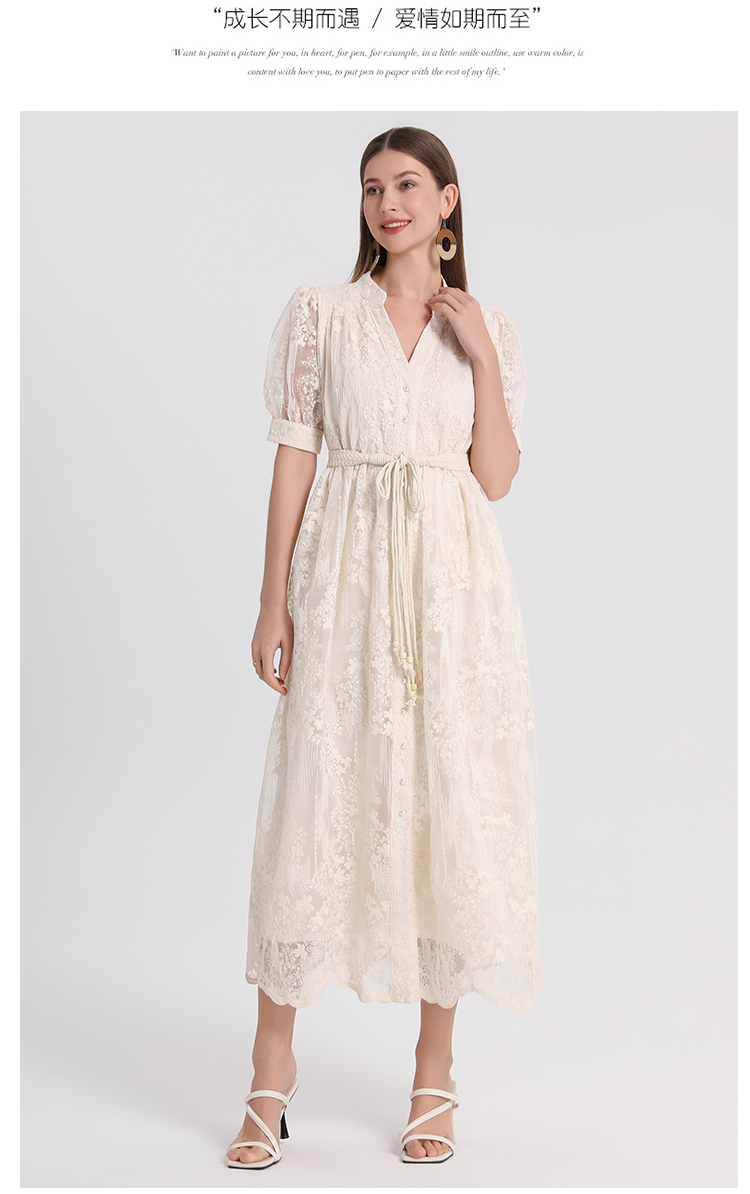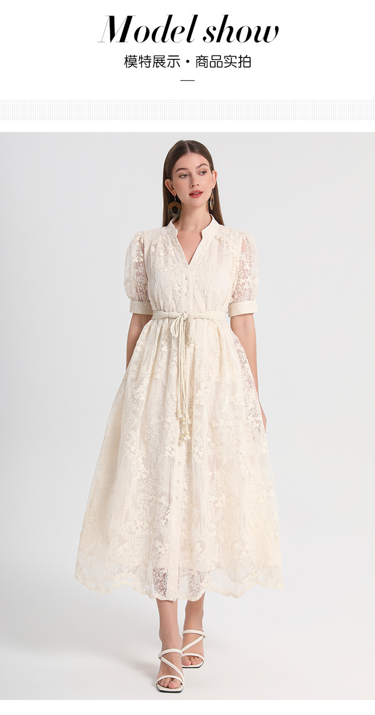 RY1246# 实拍精品高端法式夏季收腰重工刺绣V领多色气质连衣裙