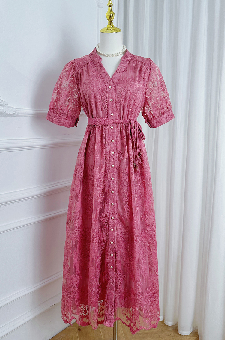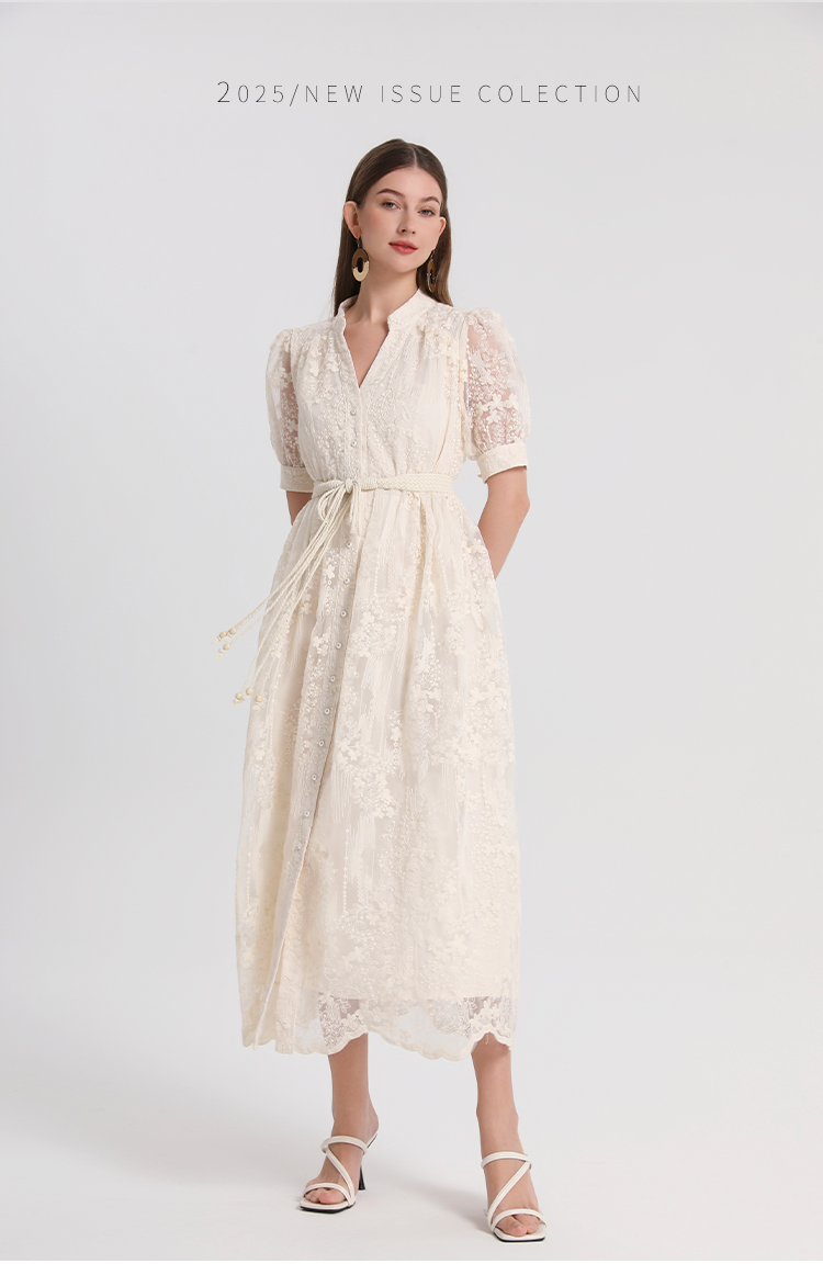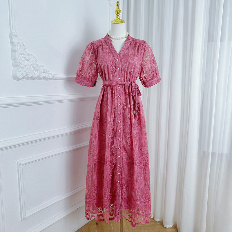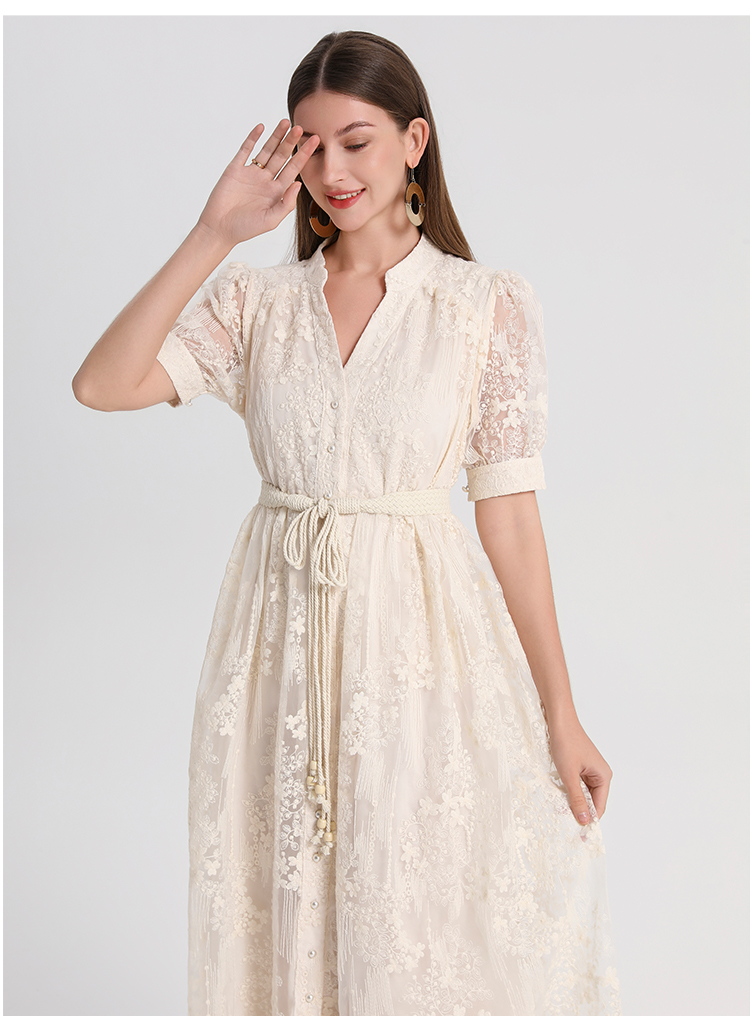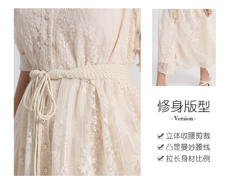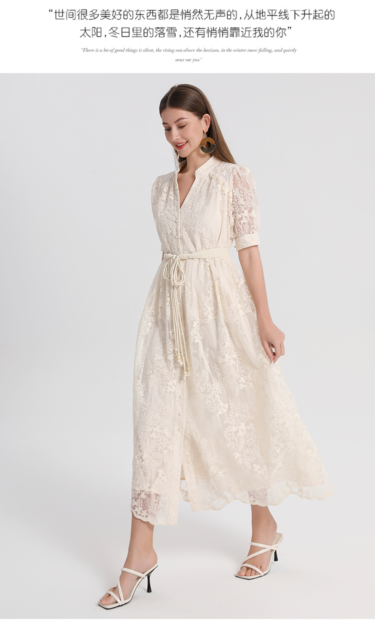 RY1246# 实拍精品高端法式夏季收腰重工刺绣V领多色气质连衣裙