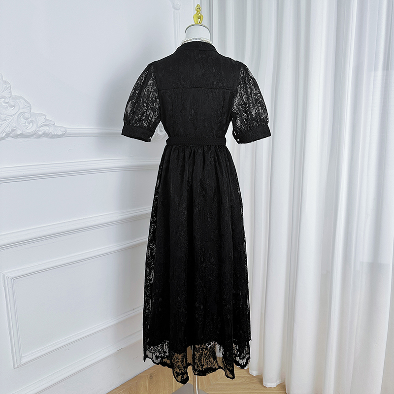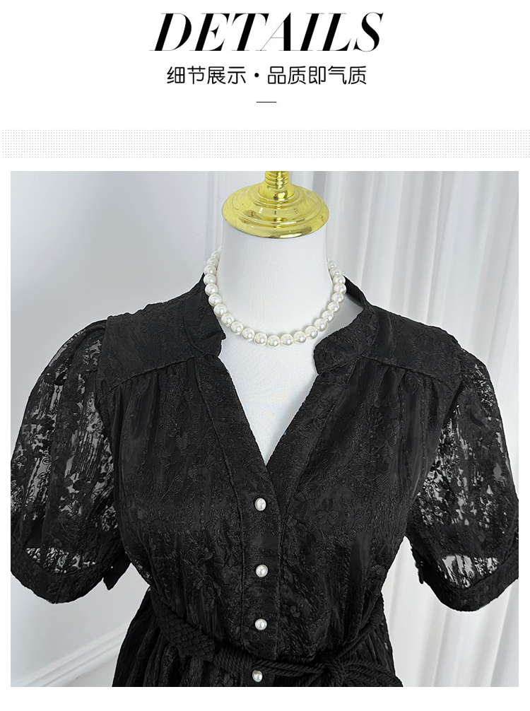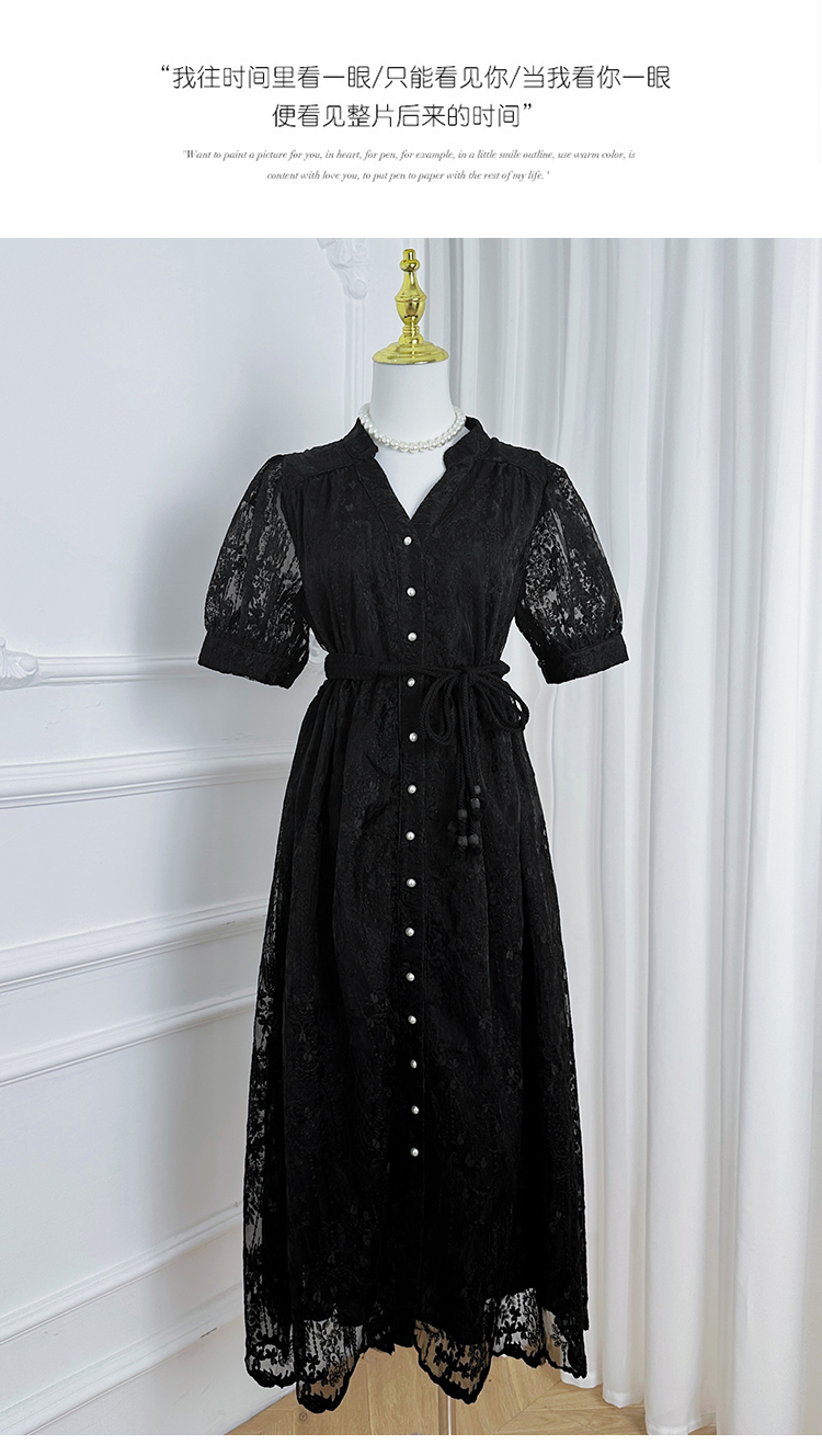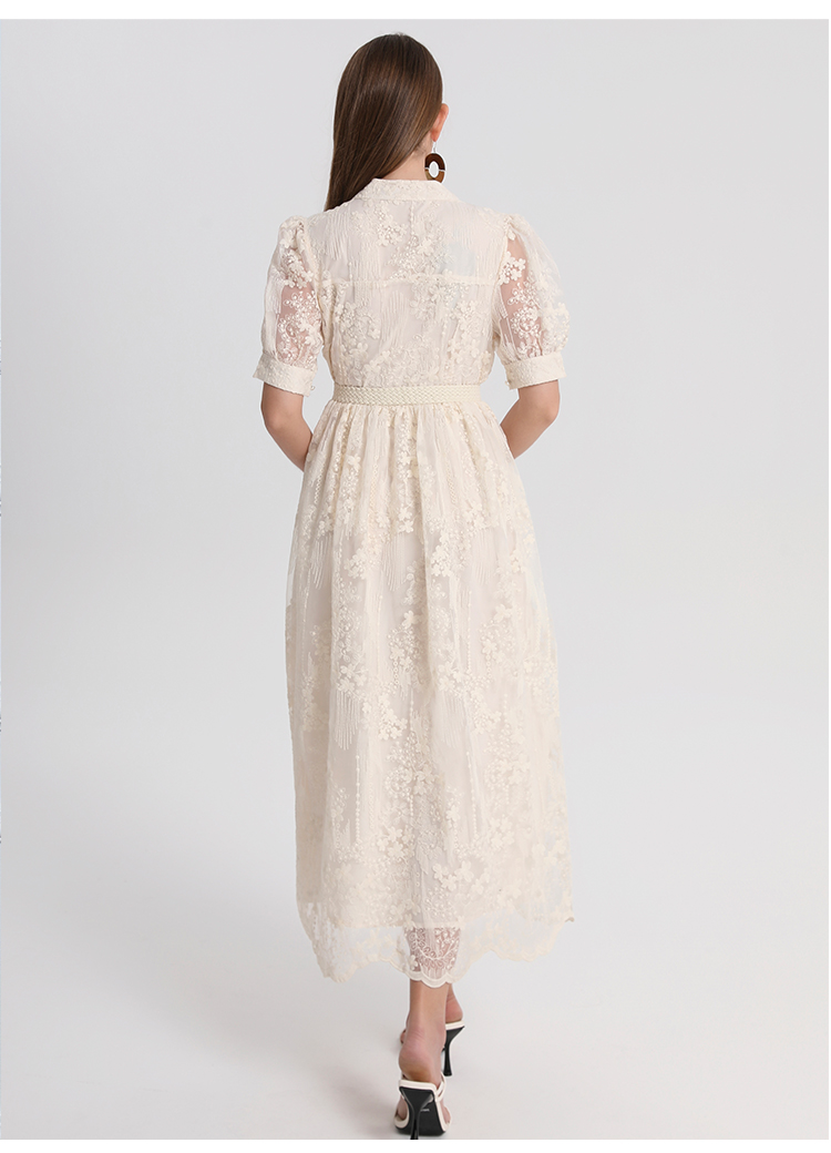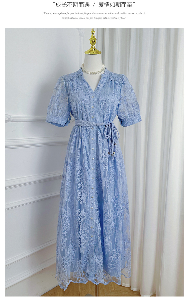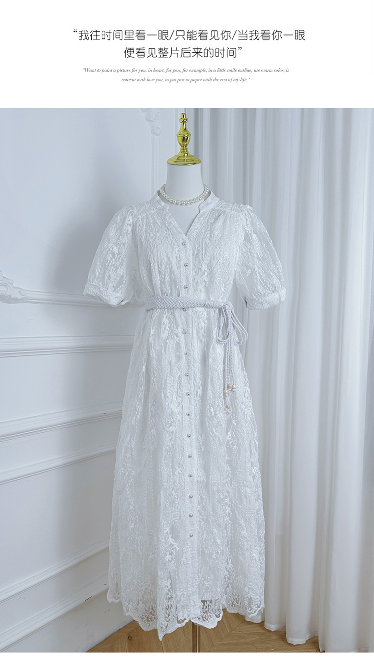 RY1246# 实拍精品高端法式夏季收腰重工刺绣V领多色气质连衣裙