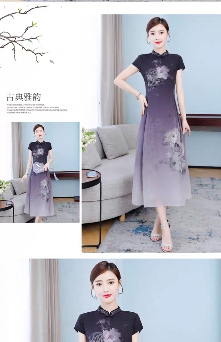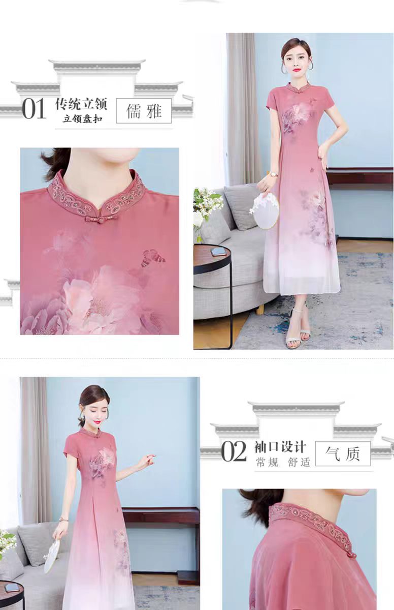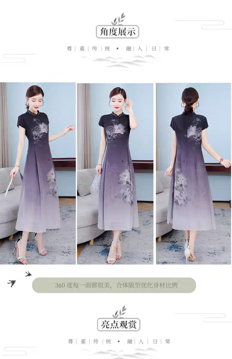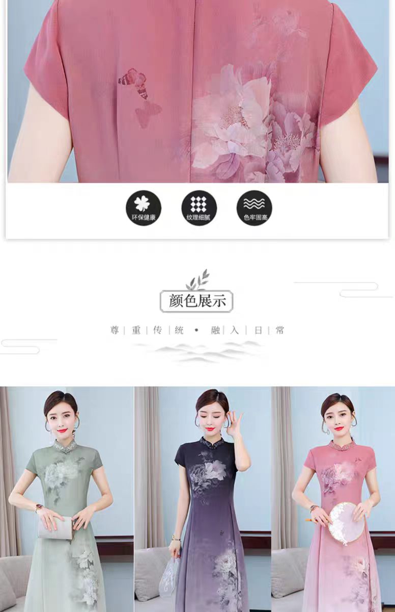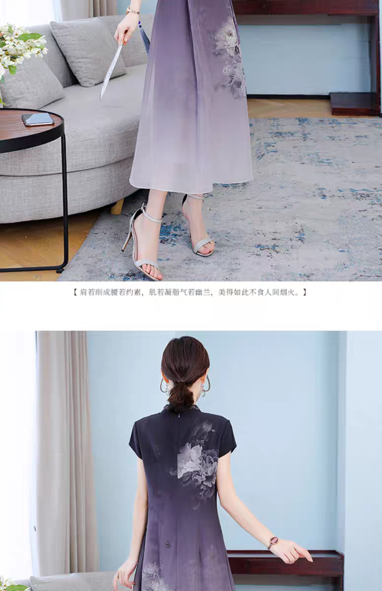 RY1408# 实拍 2026新款夏季新中式改良旗袍连衣裙高端气质妈妈印花裙子
