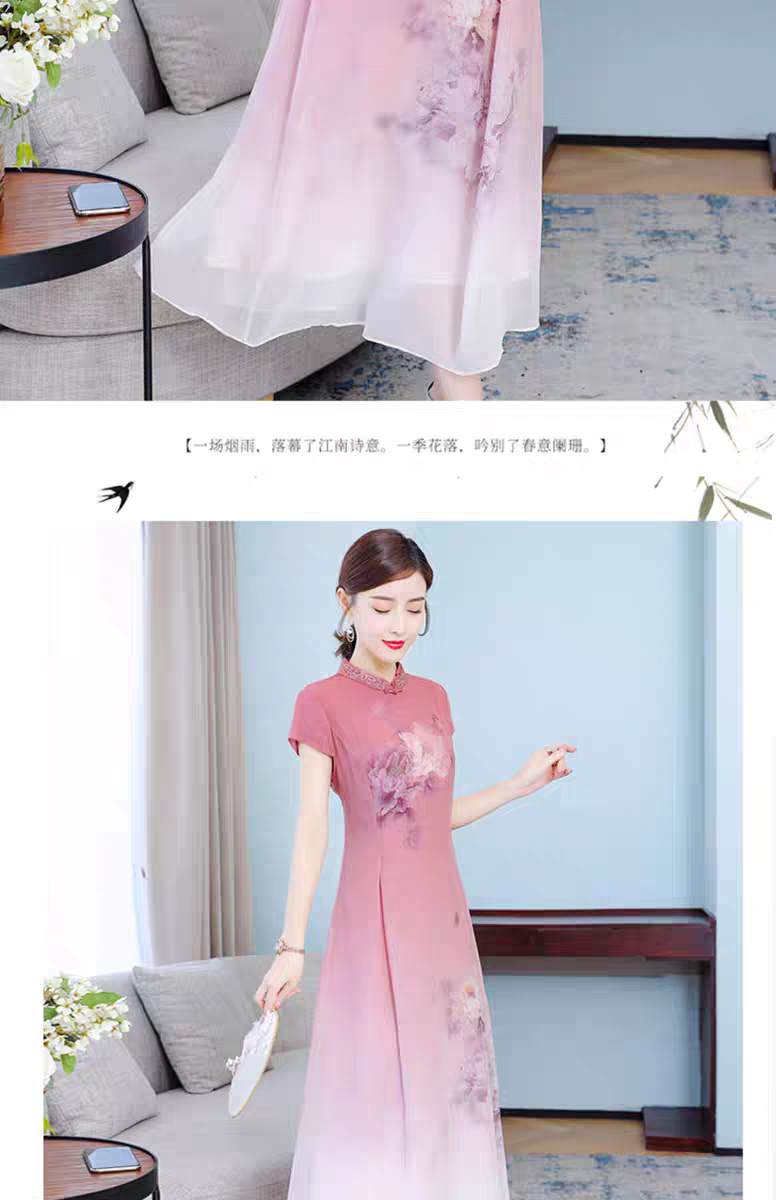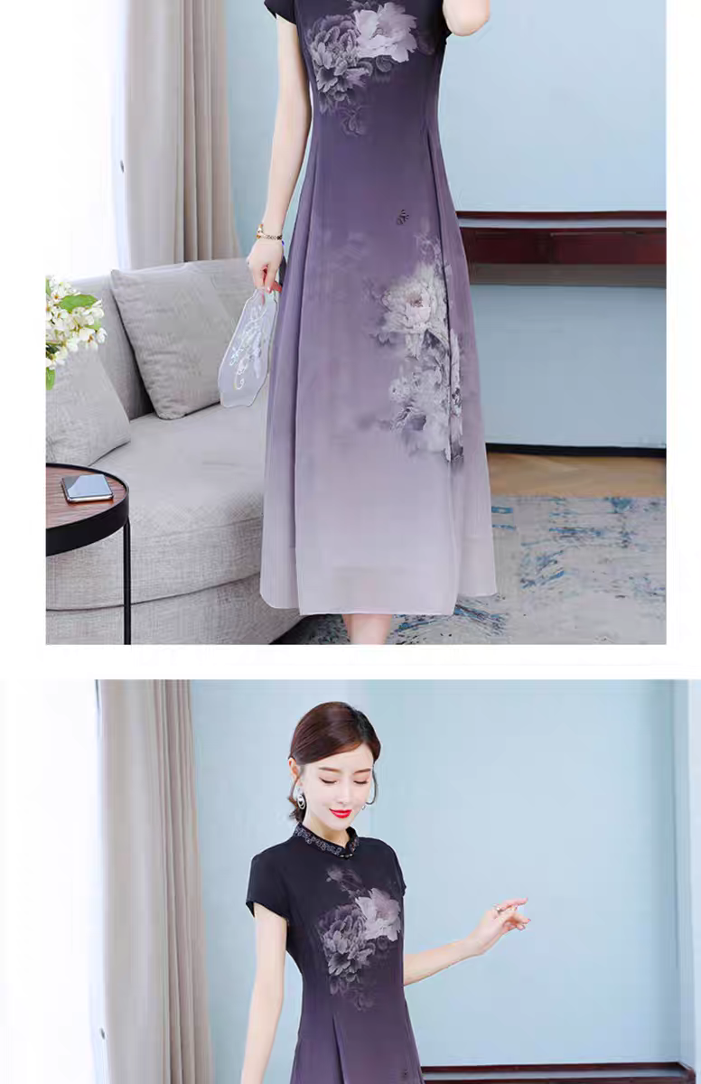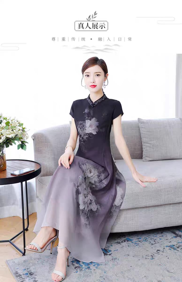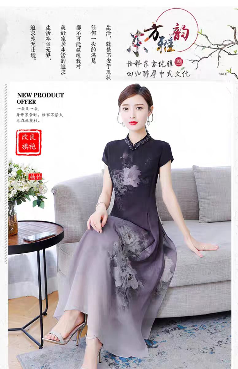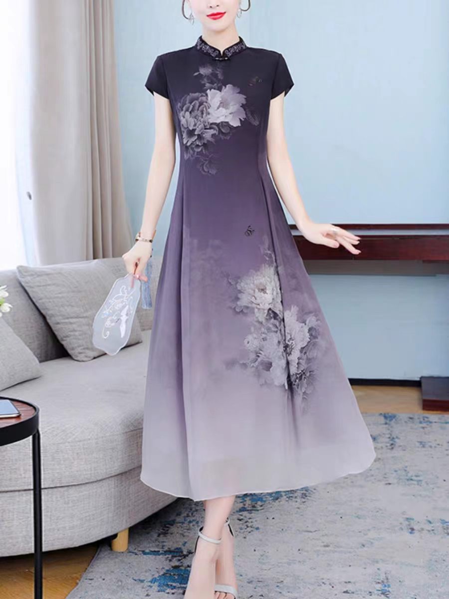 RY1408# 实拍 2026新款夏季新中式改良旗袍连衣裙高端气质妈妈印花裙子