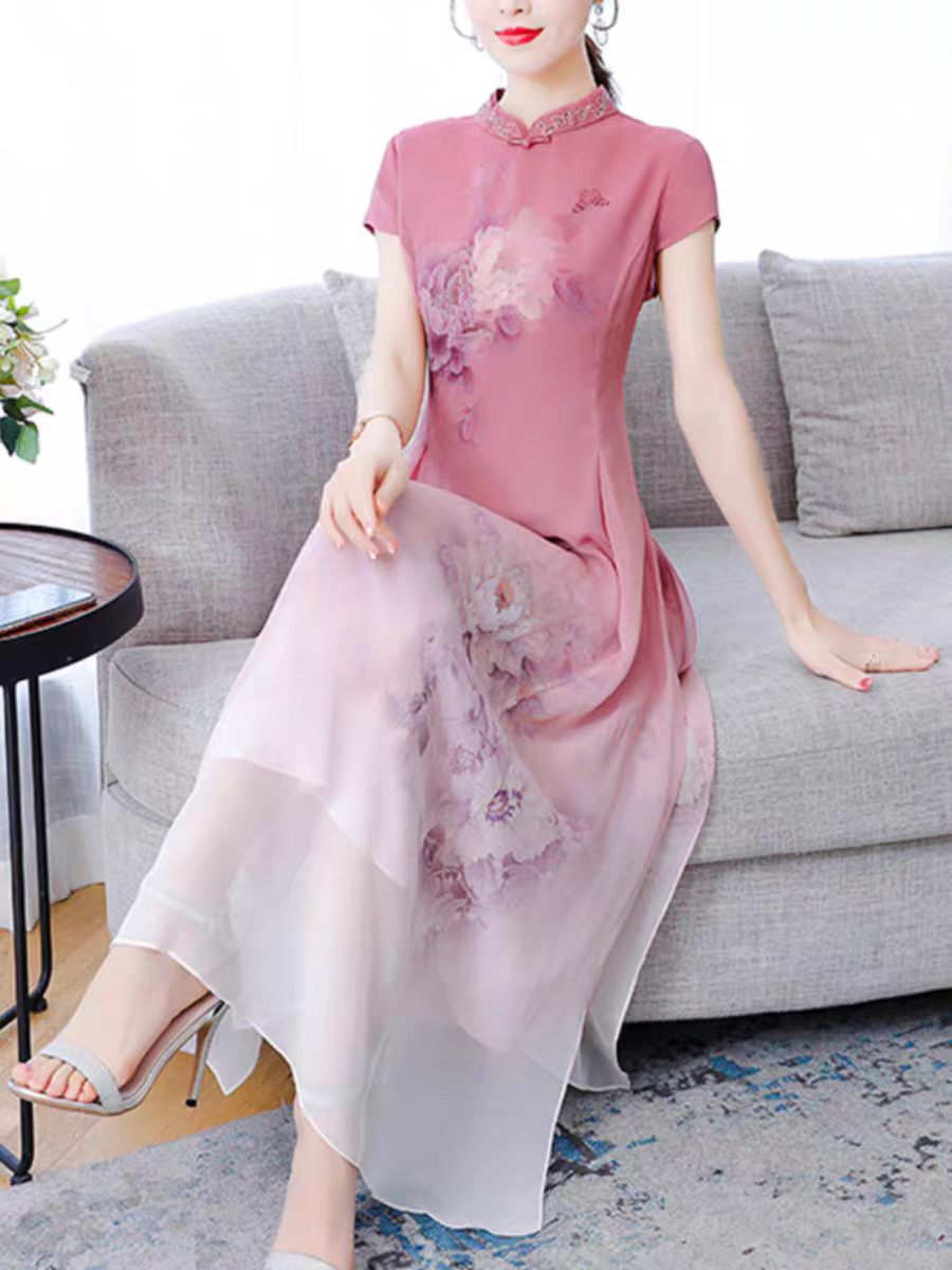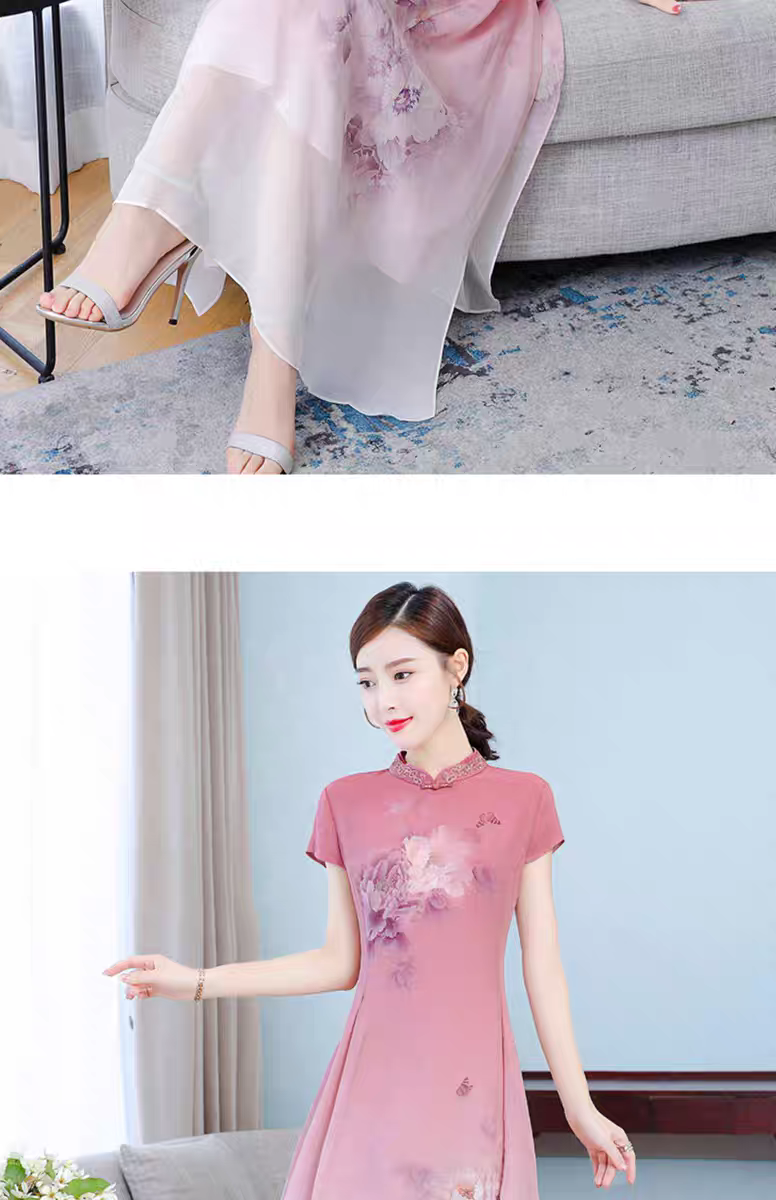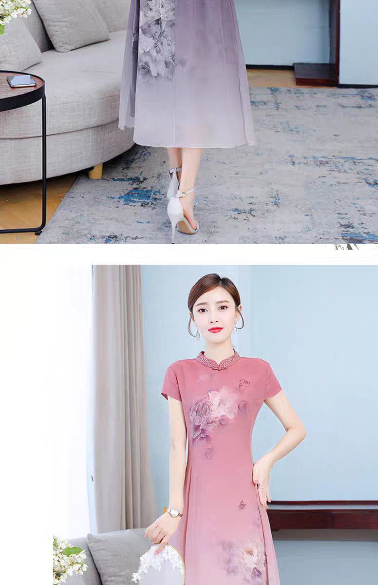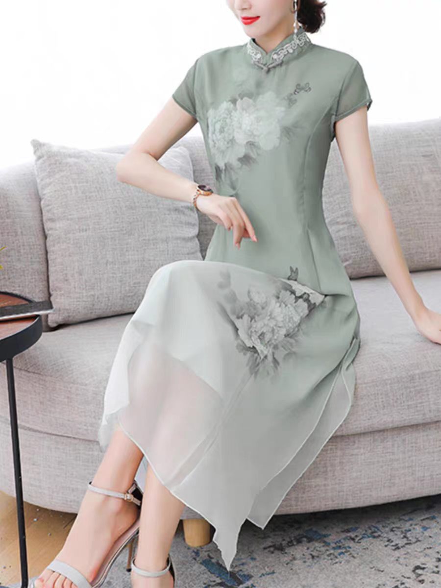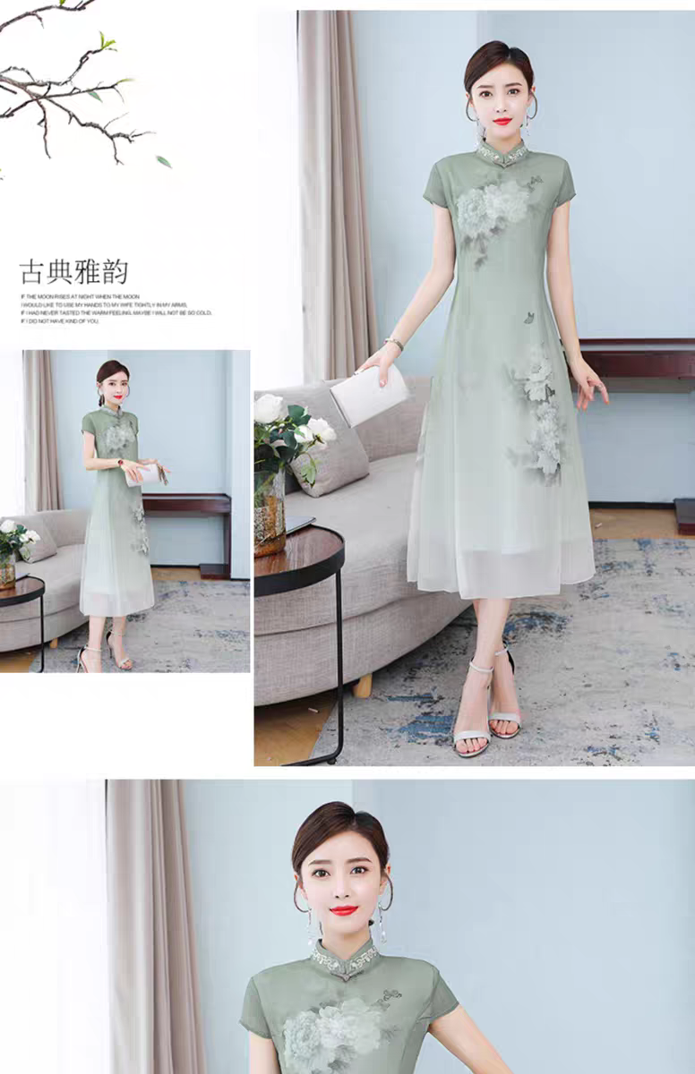 RY1408# 实拍 2026新款夏季新中式改良旗袍连衣裙高端气质妈妈印花裙子