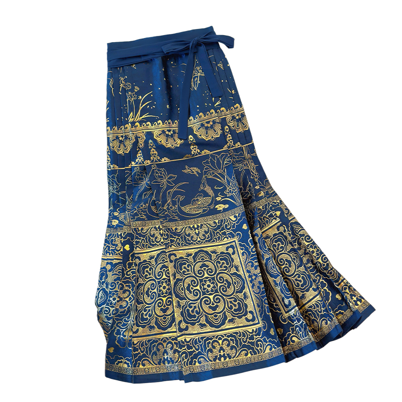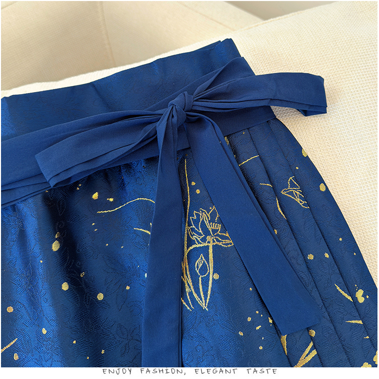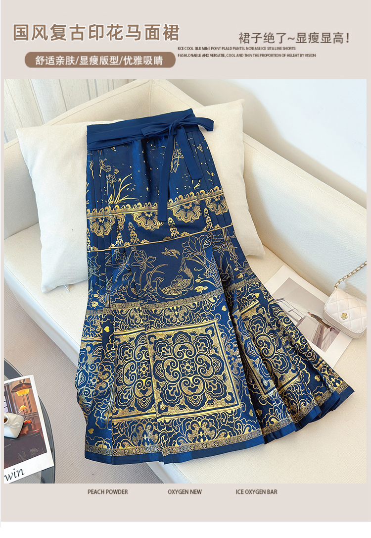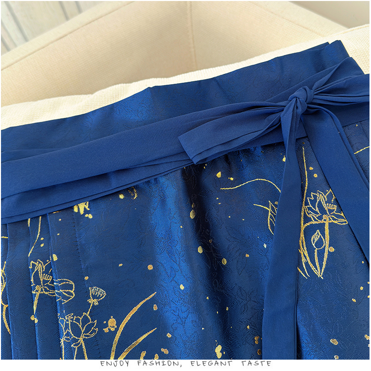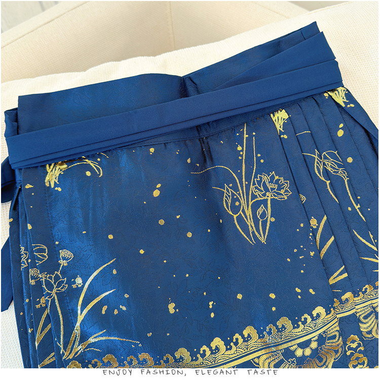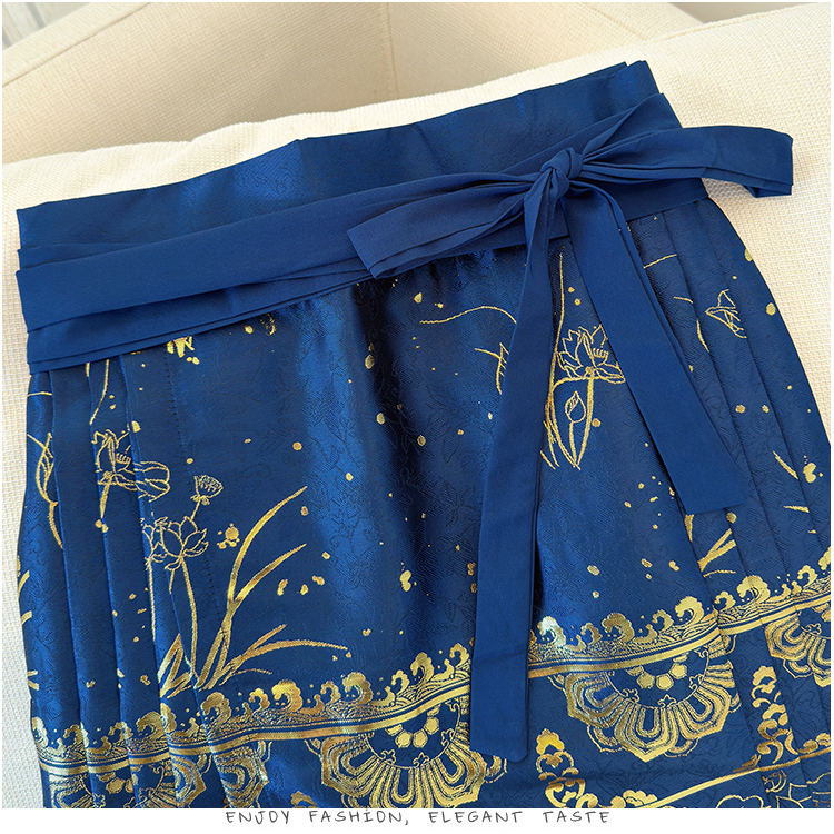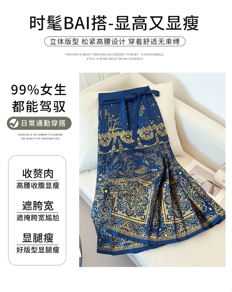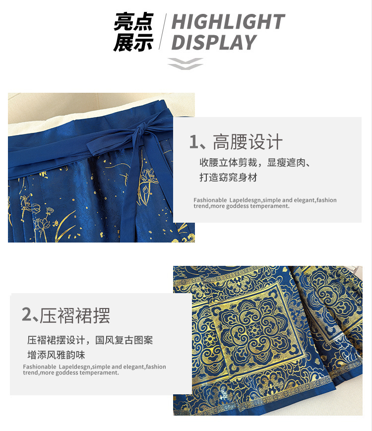 RY1426# 实拍新春夏款新中式锦缎刺绣一片式五对摺重工织金马面裙套