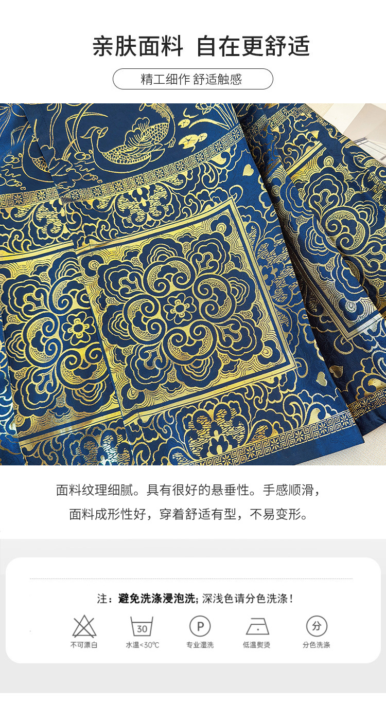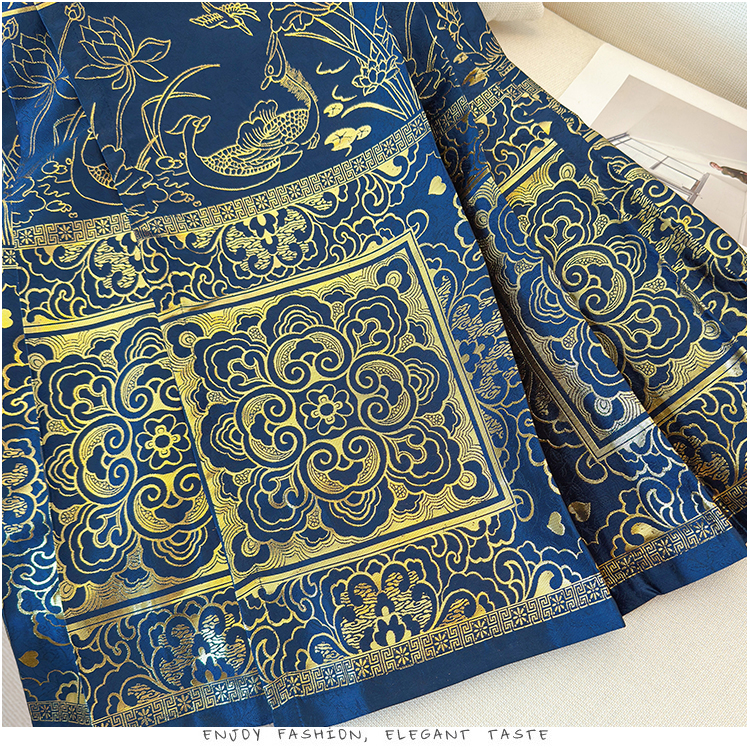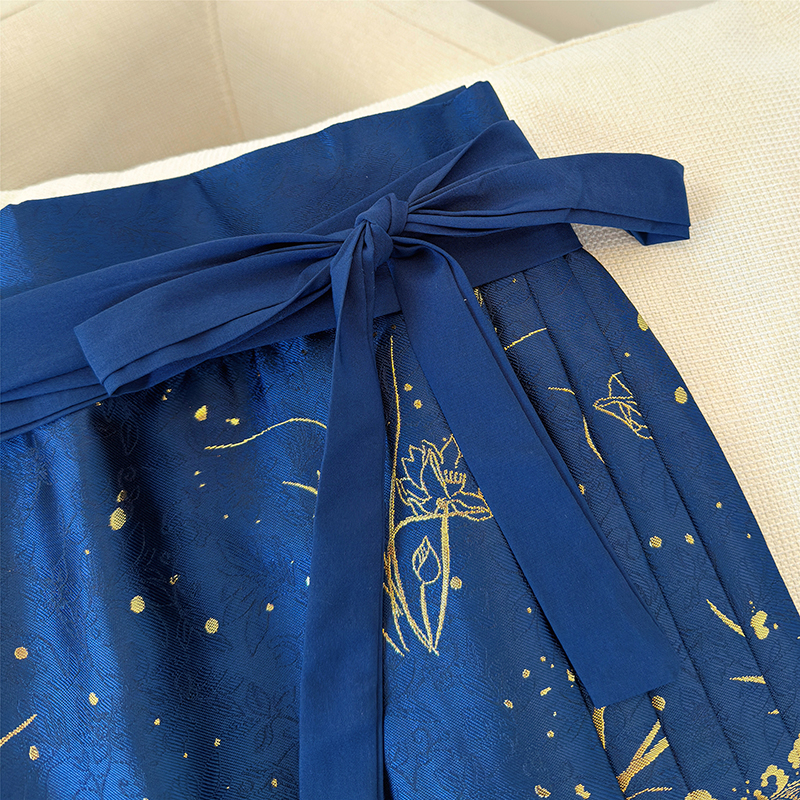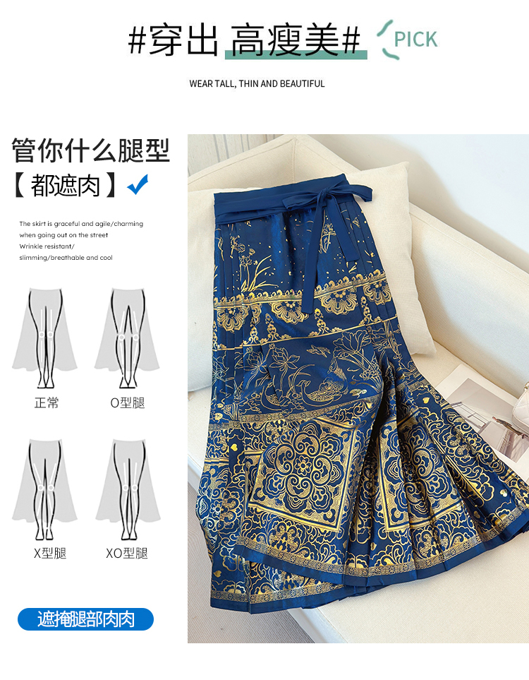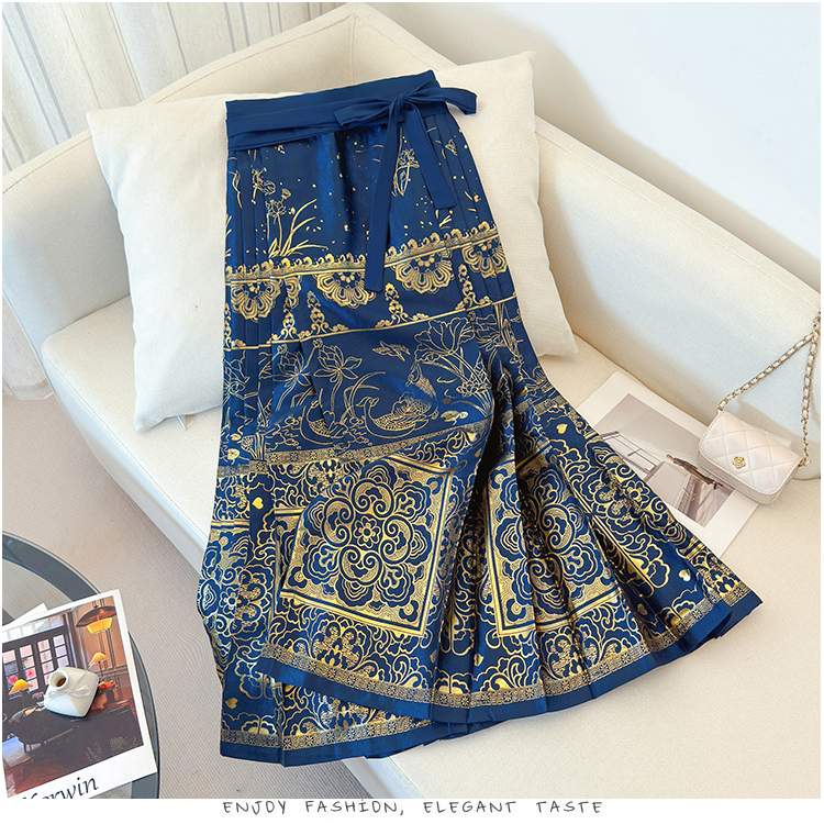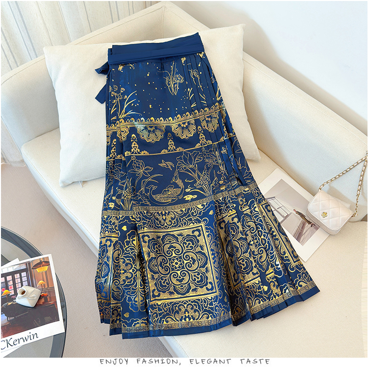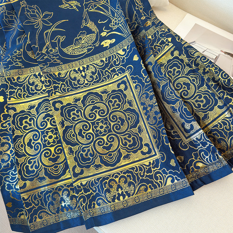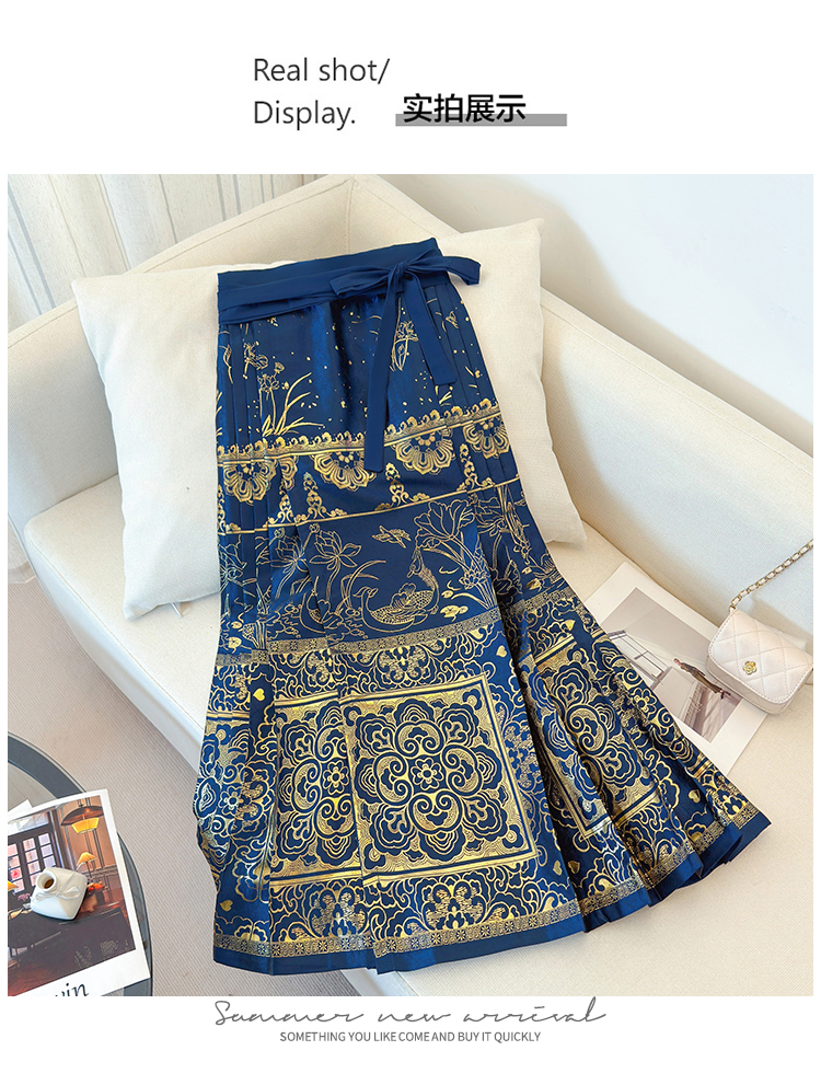 RY1426# 实拍新春夏款新中式锦缎刺绣一片式五对摺重工织金马面裙套