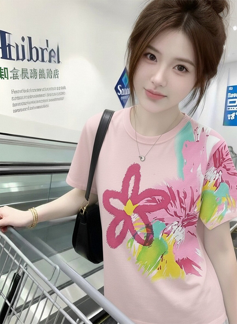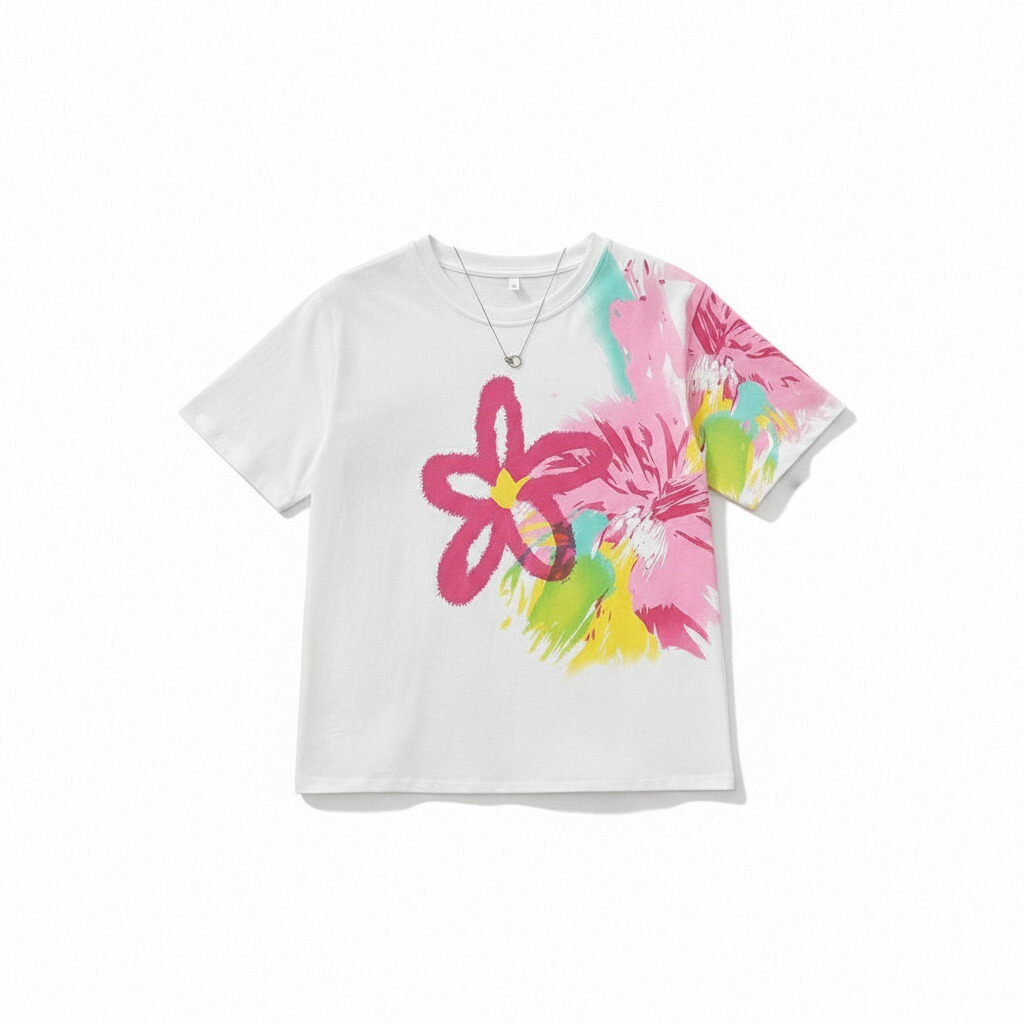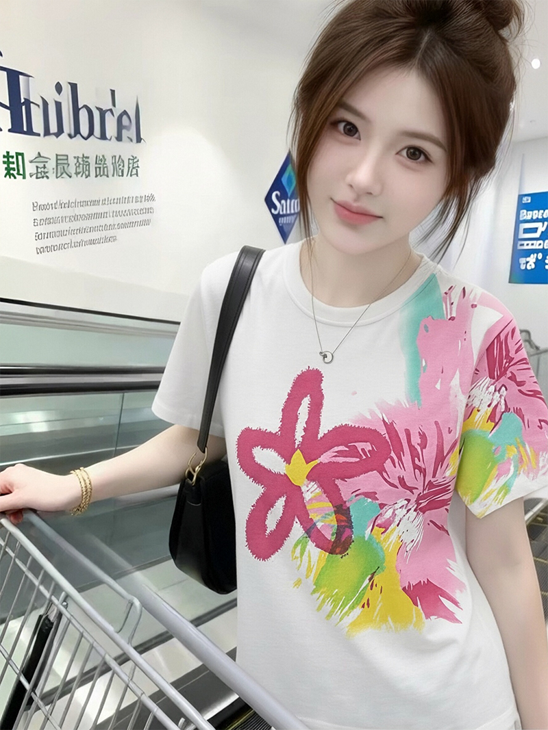 RY1446# 2026夏季新款设计感花朵扎染印花短袖T恤宽松百搭时尚显瘦上衣潮
