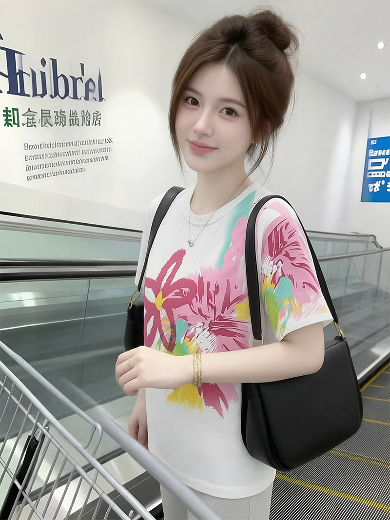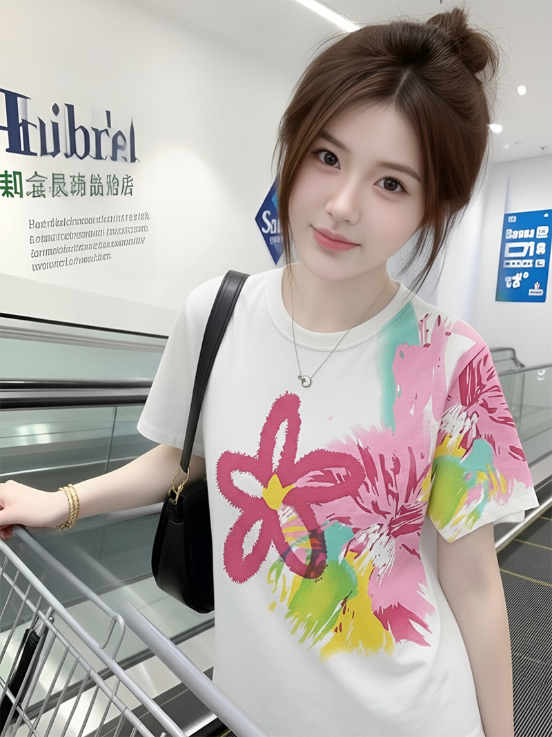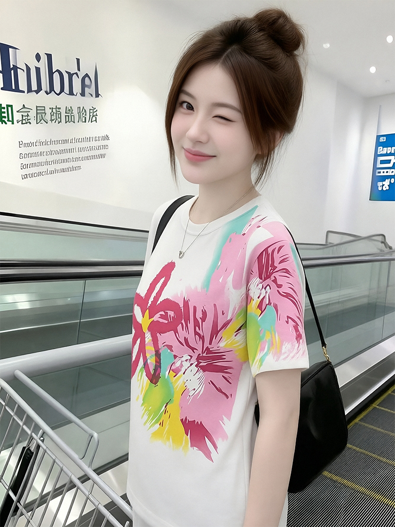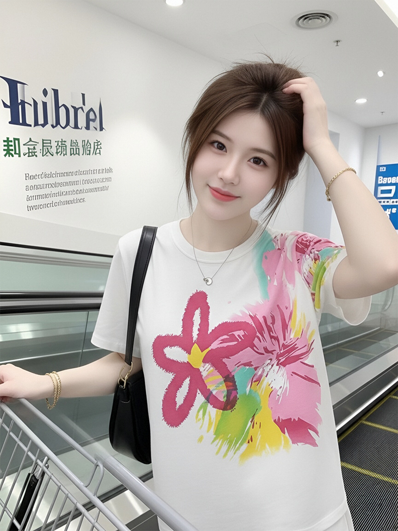 RY1446# 2026夏季新款设计感花朵扎染印花短袖T恤宽松百搭时尚显瘦上衣潮