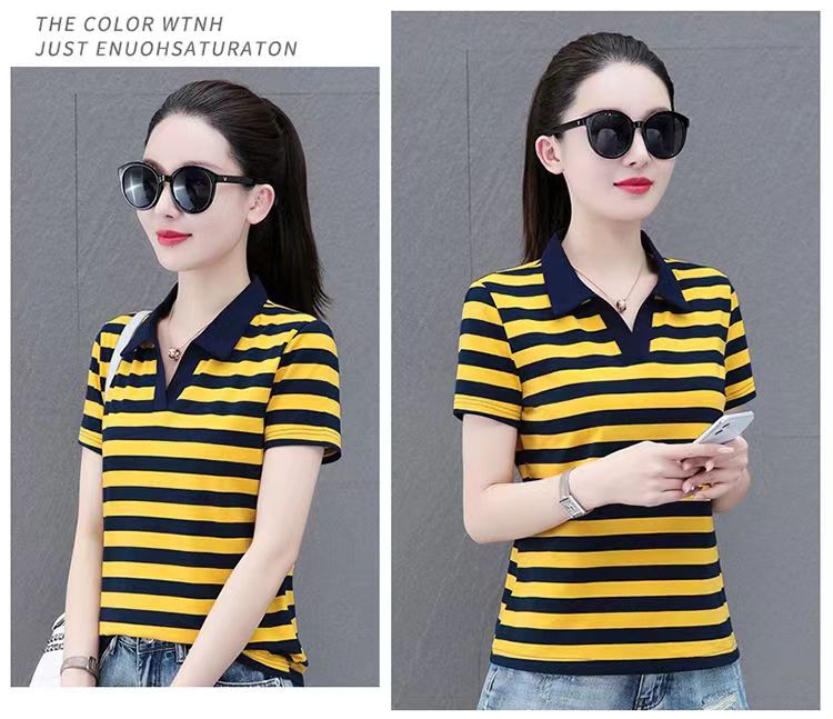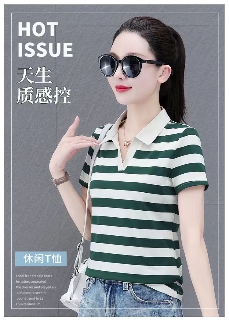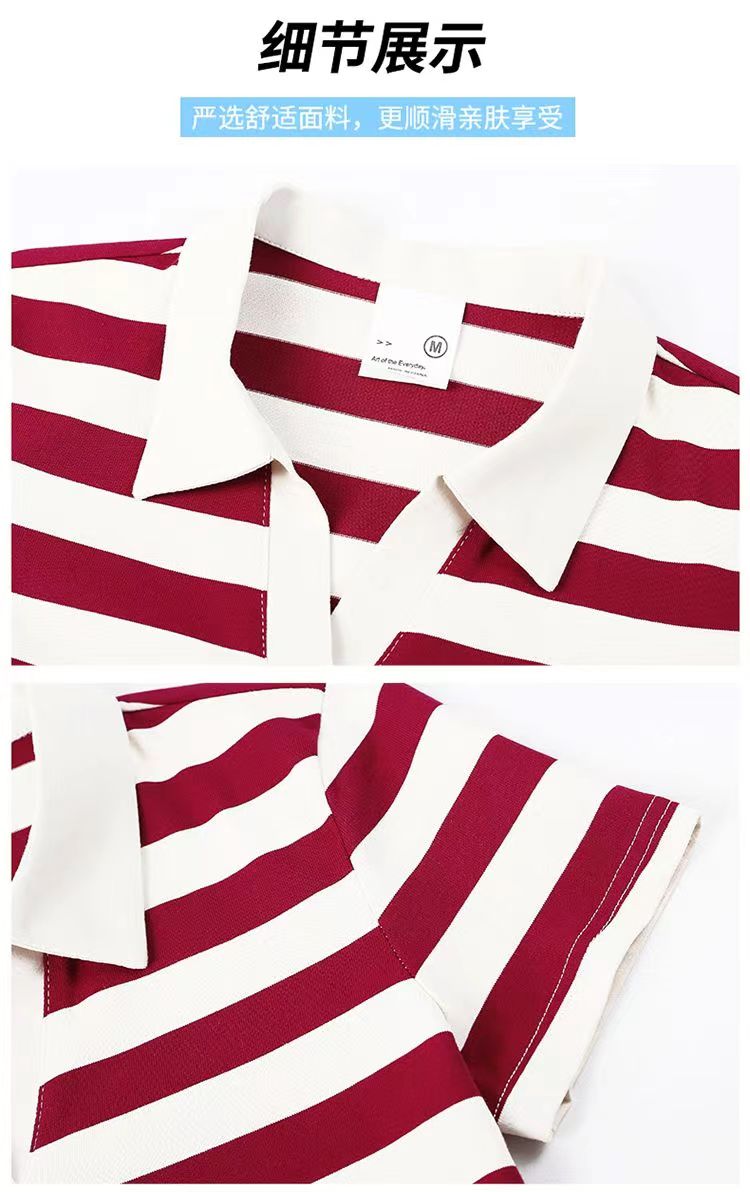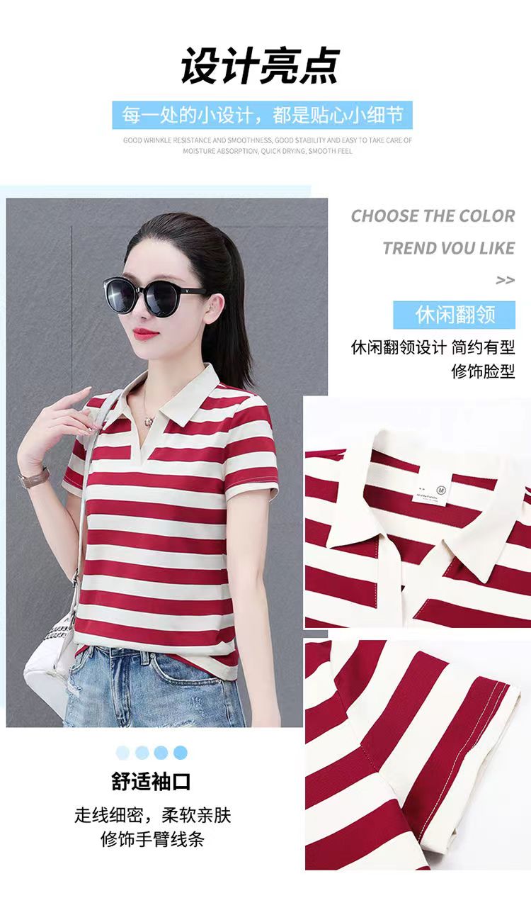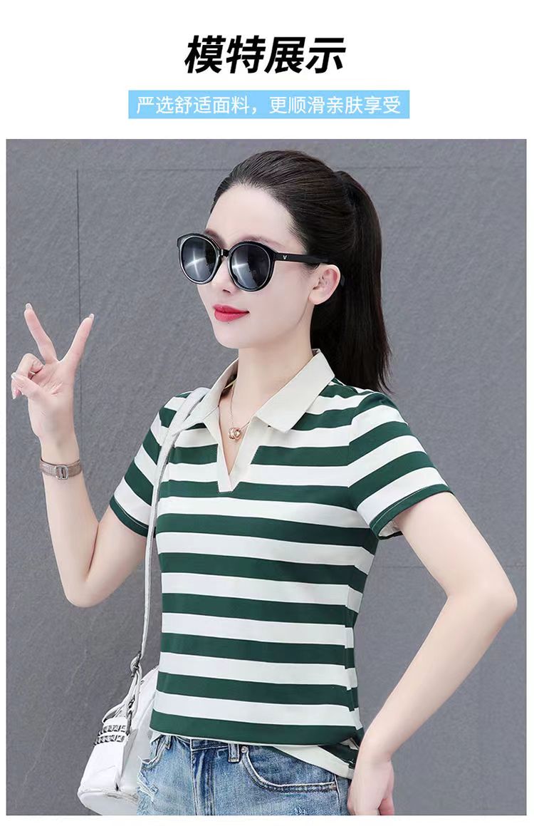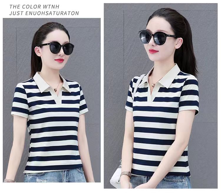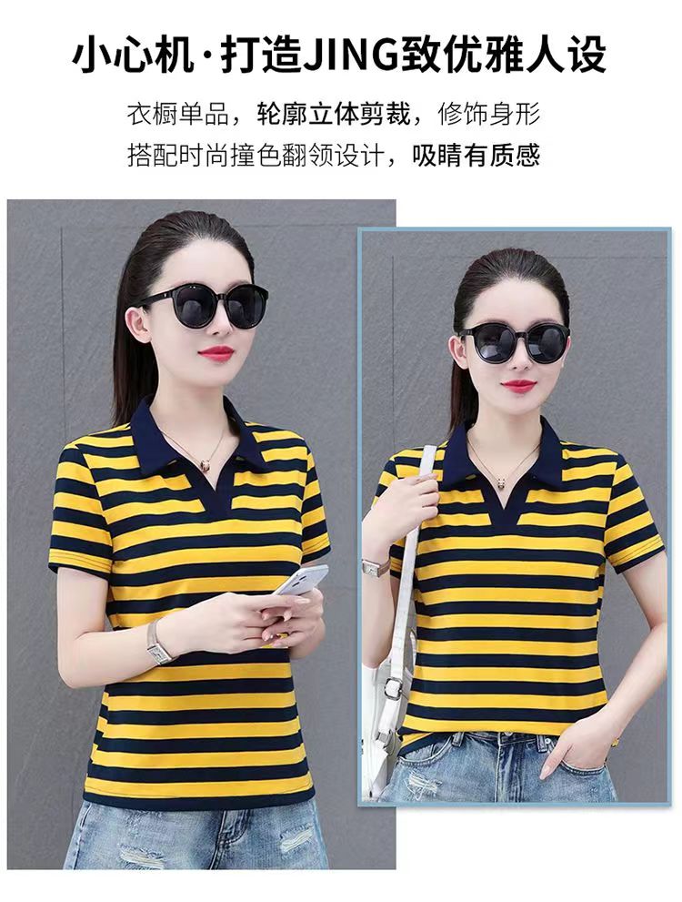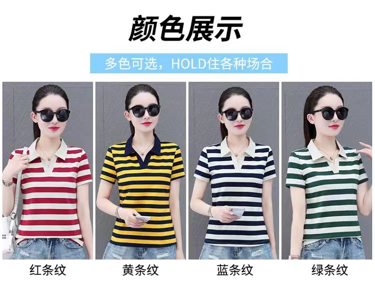 RY1462# 纯棉夏季潮流百搭时尚拼接撞色条纹短袖2024新款POLO翻领显瘦t恤